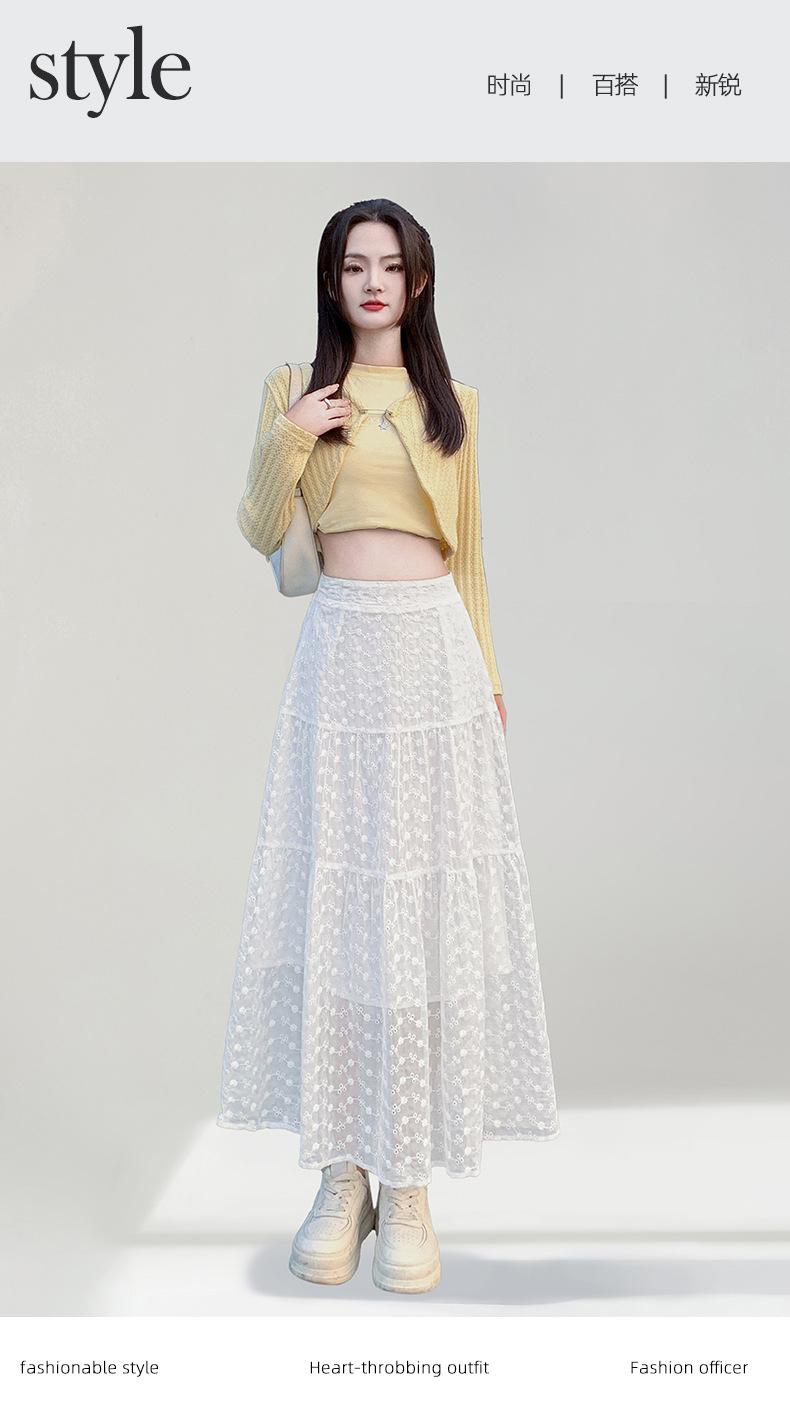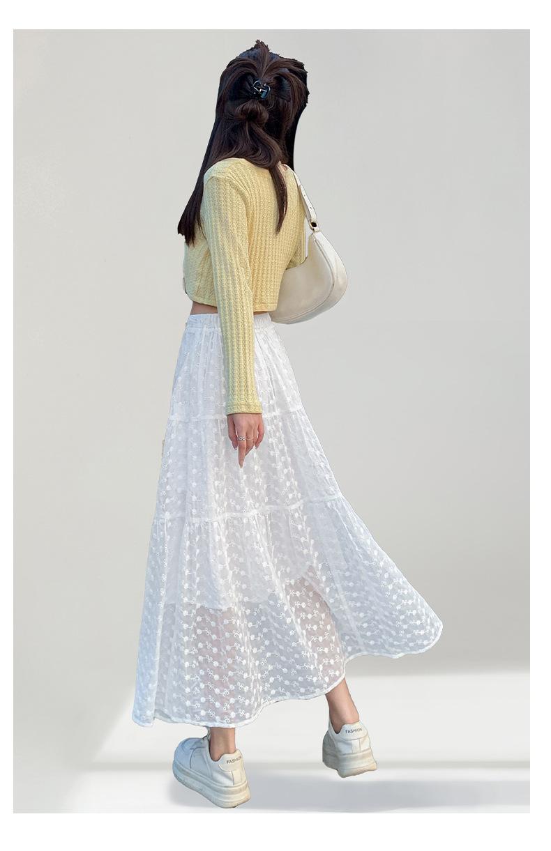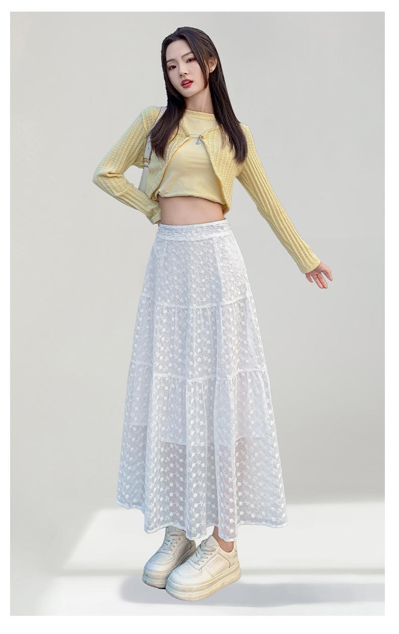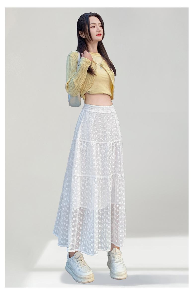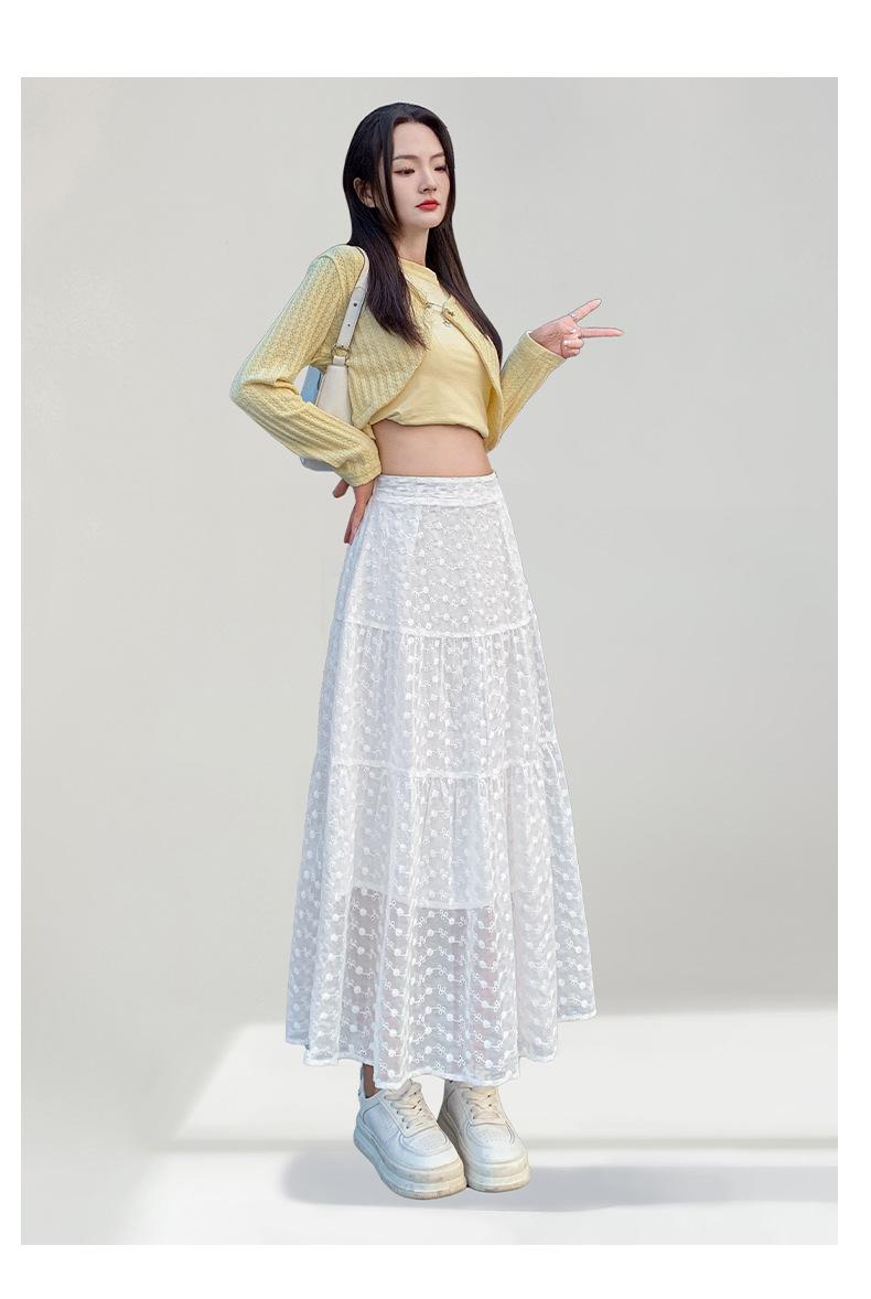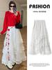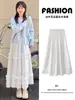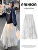 Falda Blanca de Pastel para Mujer Verano 2025 Nueva Falda de Encaje de Cintura Alta Adelgazante Malla Línea A Falda Larga