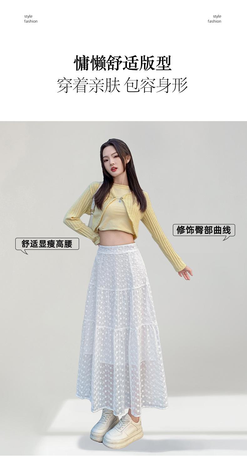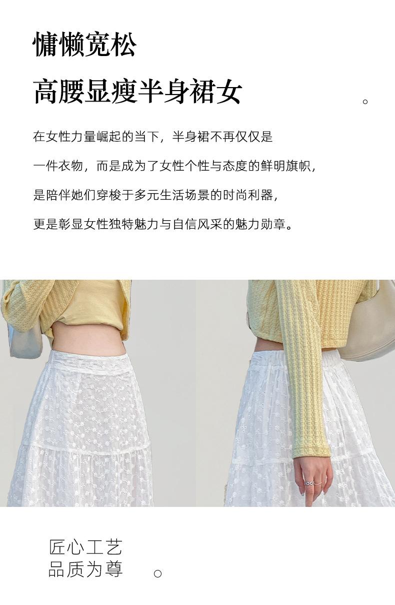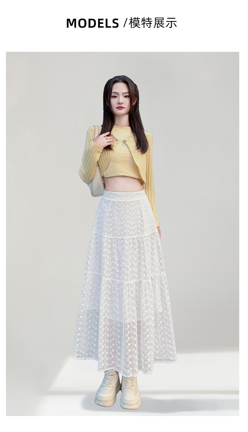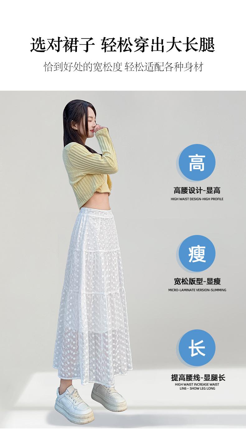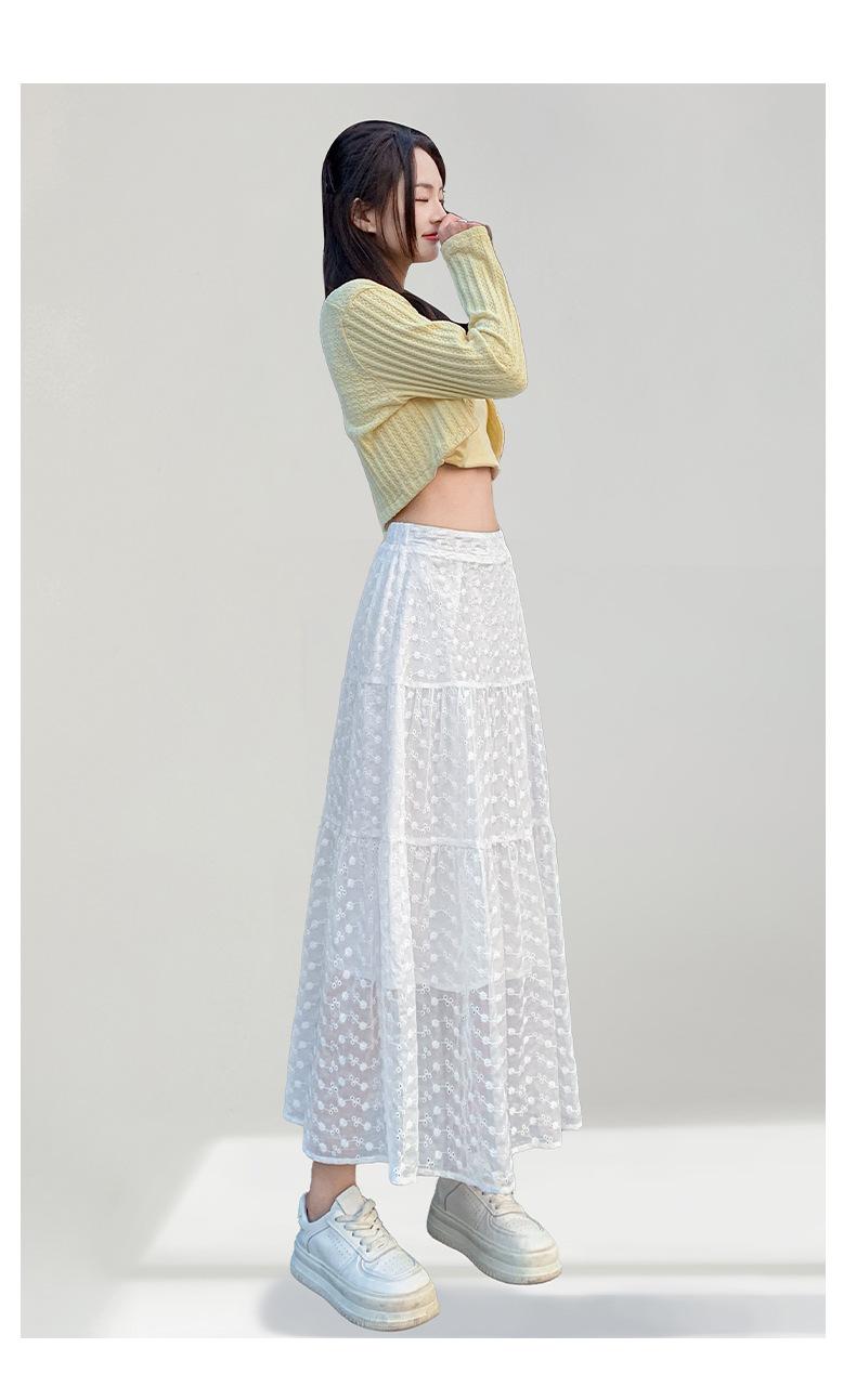Falda Blanca de Pastel para Mujer Verano 2025 Nueva Falda de Encaje de Cintura Alta Adelgazante Malla Línea A Falda Larga