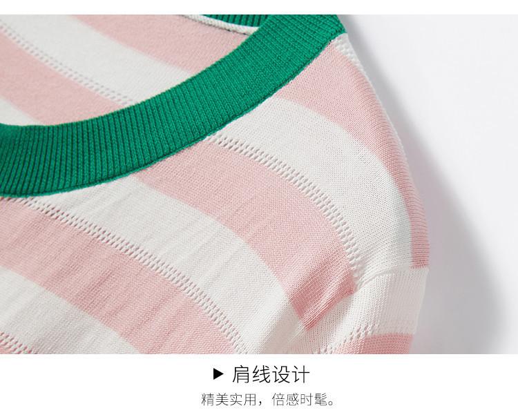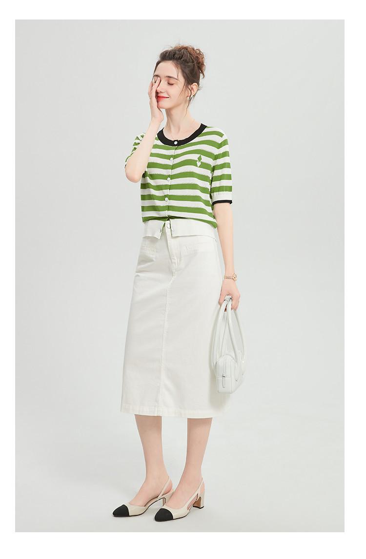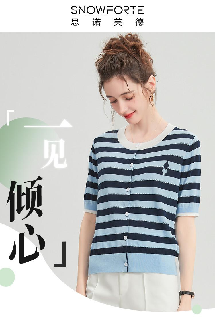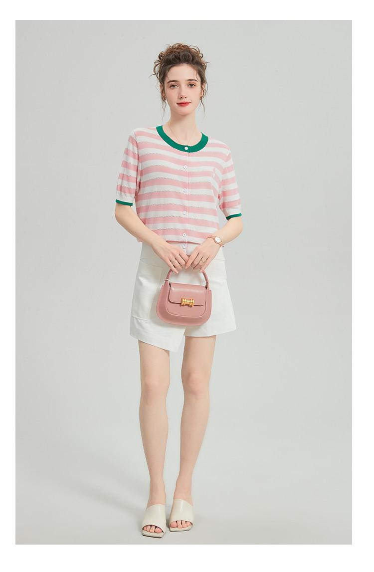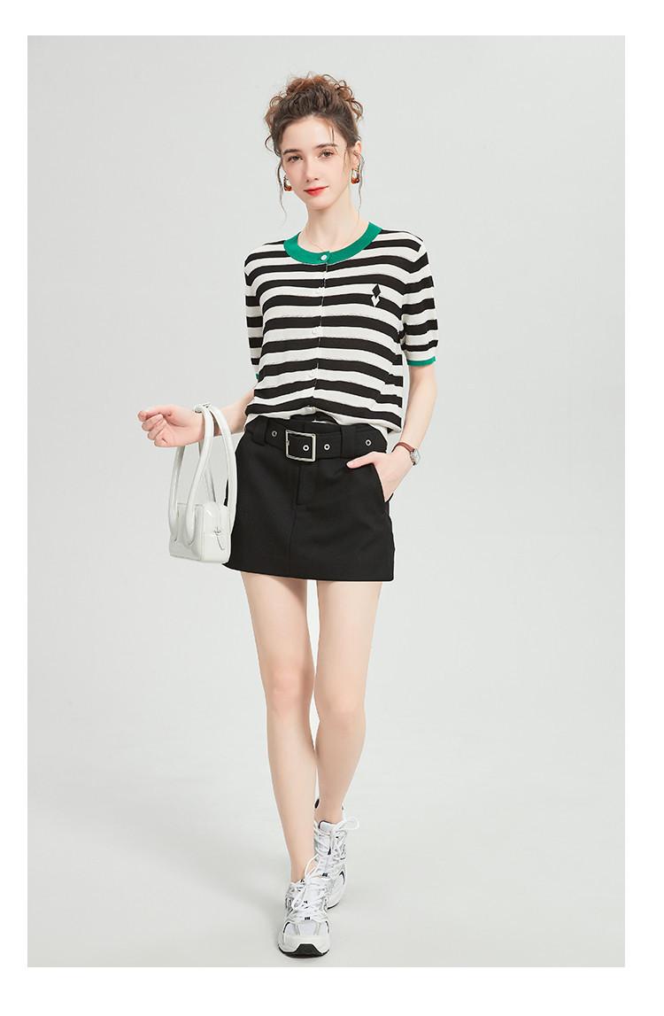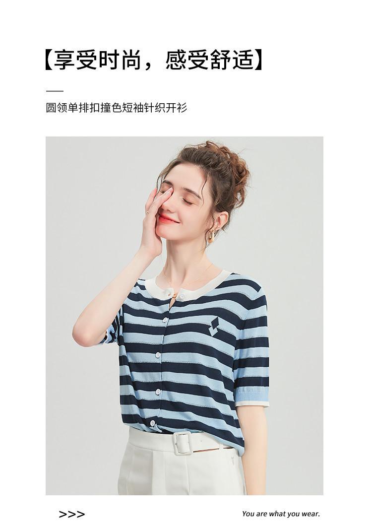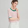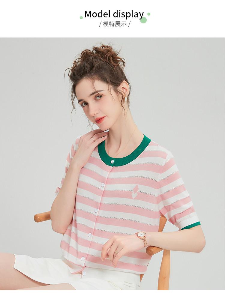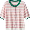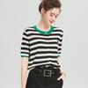 Camiseta de Punto a Rayas de Lyocell Tencel Francés Reductora de Edad para Mujer, Cárdigan de Media Manga 25 Nuevo Top de Verano