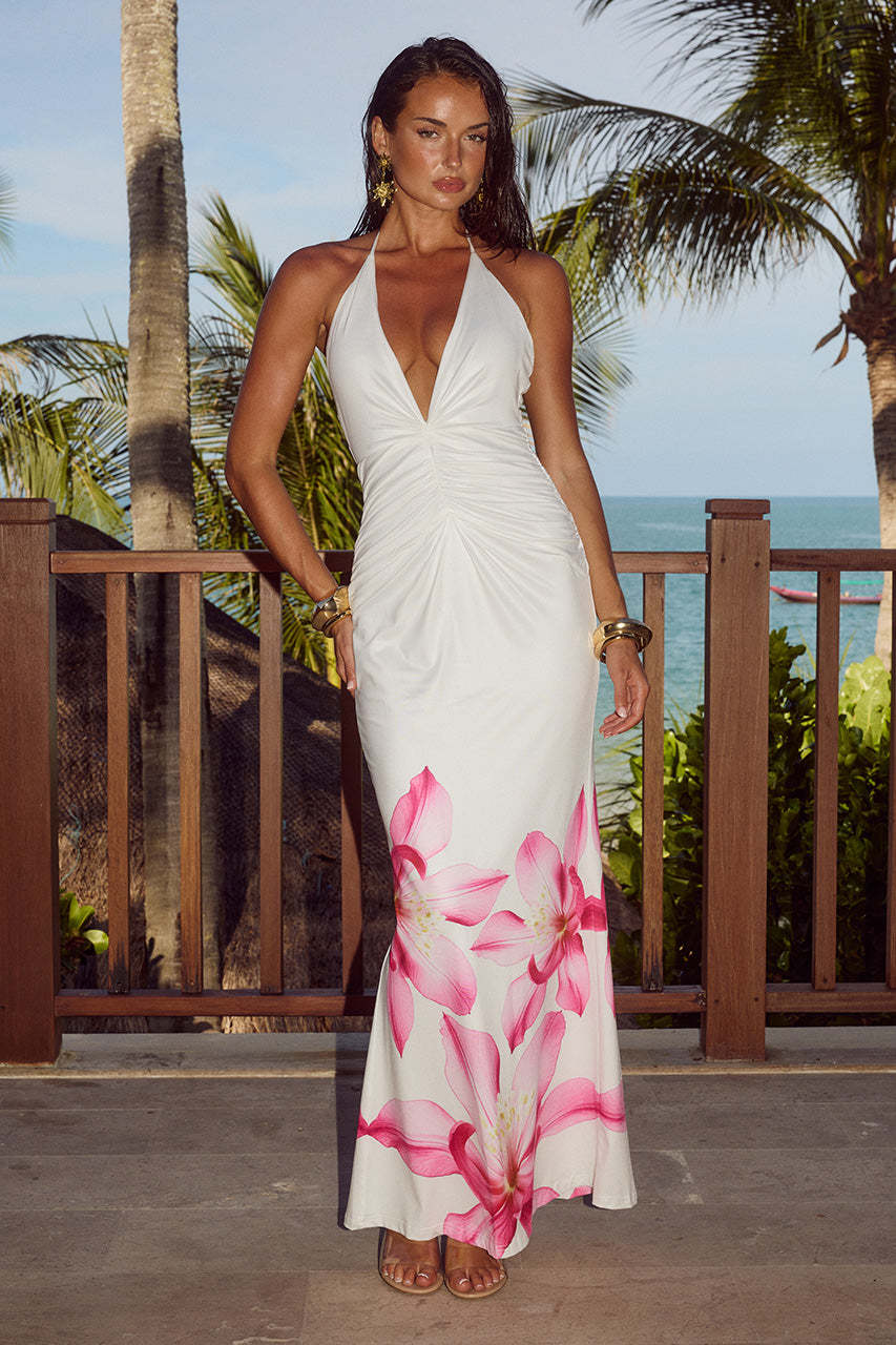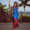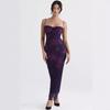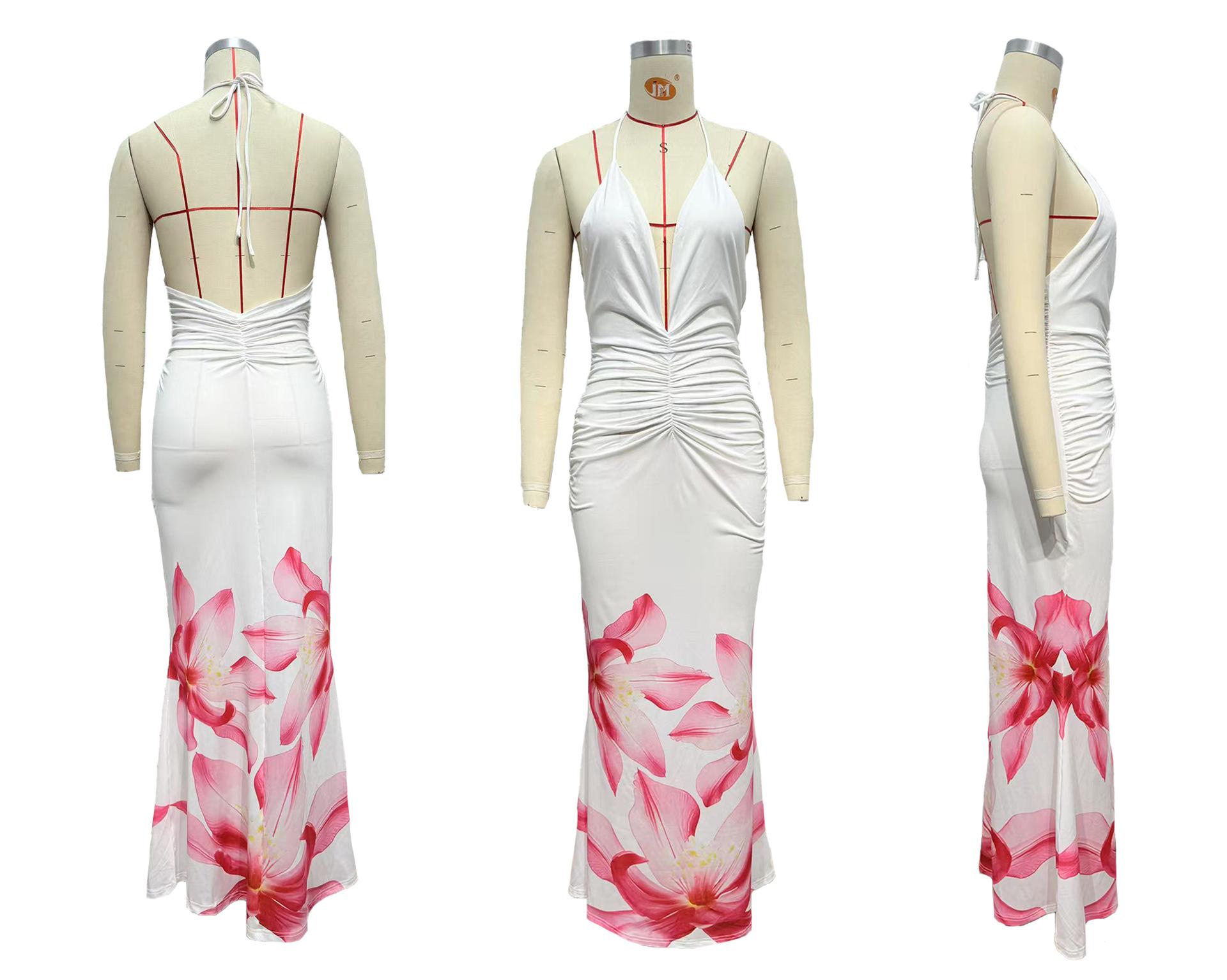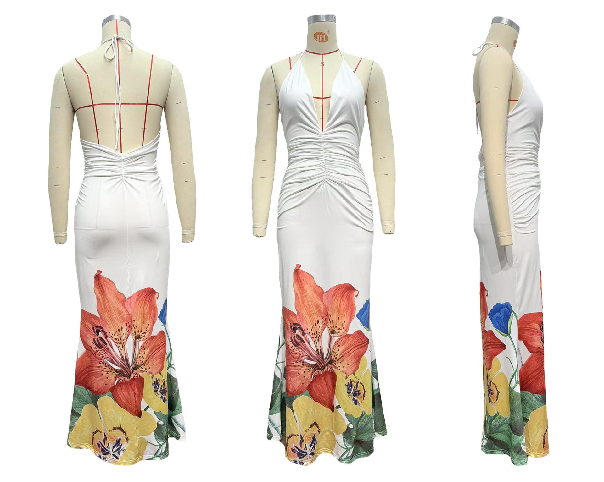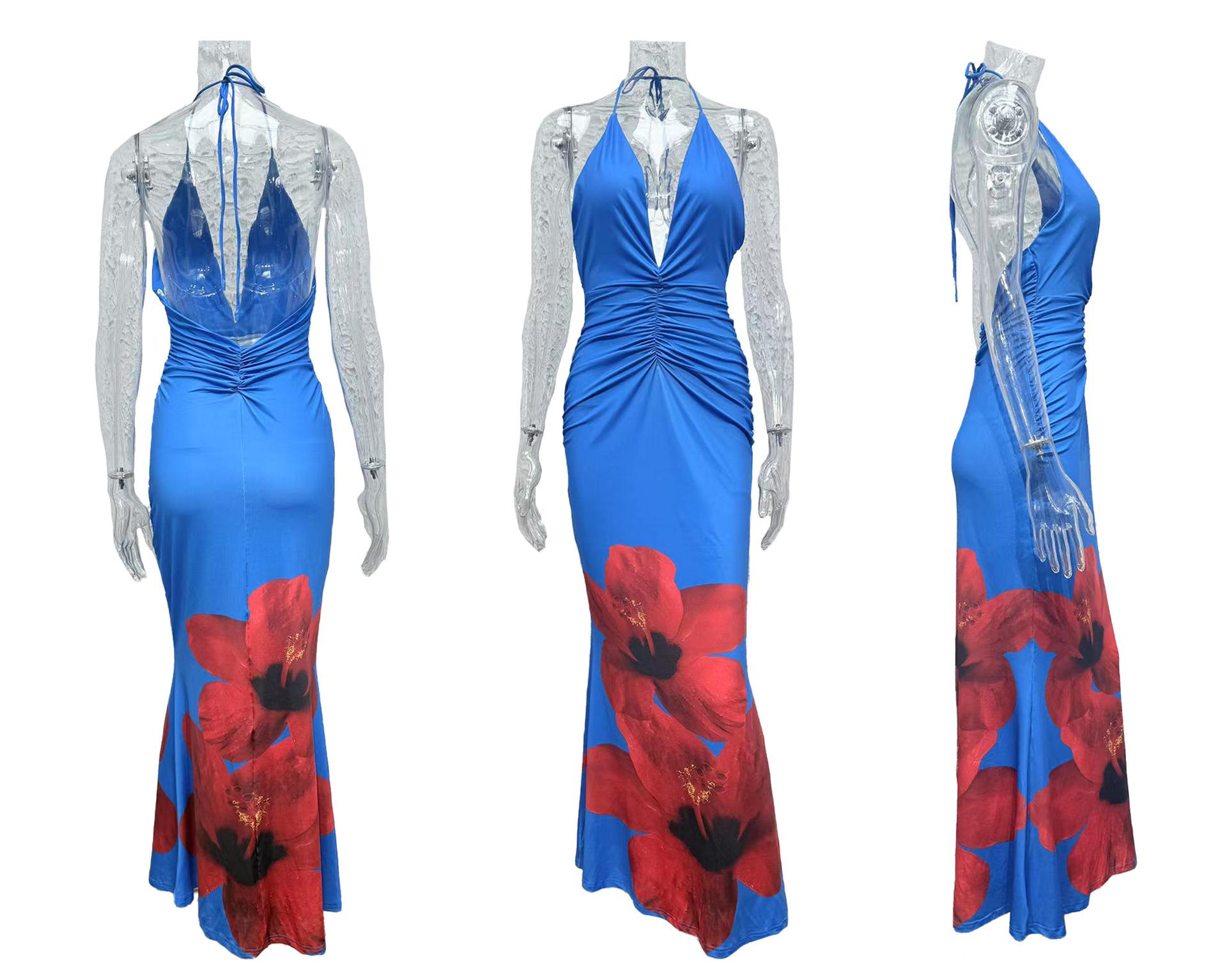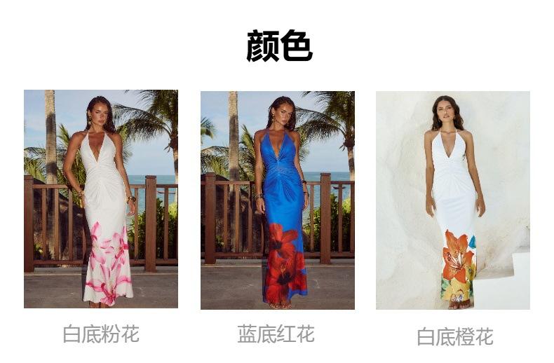 Vestido Sexy de Tirantes Estilo Europeo y Americano 2025 Verano Estampado Envolvente de Pecho Sin Mangas Sin Espalda Plisado Ajustado Falda de Cadera para Mujer