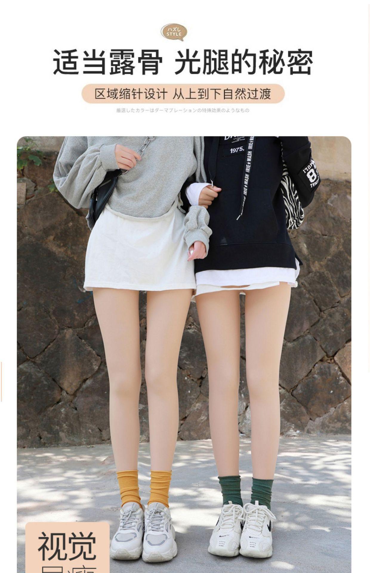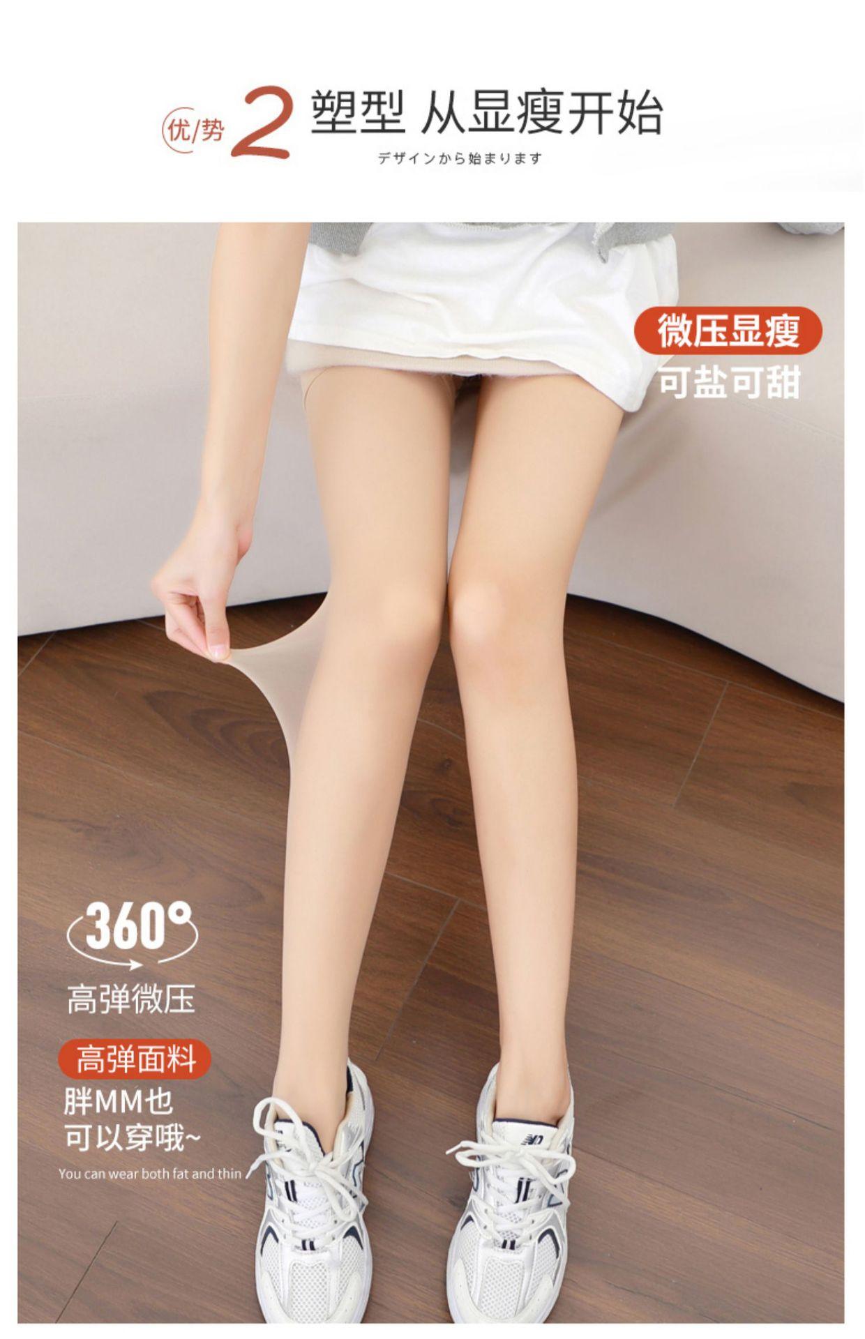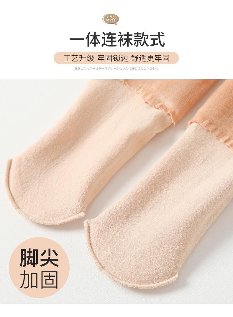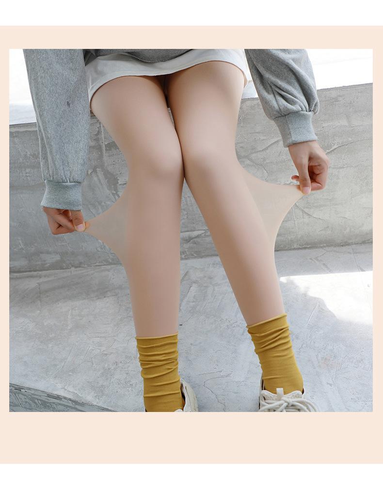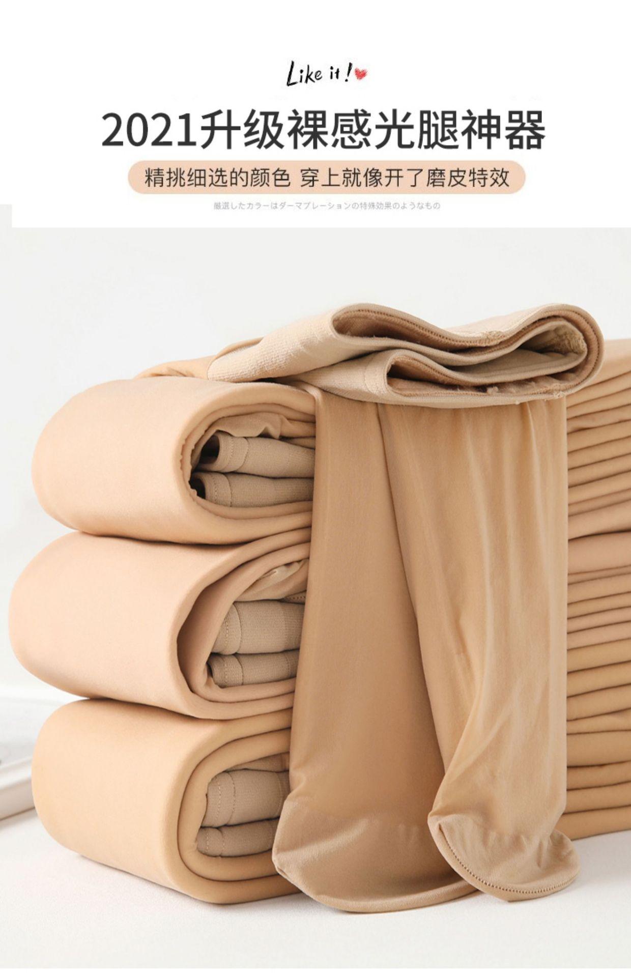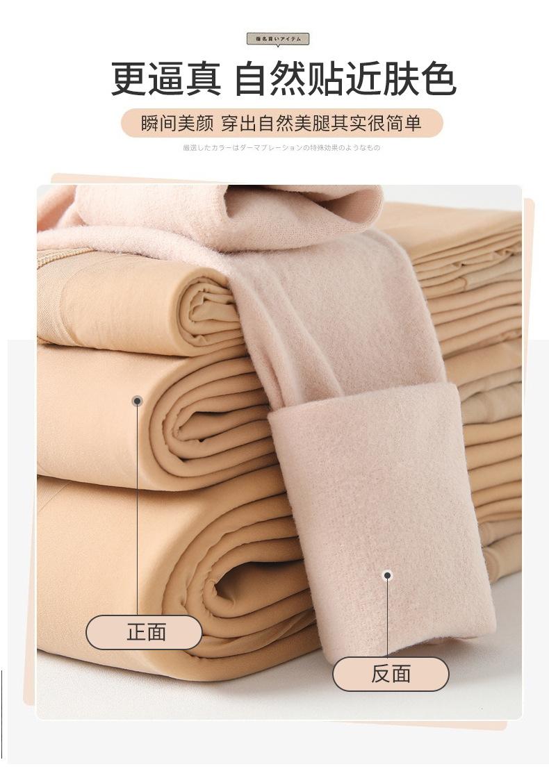 907 Modelo Bienestar Doble Capa Artefacto Piernas Descubiertas Leggings para Mujer Otoño e Invierno Nude Invisible Natural con Forro Polar Grueso Color Carne