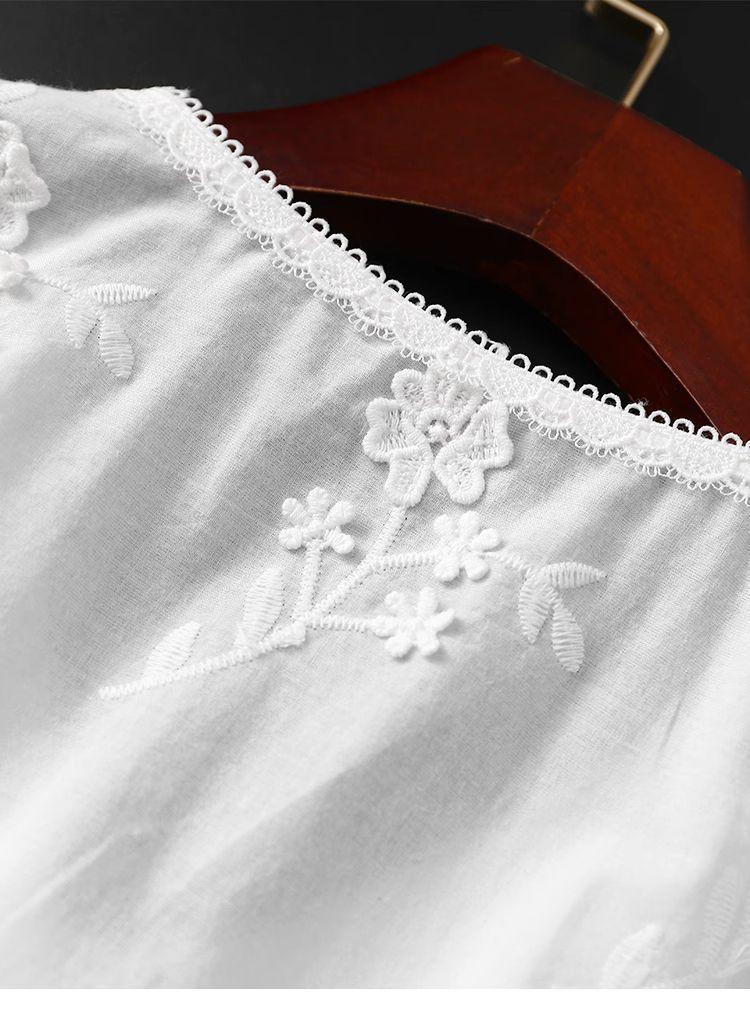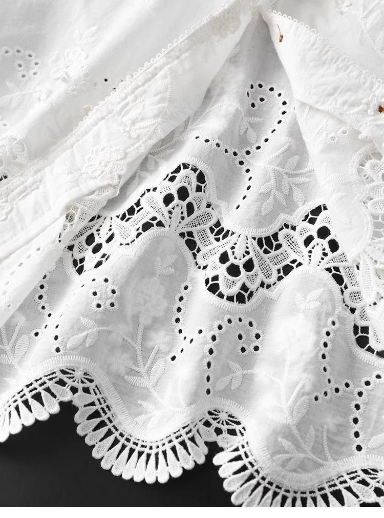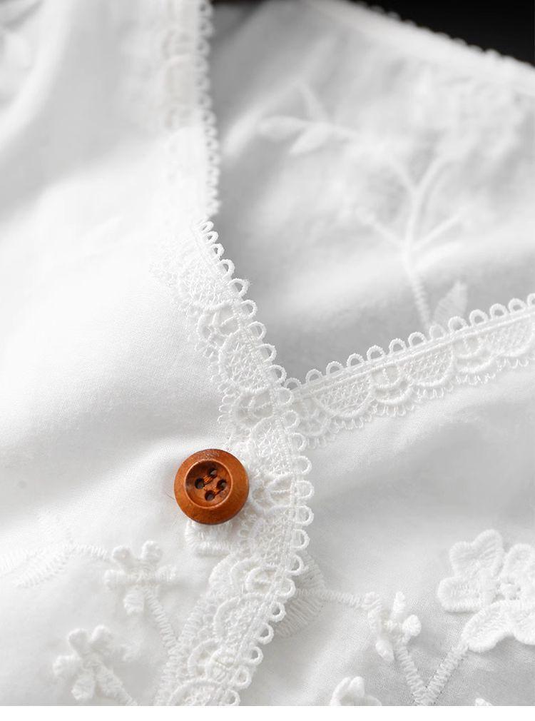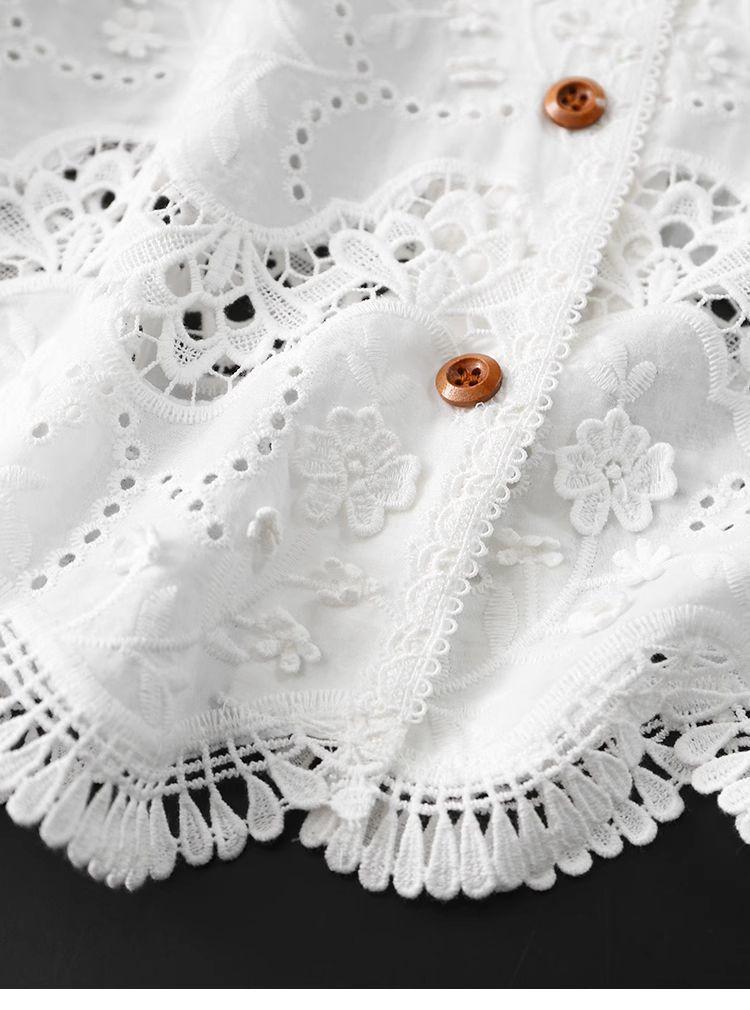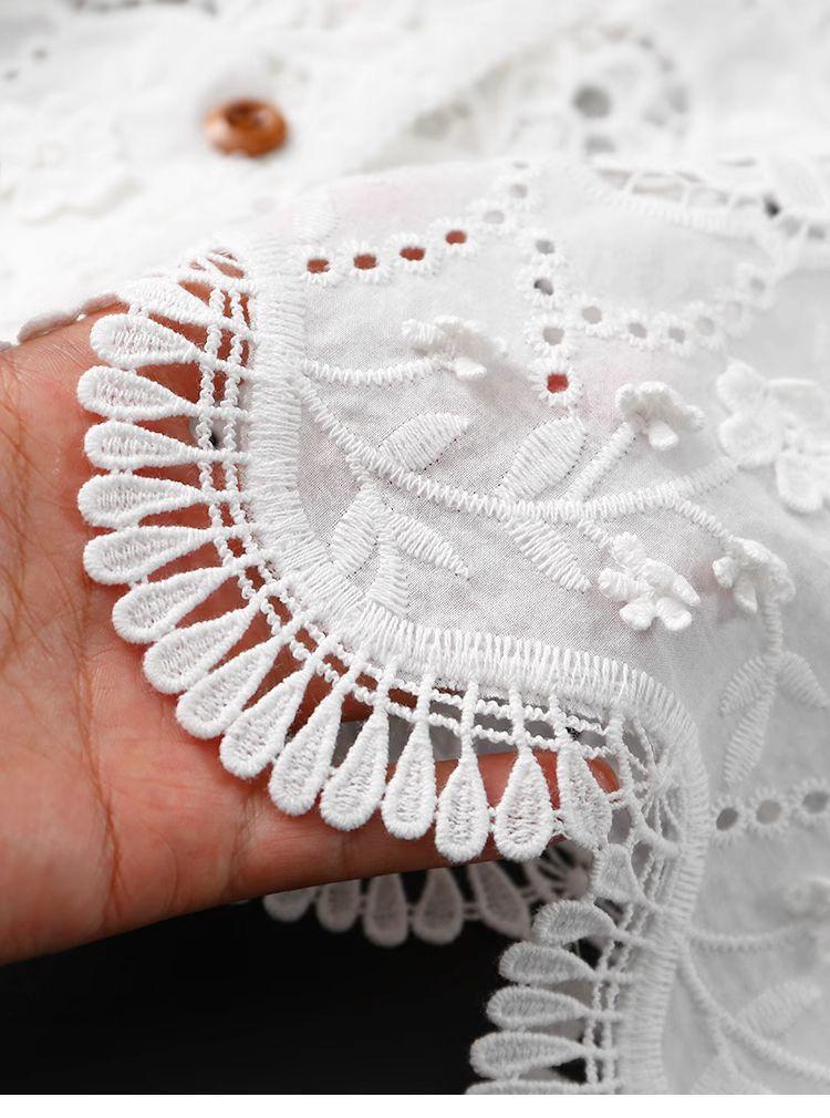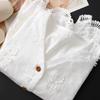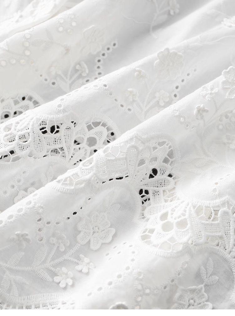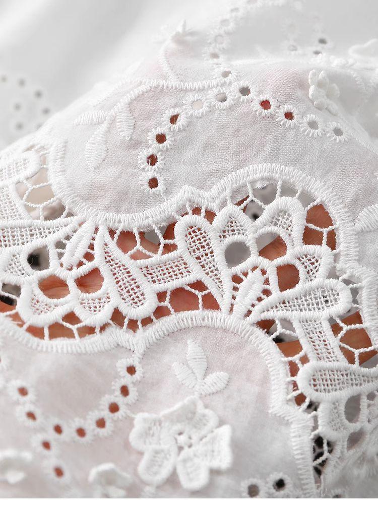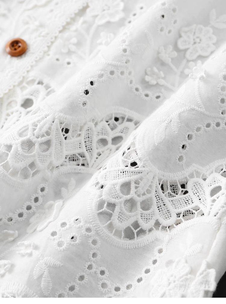 Camiseta de manga corta de algodón puro con cuello en V, estilo francés, de lujo, resistente, tridimensional, con estampado floral de crochet, calado, temperamento suave