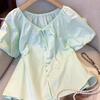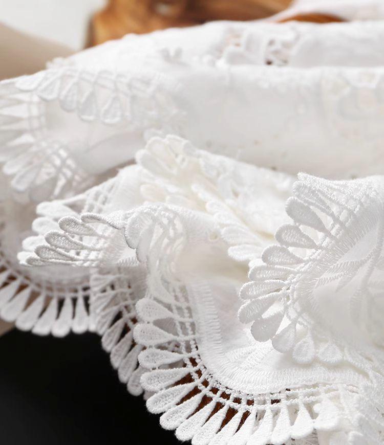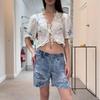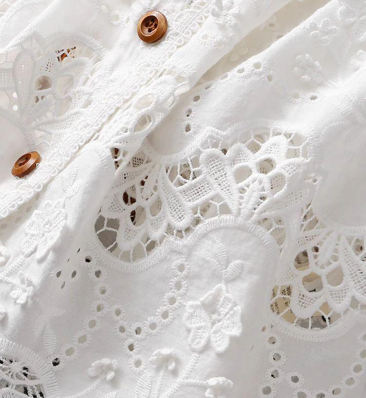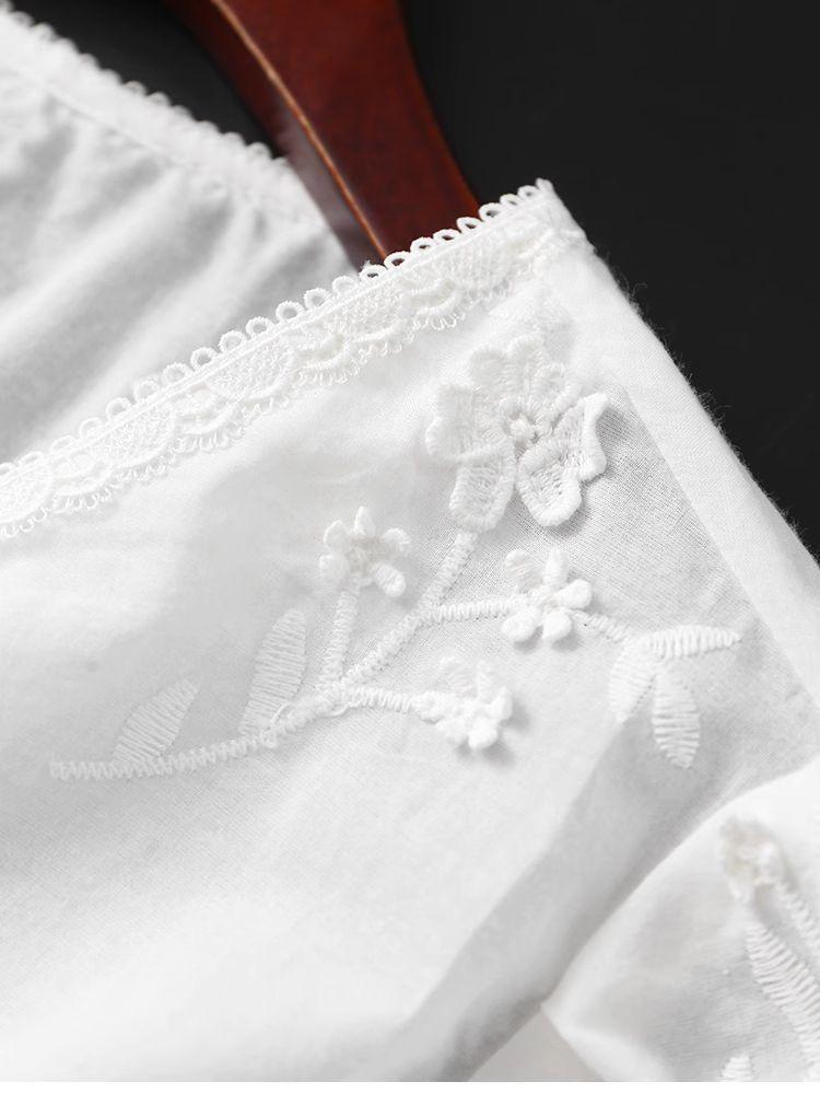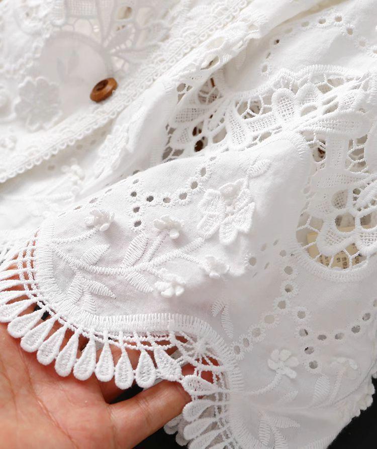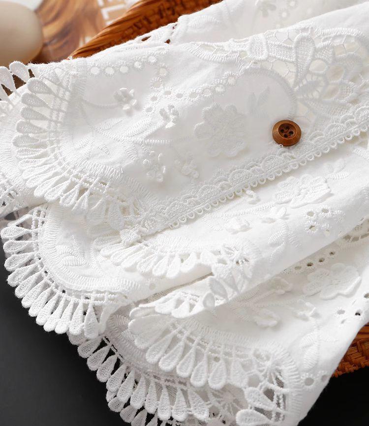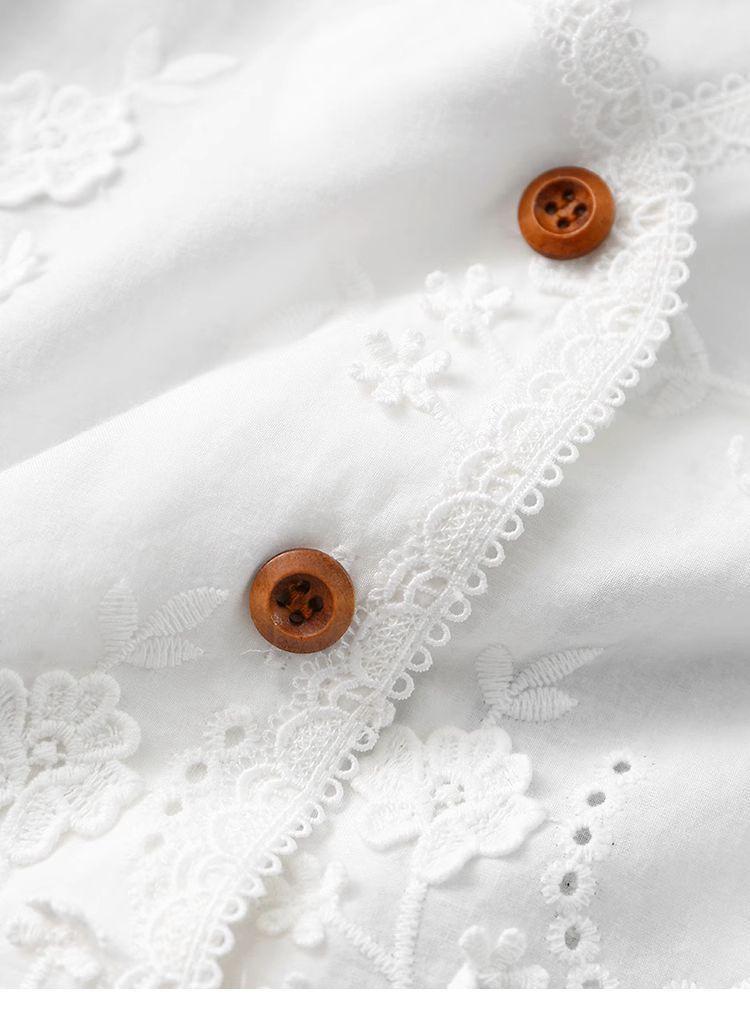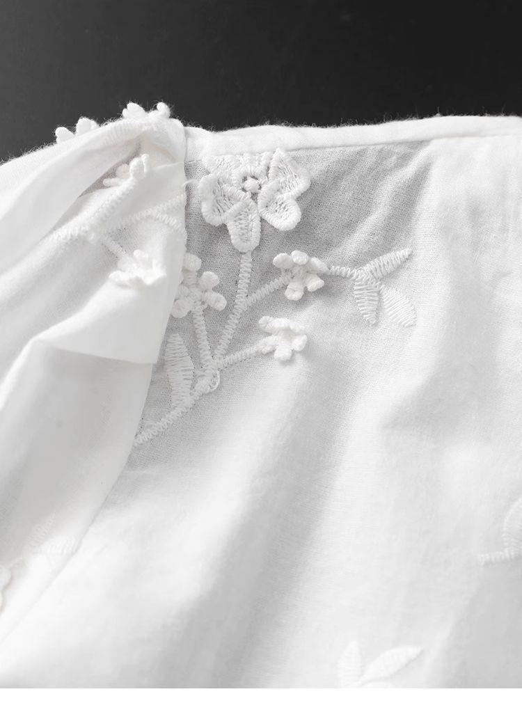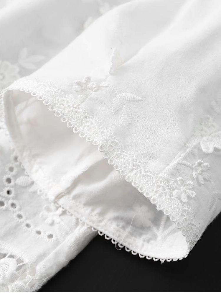 Camiseta de manga corta de algodón puro con cuello en V, estilo francés, de lujo, resistente, tridimensional, con estampado floral de crochet, calado, temperamento suave