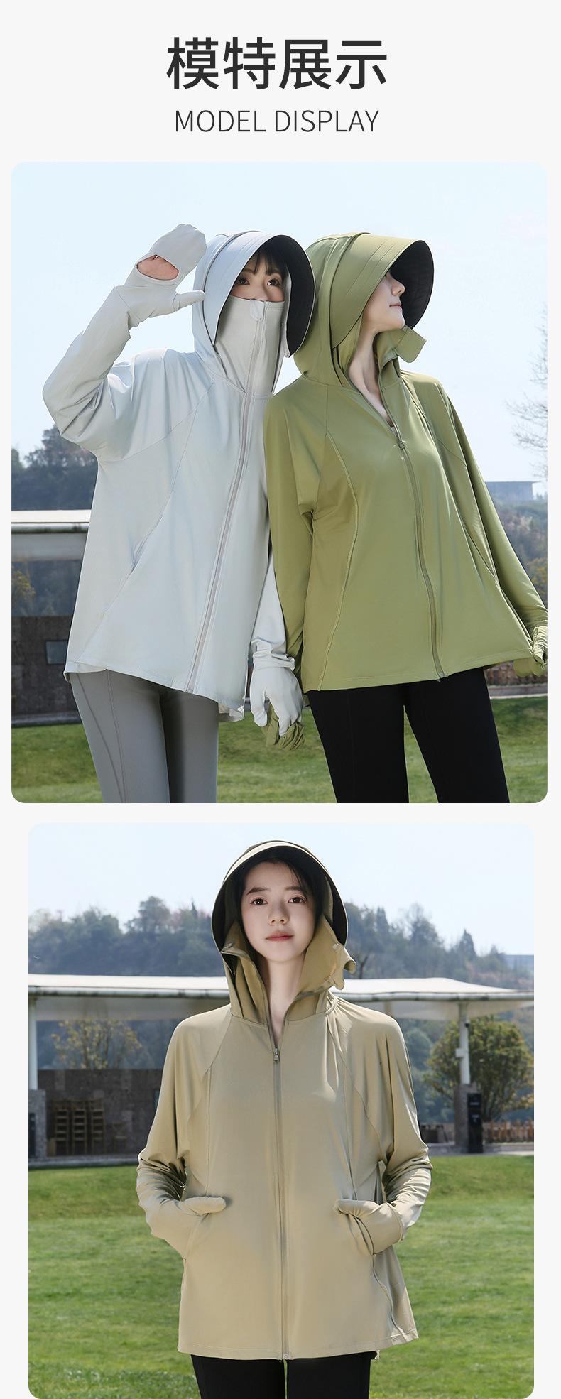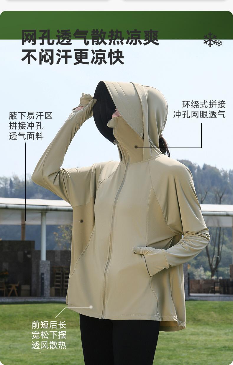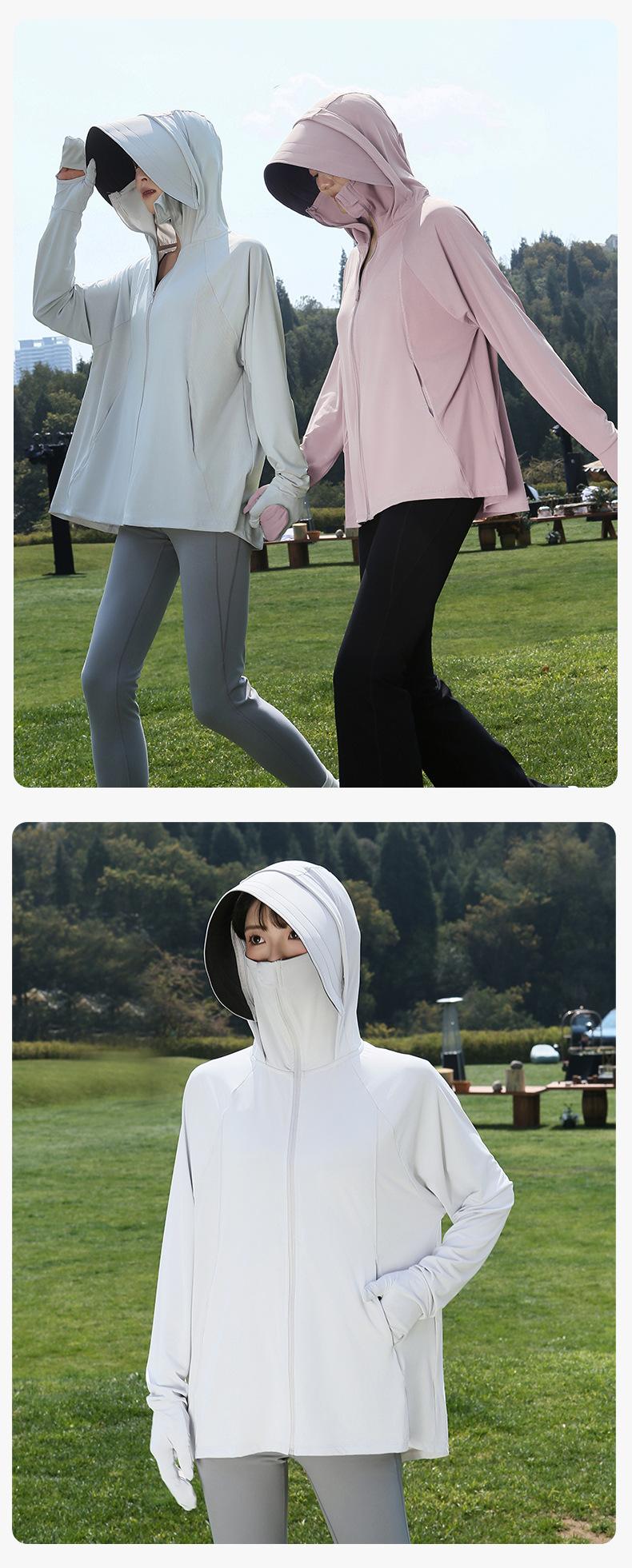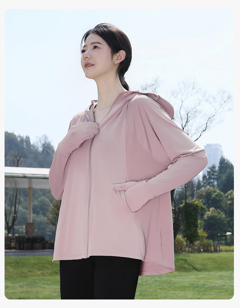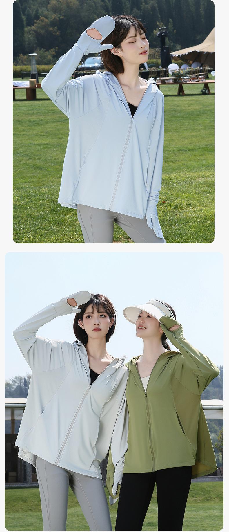 Abrigo de Verano para Mujer Anti-UV UPF50 de Seda de Hielo Fresco Transpirable con Dedos para Protección Solar