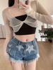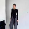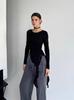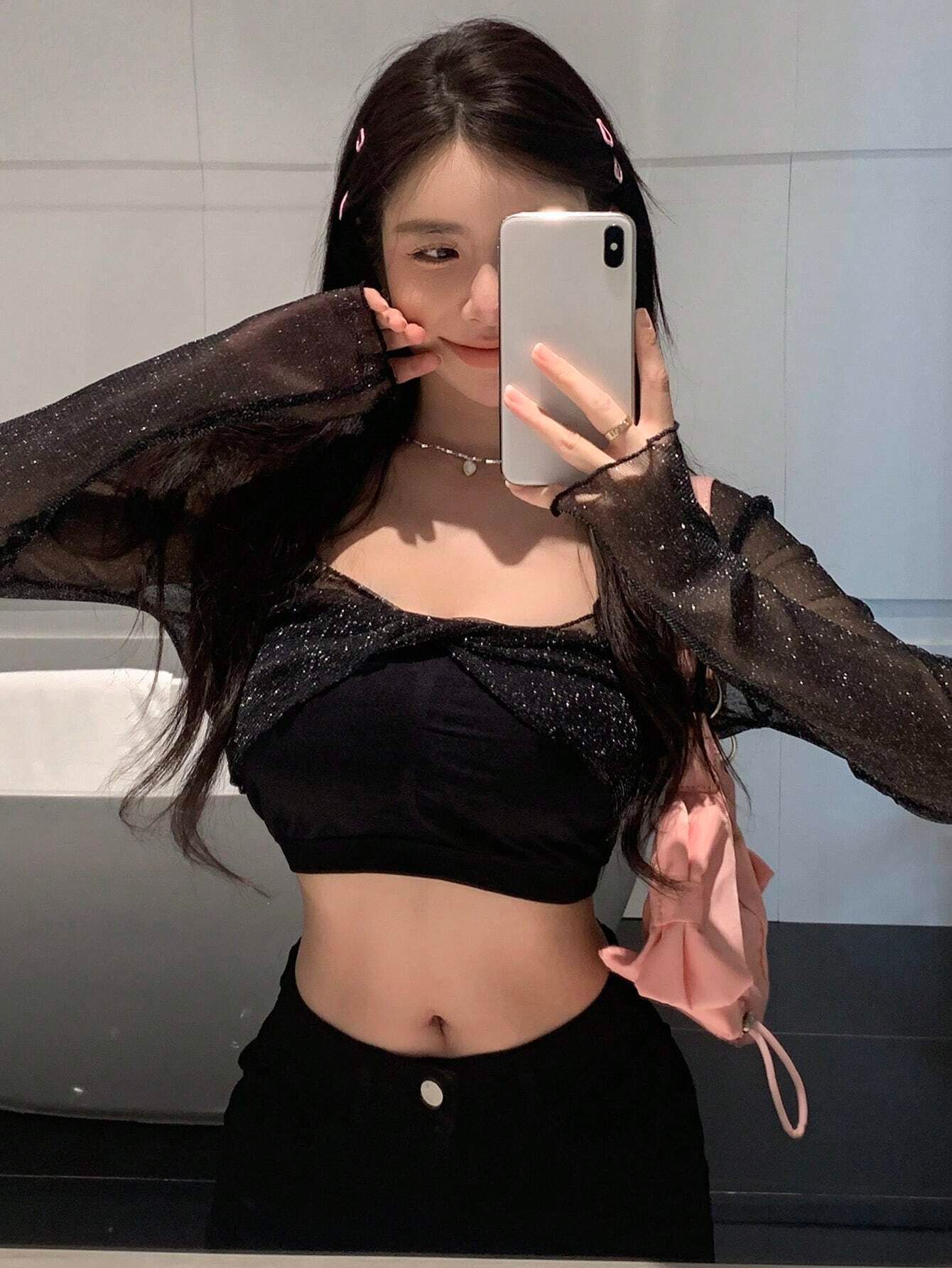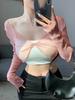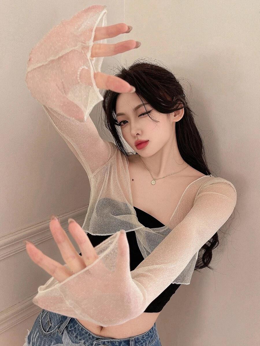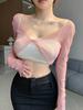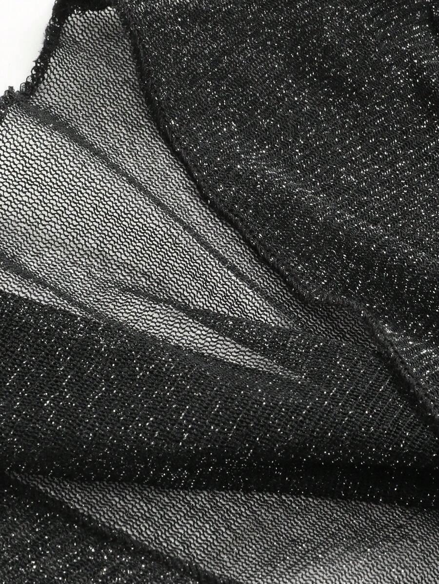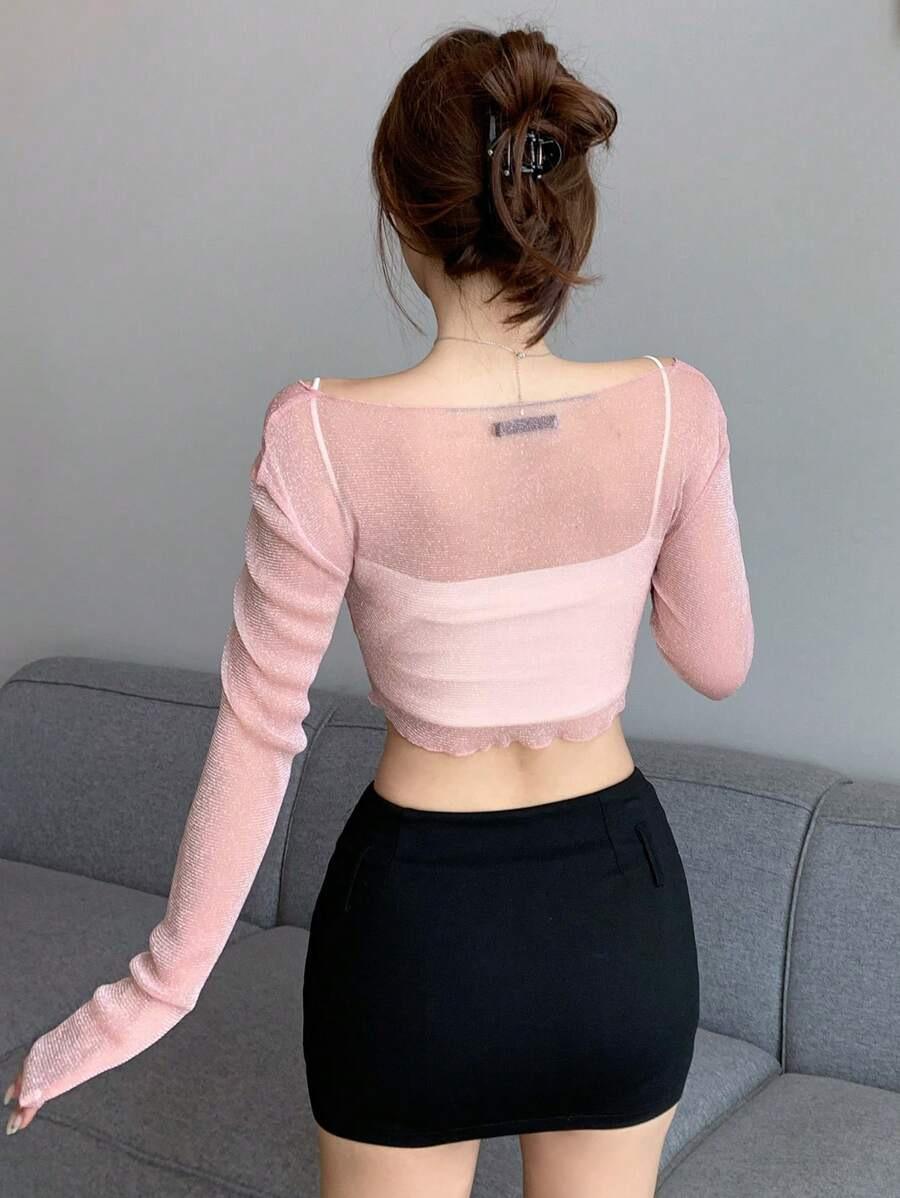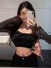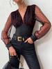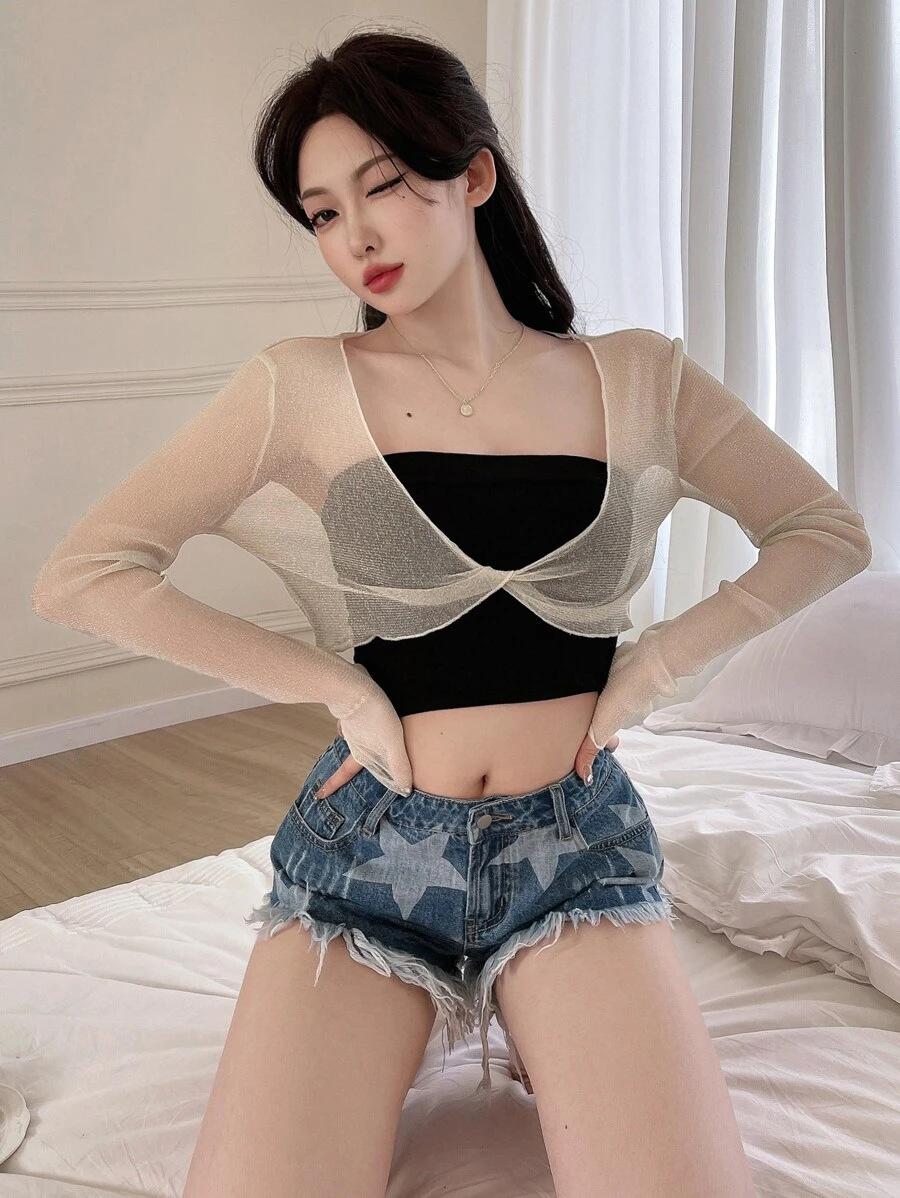 2025 Nueva Blusa Sexy de Chica Picante con Cuello en V, Delgada, Ajustada, Tipo Chal, de Malla en Forma de Cruz, de Manga Larga