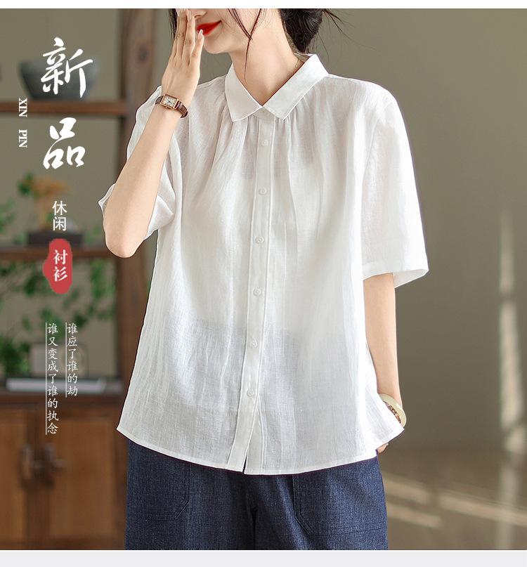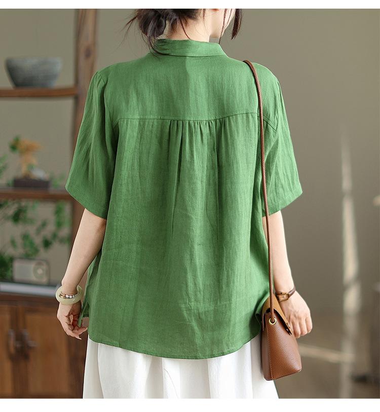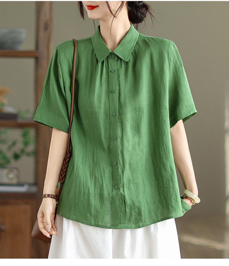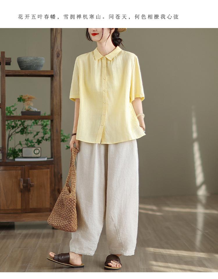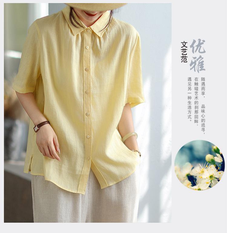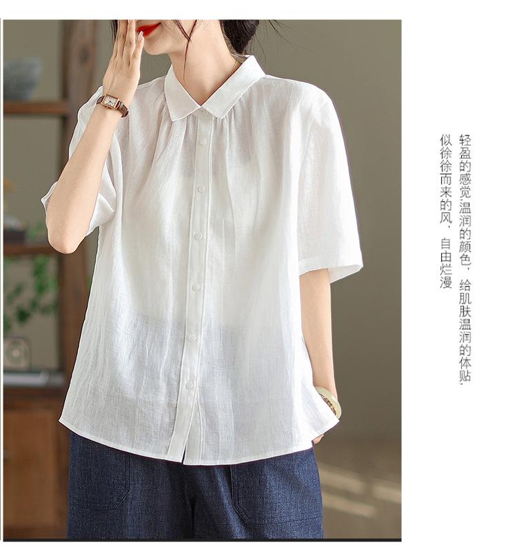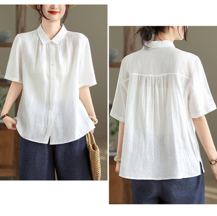Camisa Casual de Verano Nueva de Algodón Puro Delgado, Holgada y Versátil para Mujer