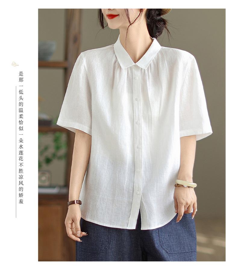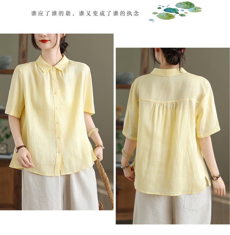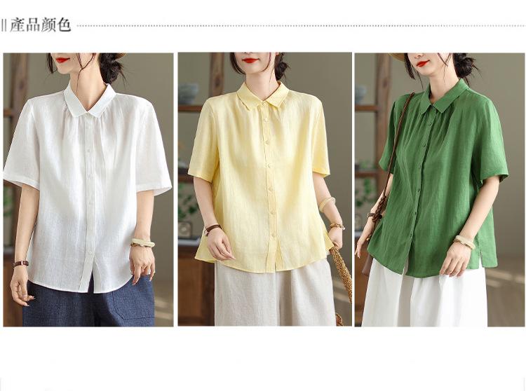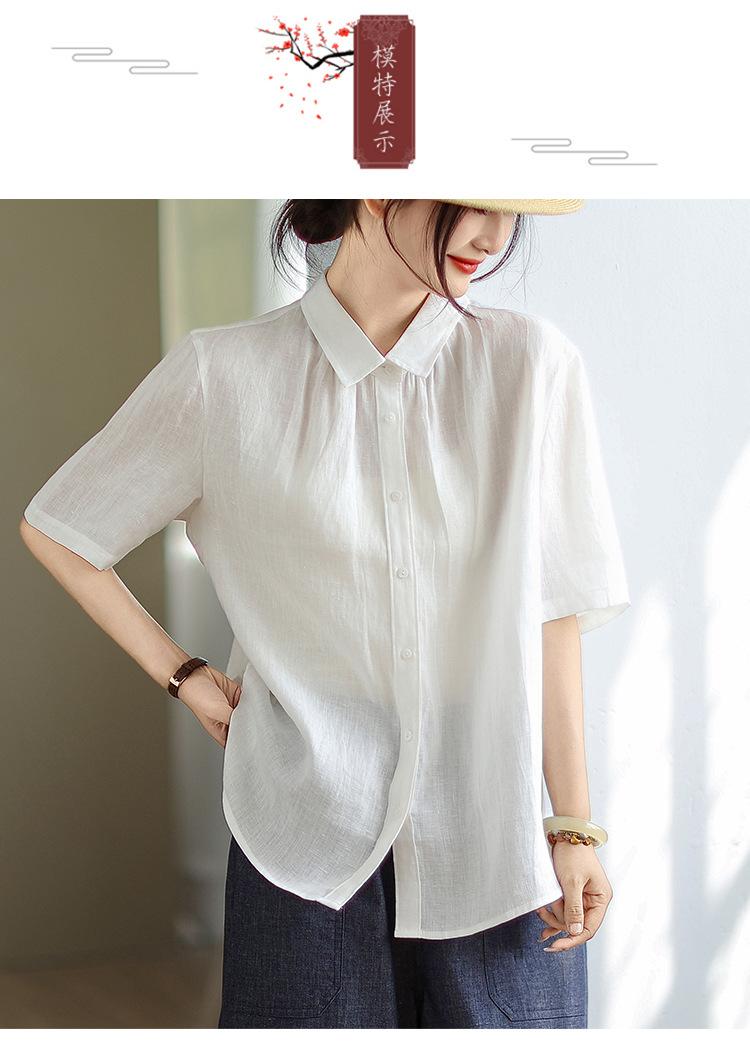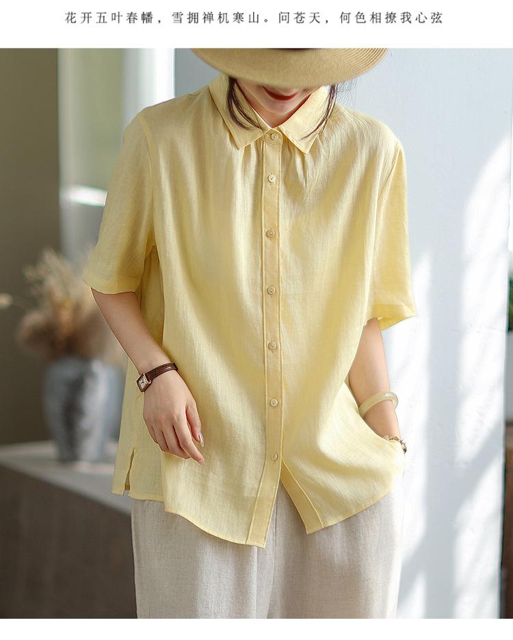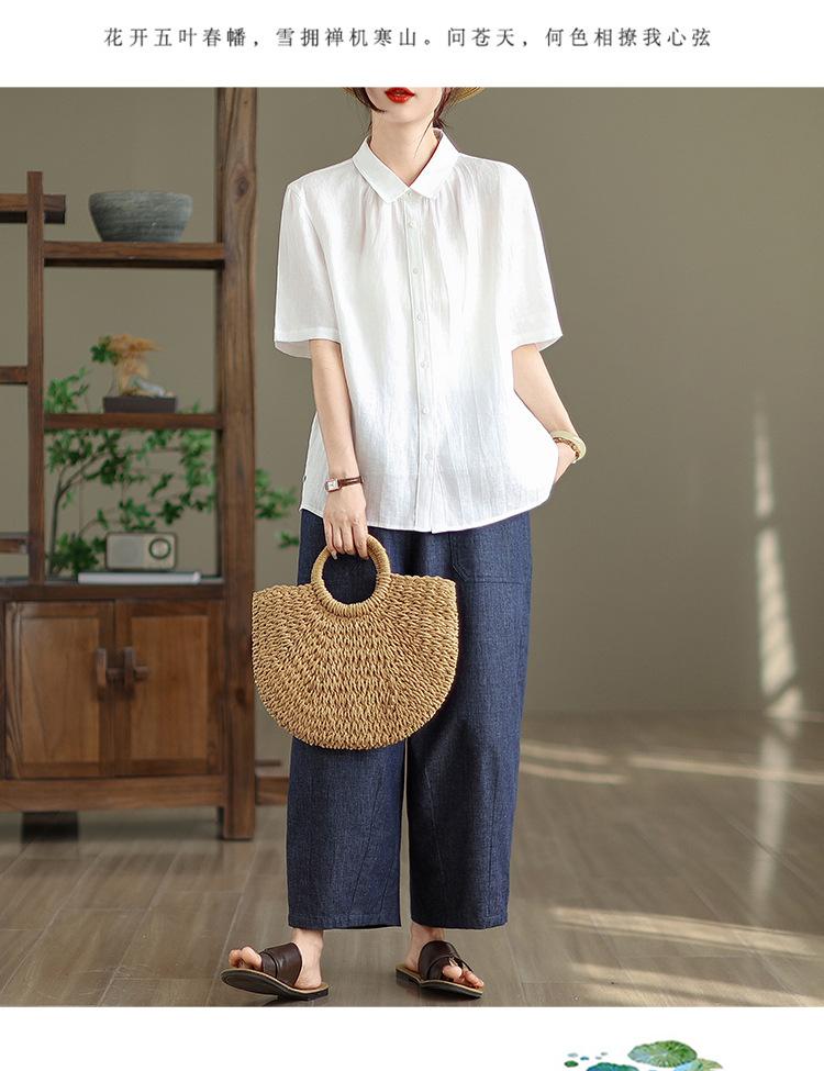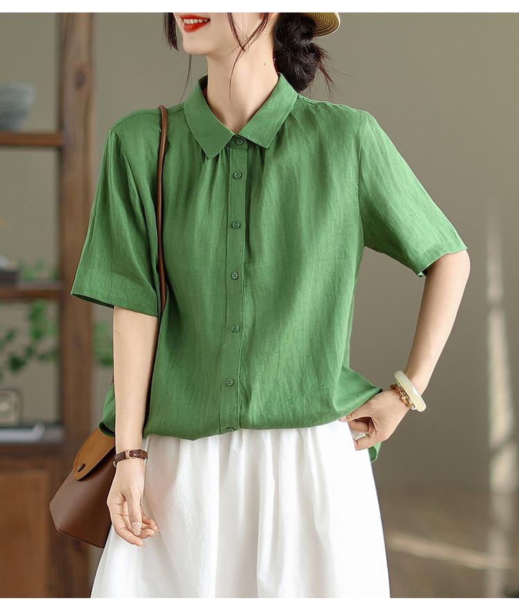 Camisa Casual de Verano Nueva de Algodón Puro Delgado, Holgada y Versátil para Mujer