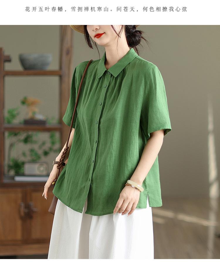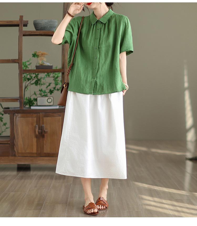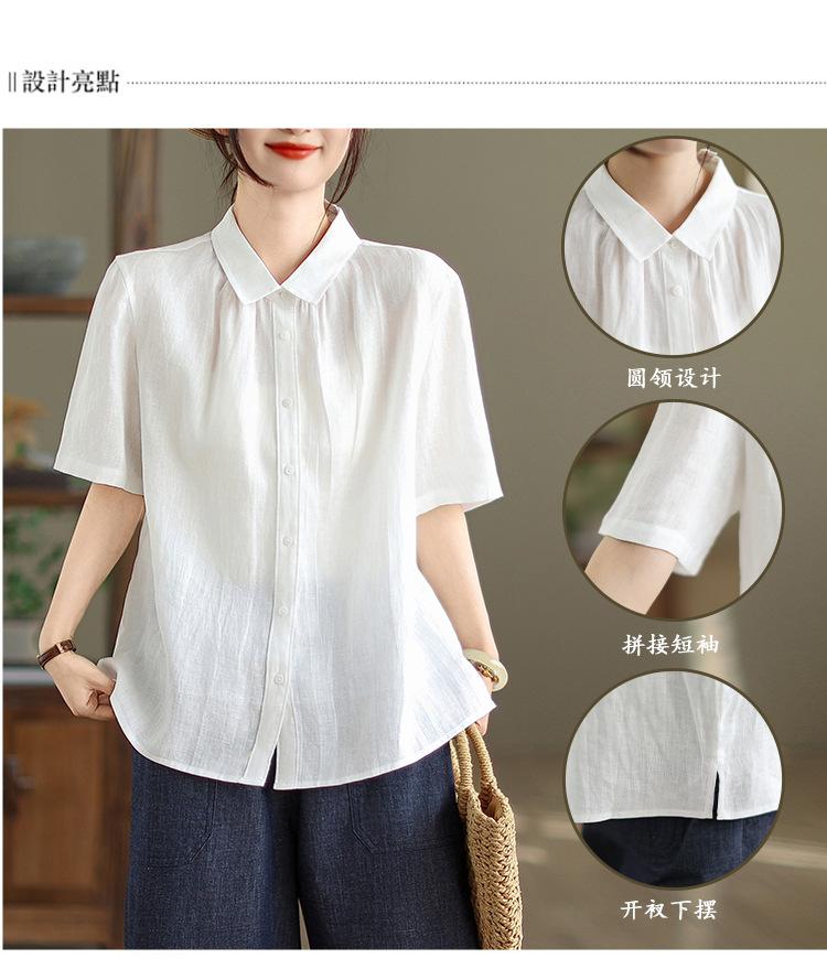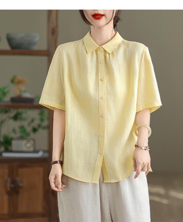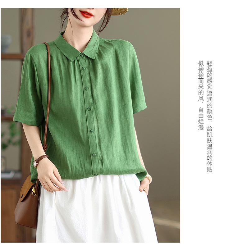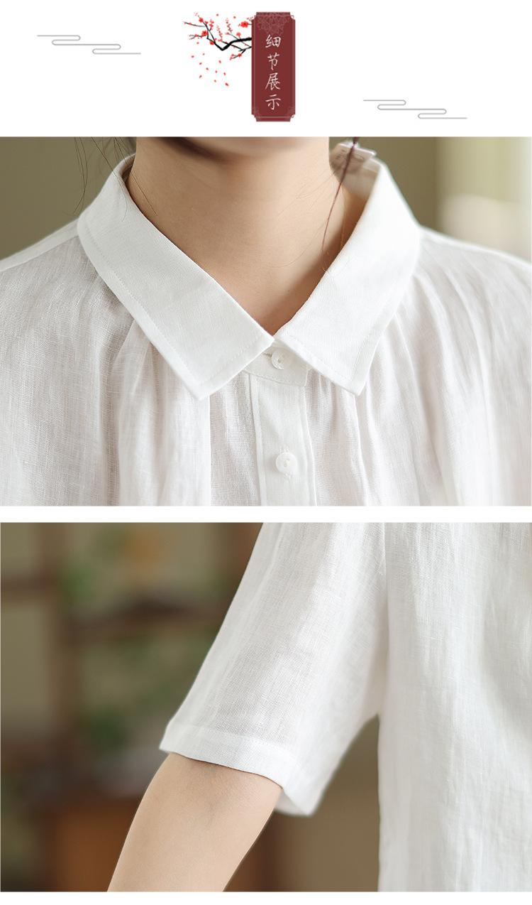 Camisa Casual de Verano Nueva de Algodón Puro Delgado, Holgada y Versátil para Mujer