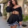 Top de tubo de moda europea y americana, falda de pastel de color sólido, conjunto de dos piezas crop top;