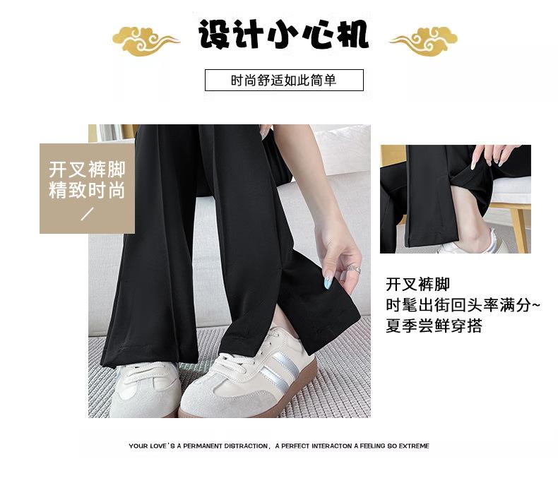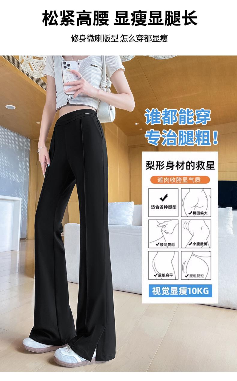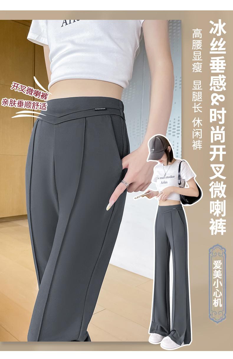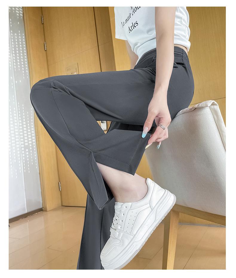 Pantalones Campana de Seda Helada con Abertura Lateral para Mujer Verano 2025 Delgados Cintura Alta Adelgazantes Pierna Ligeramente Ancha Traje Micropantalón