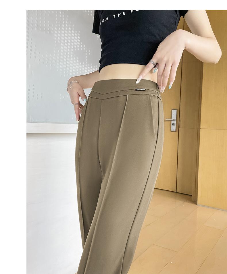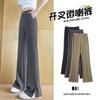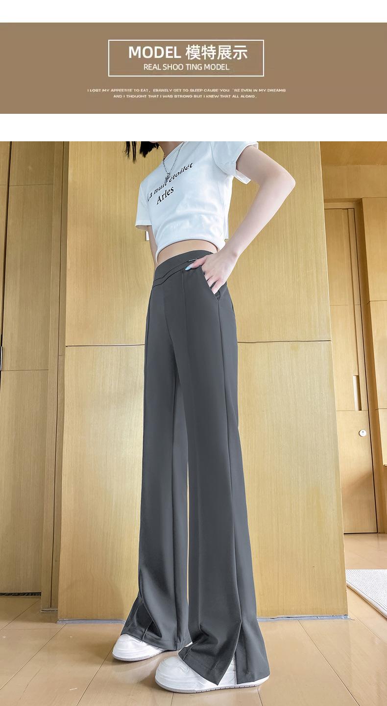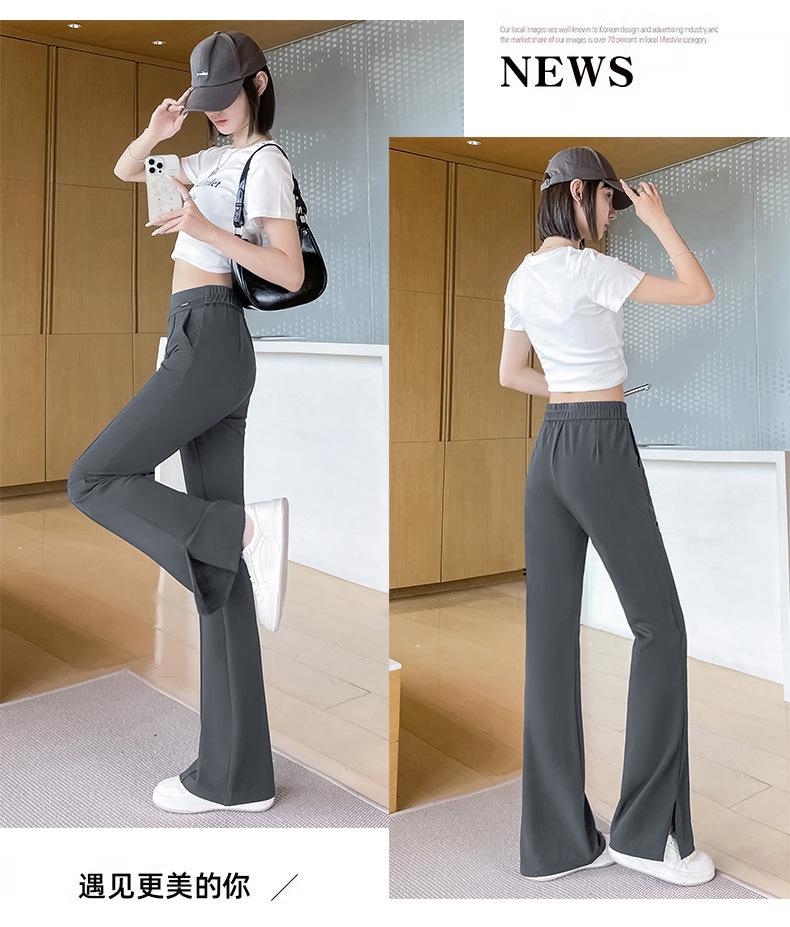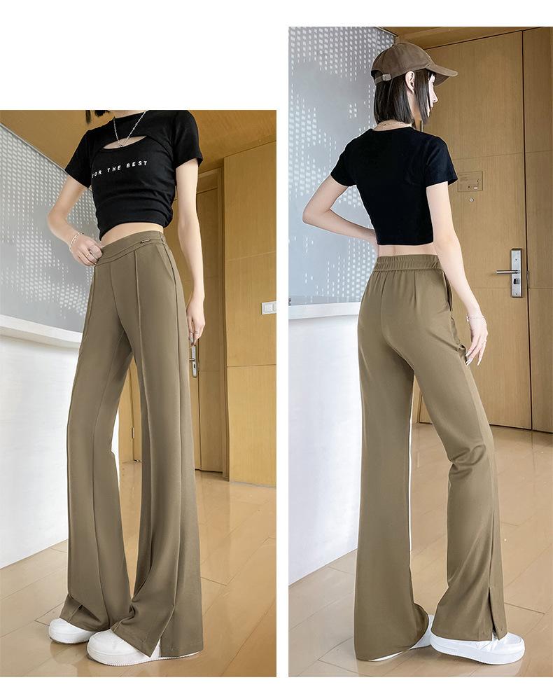 Pantalones Campana de Seda Helada con Abertura Lateral para Mujer Verano 2025 Delgados Cintura Alta Adelgazantes Pierna Ligeramente Ancha Traje Micropantalón