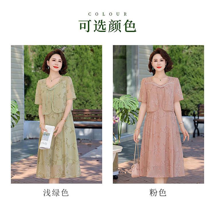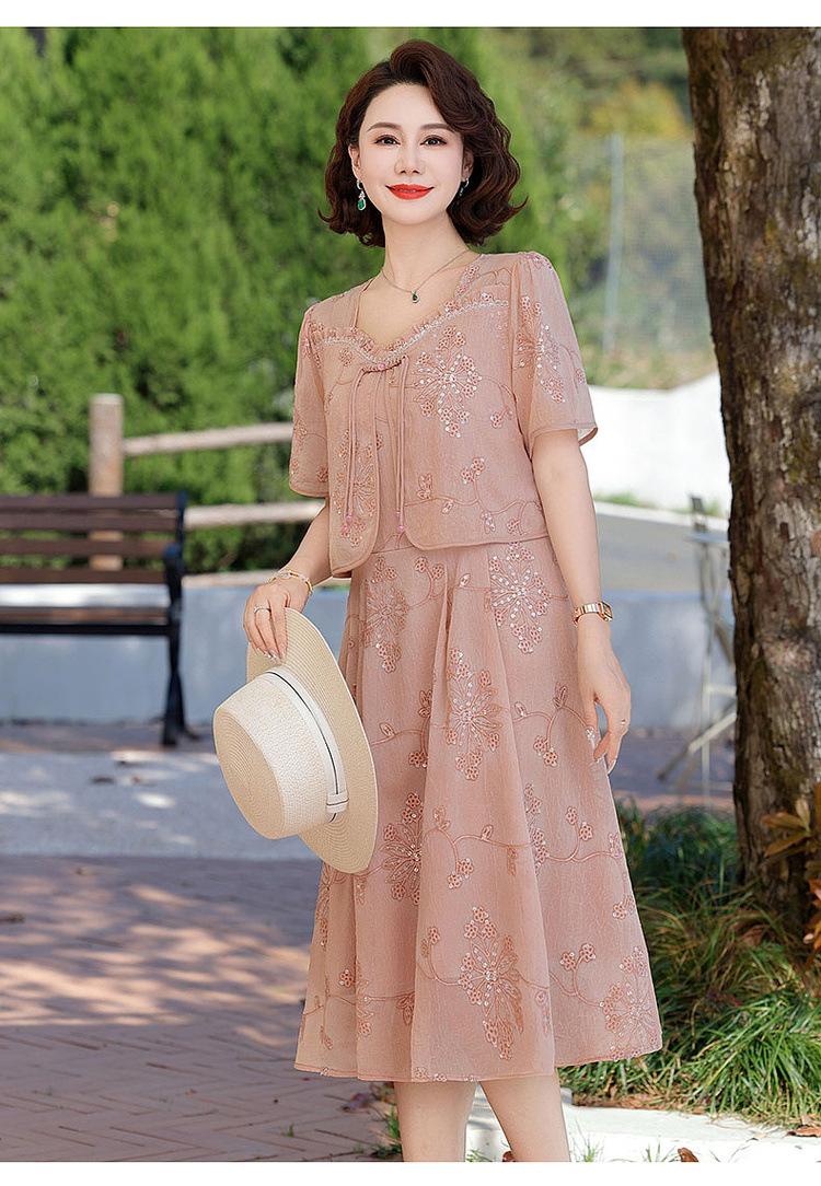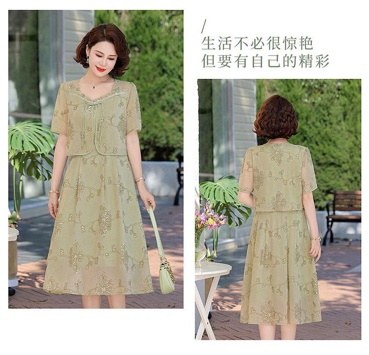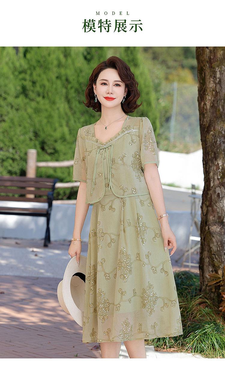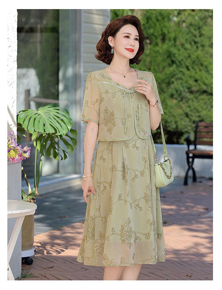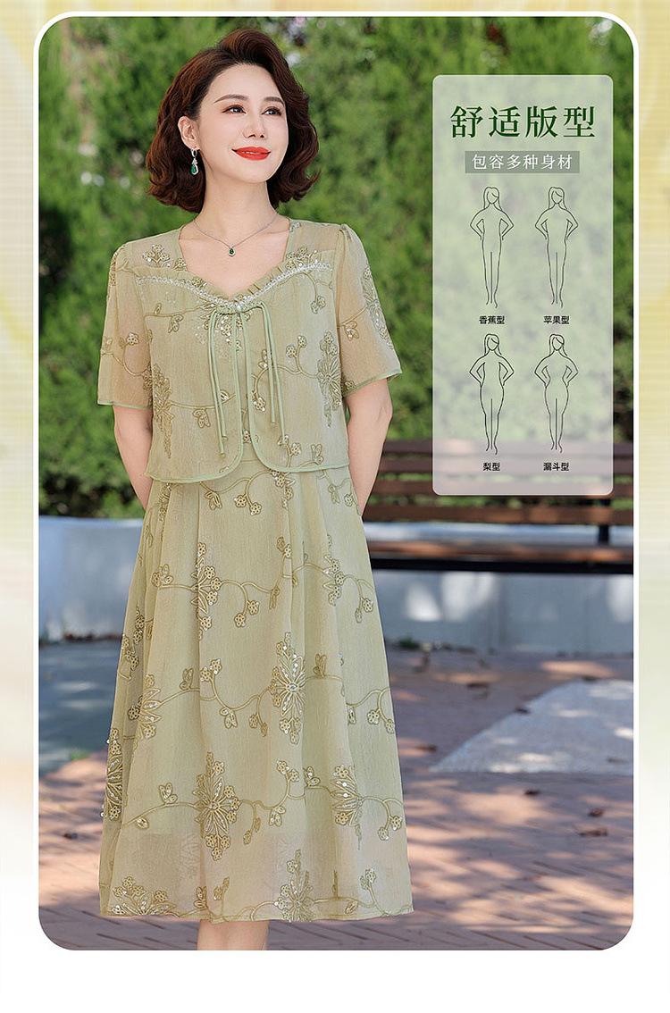 Vestido de Verano de Estilo Chino para Madre de Mediana Edad 2025 Nuevo Estilo Ropa para Mujeres de Mediana Edad y Ancianas Falda Larga Falso de Dos Piezas