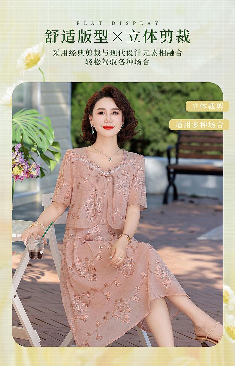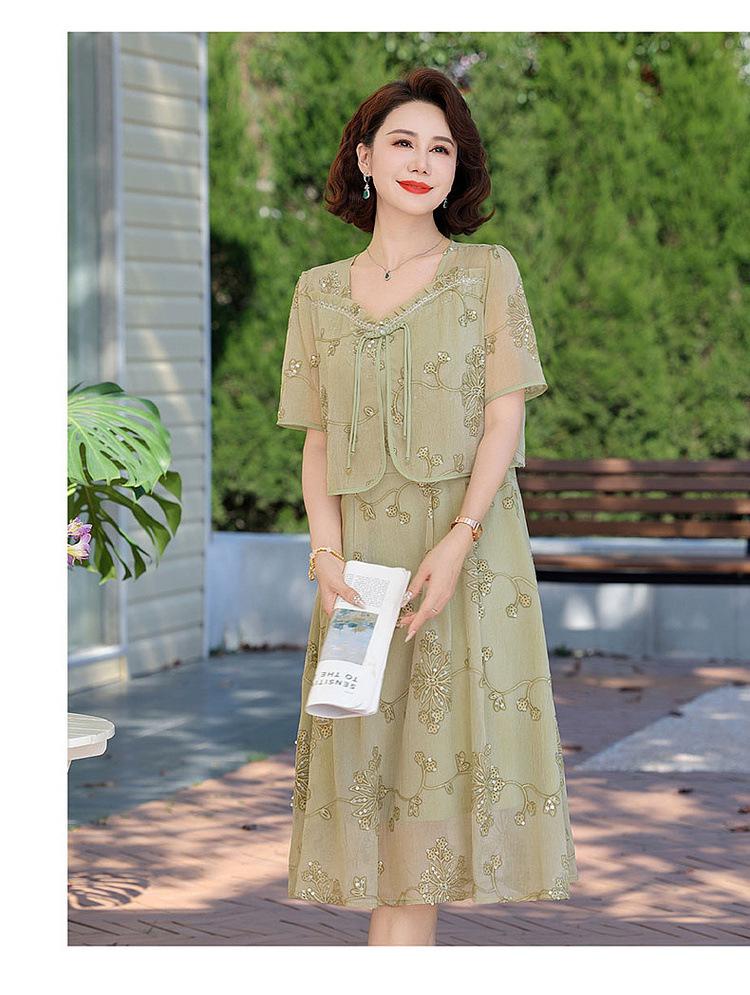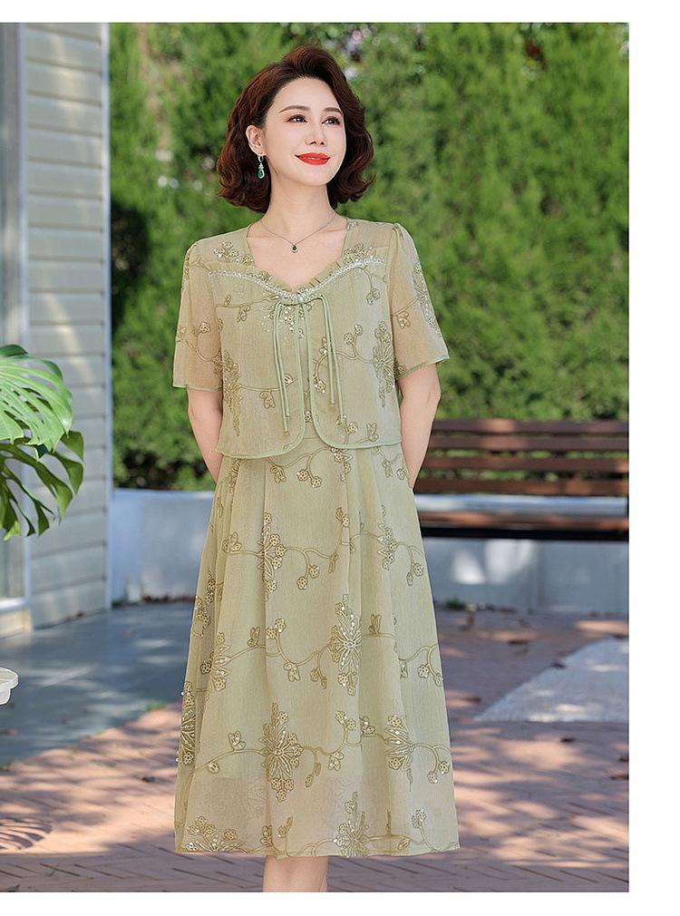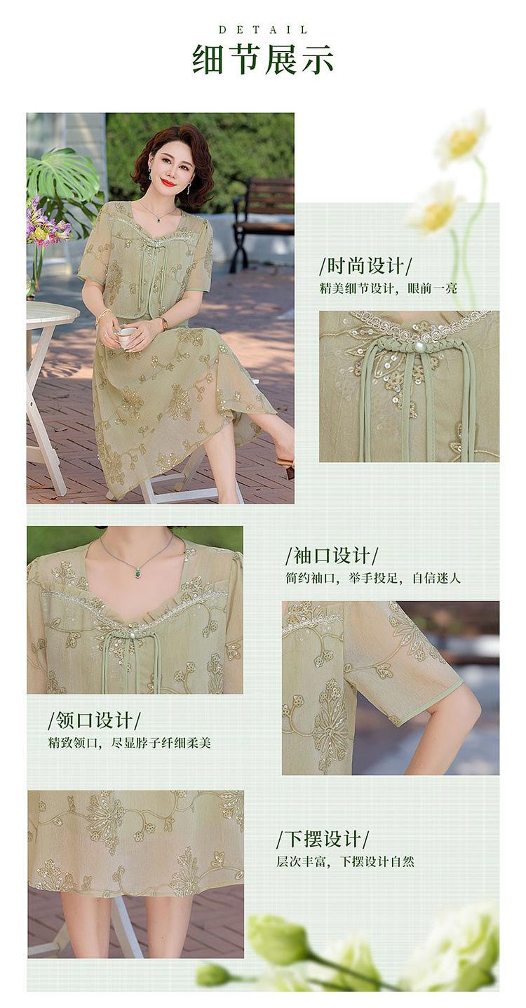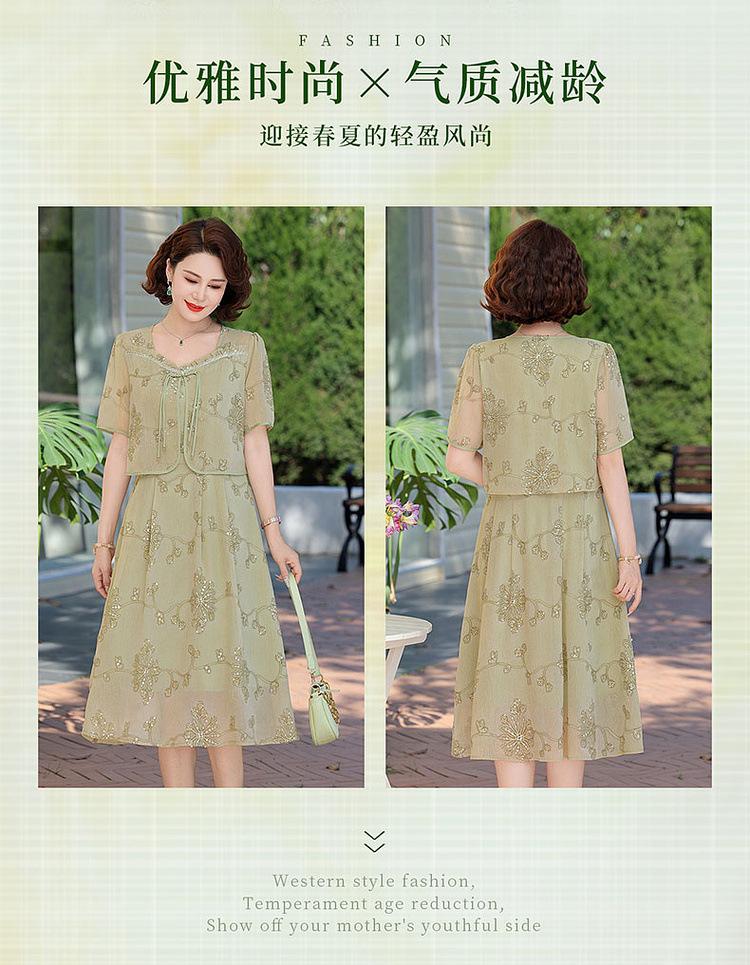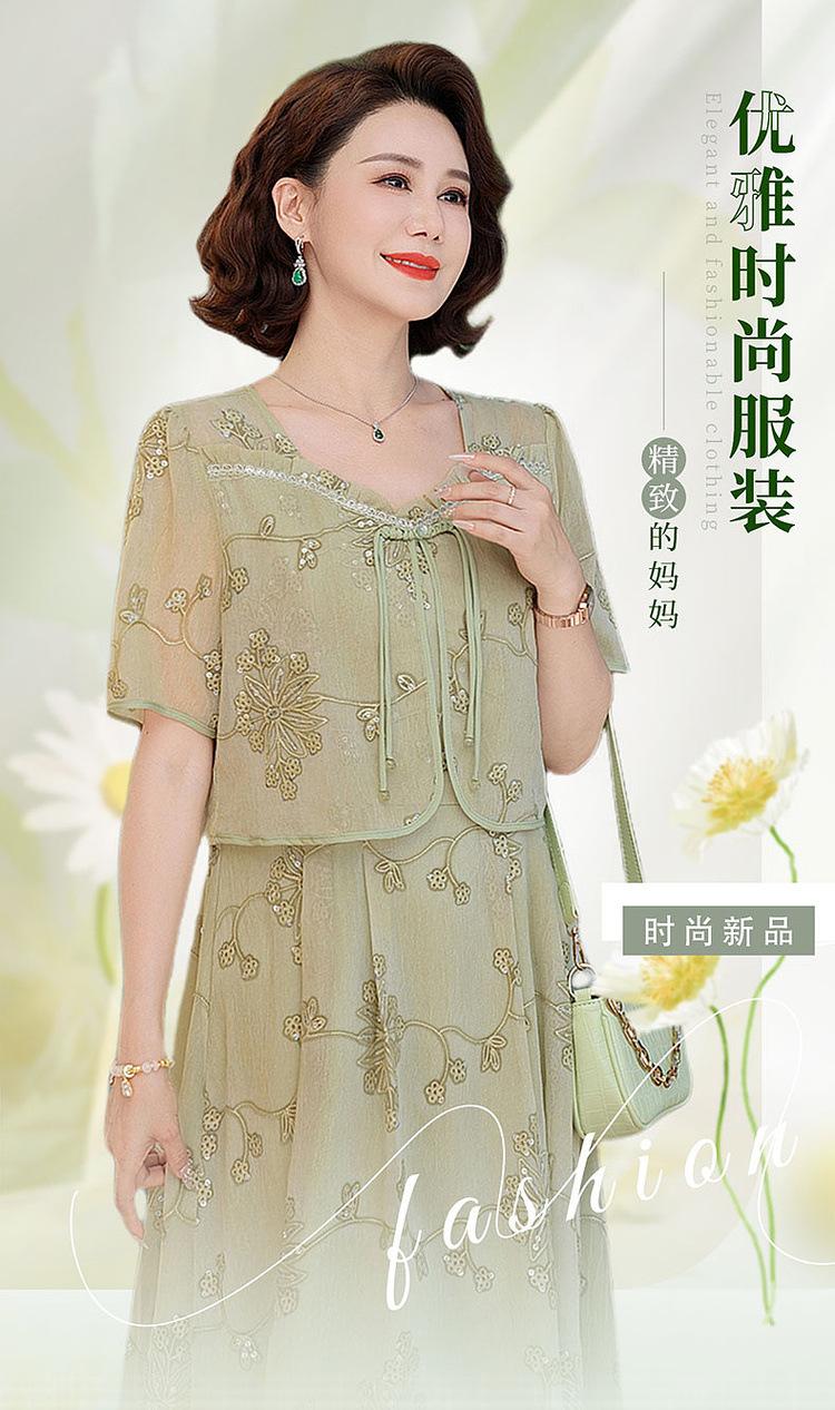 Vestido de Verano de Estilo Chino para Madre de Mediana Edad 2025 Nuevo Estilo Ropa para Mujeres de Mediana Edad y Ancianas Falda Larga Falso de Dos Piezas