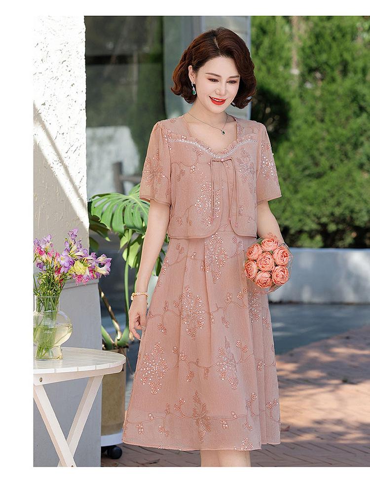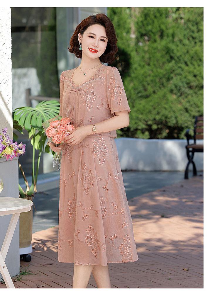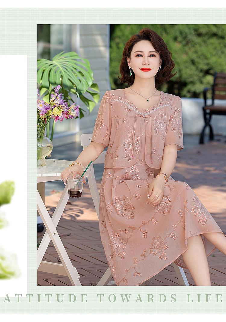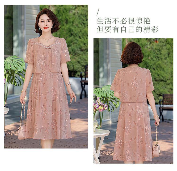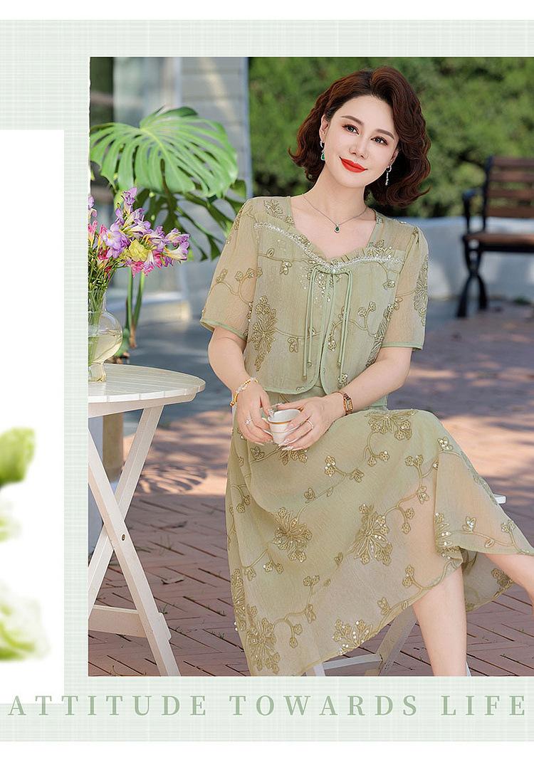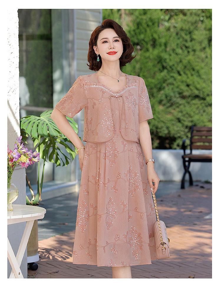 Vestido de Verano de Estilo Chino para Madre de Mediana Edad 2025 Nuevo Estilo Ropa para Mujeres de Mediana Edad y Ancianas Falda Larga Falso de Dos Piezas