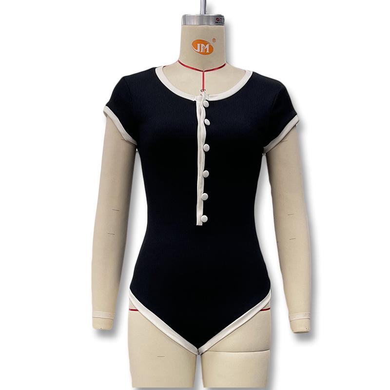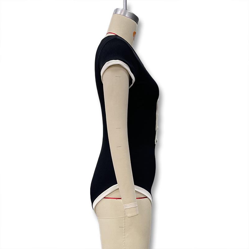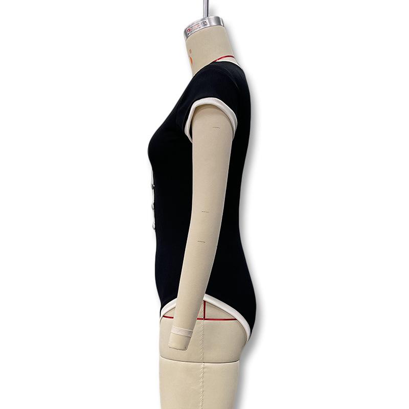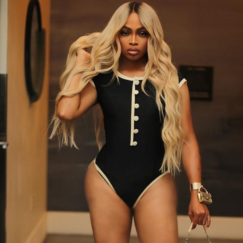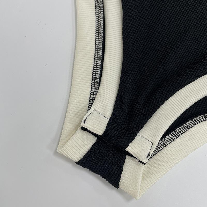 Popular Comercio Exterior Europeo y Americano Simple Combinación de Colores Blanco y Negro Moda Sexy de Un Solo Botón Sin Mangas Ajustado Sexy Mono