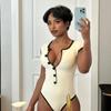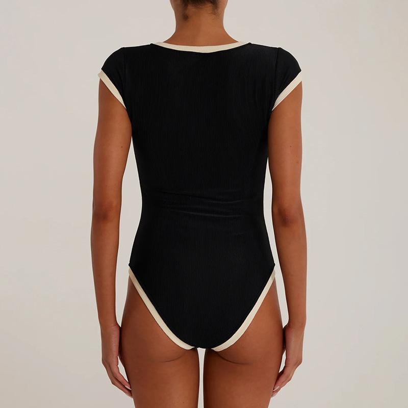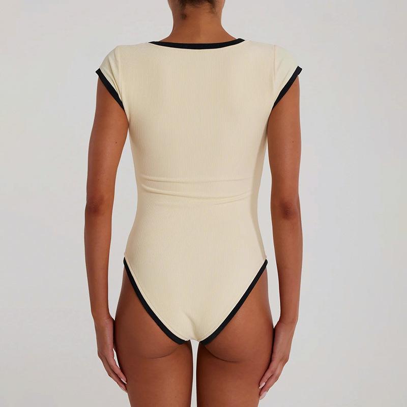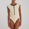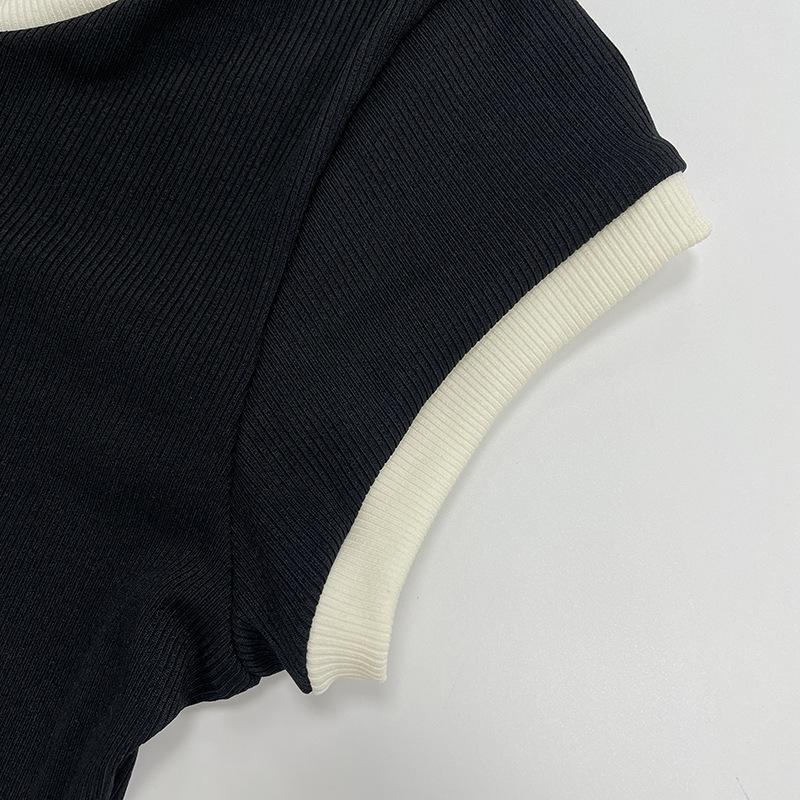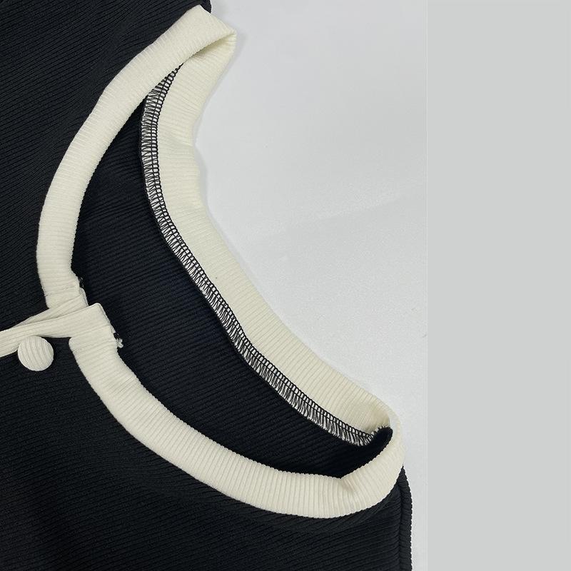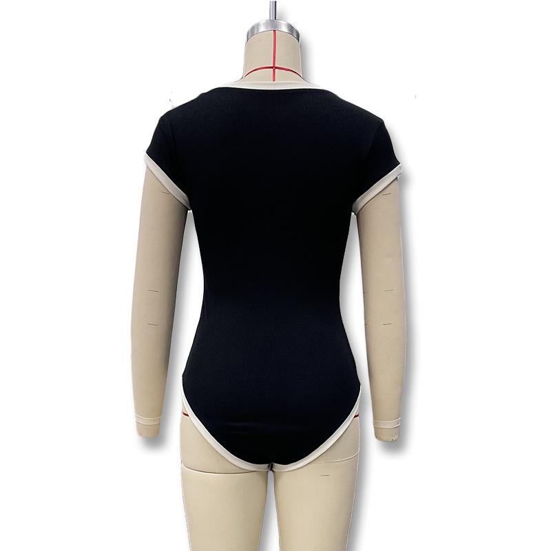 Popular Comercio Exterior Europeo y Americano Simple Combinación de Colores Blanco y Negro Moda Sexy de Un Solo Botón Sin Mangas Ajustado Sexy Mono