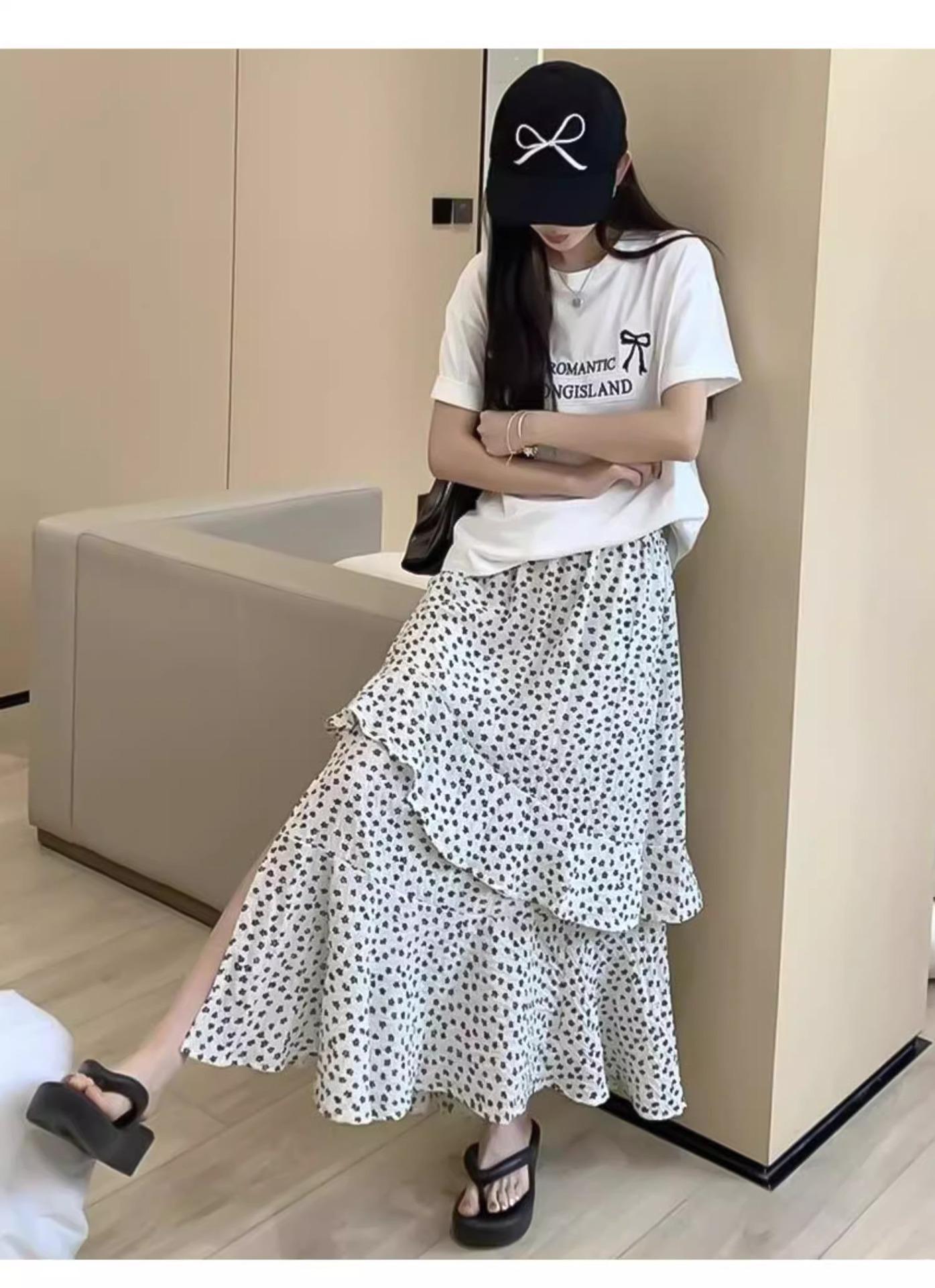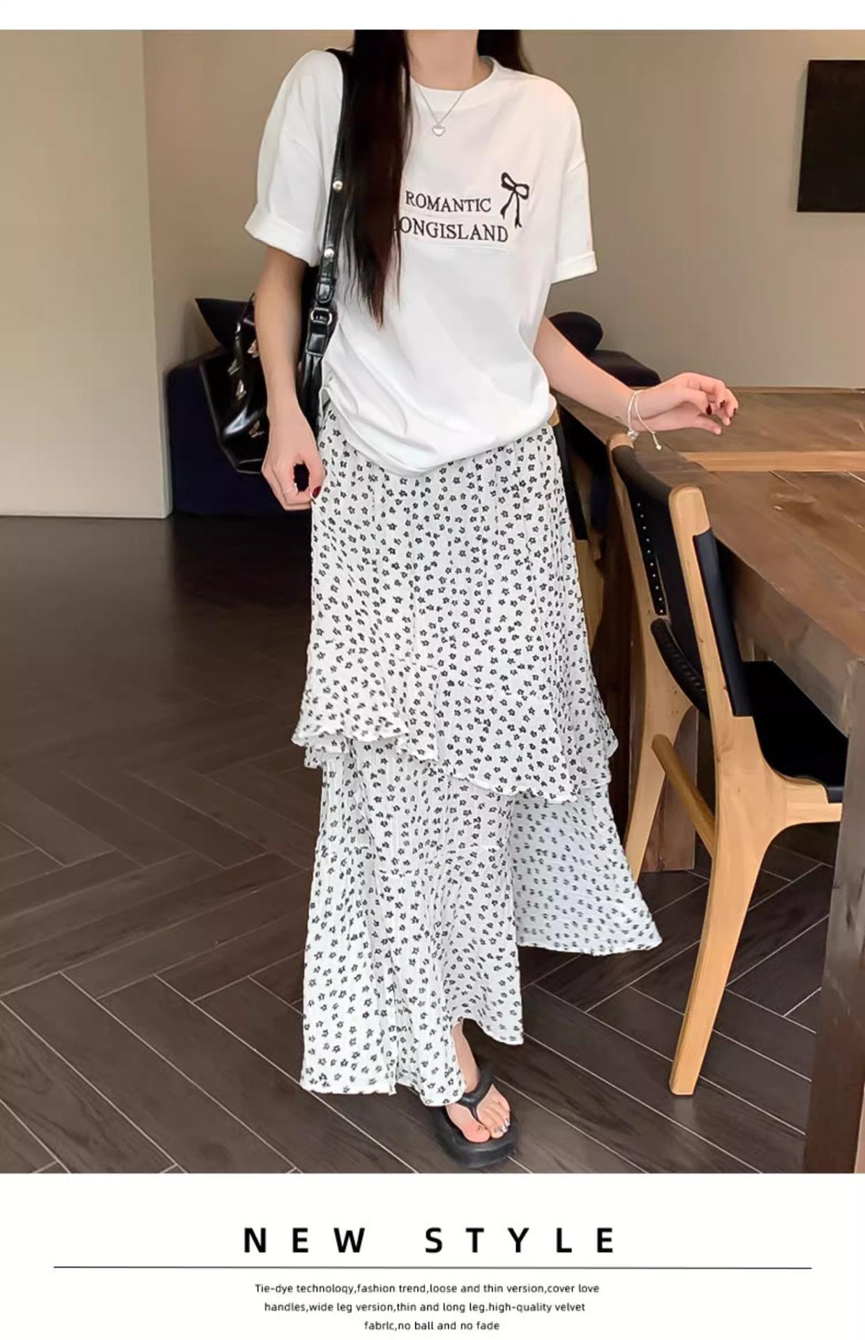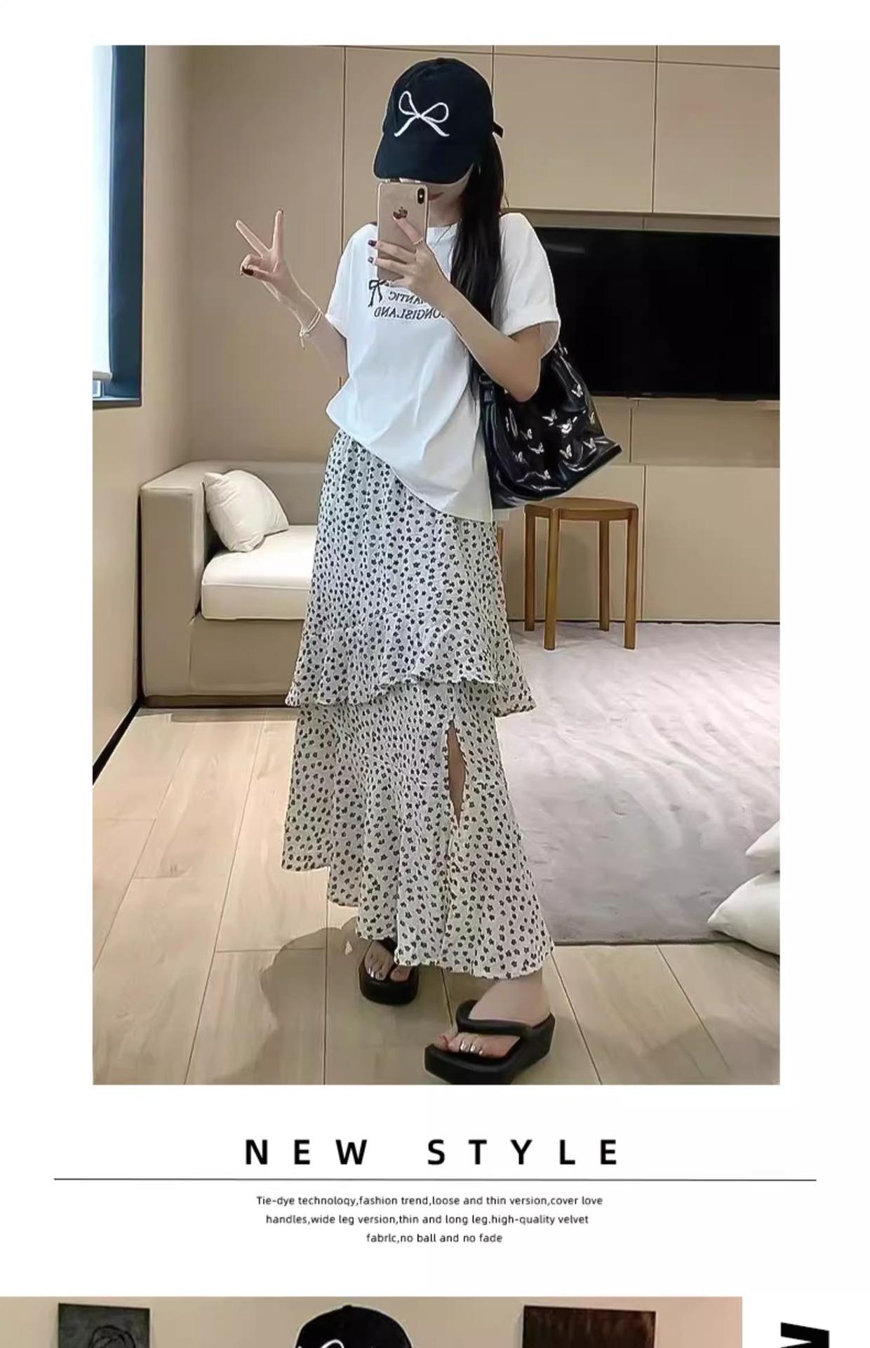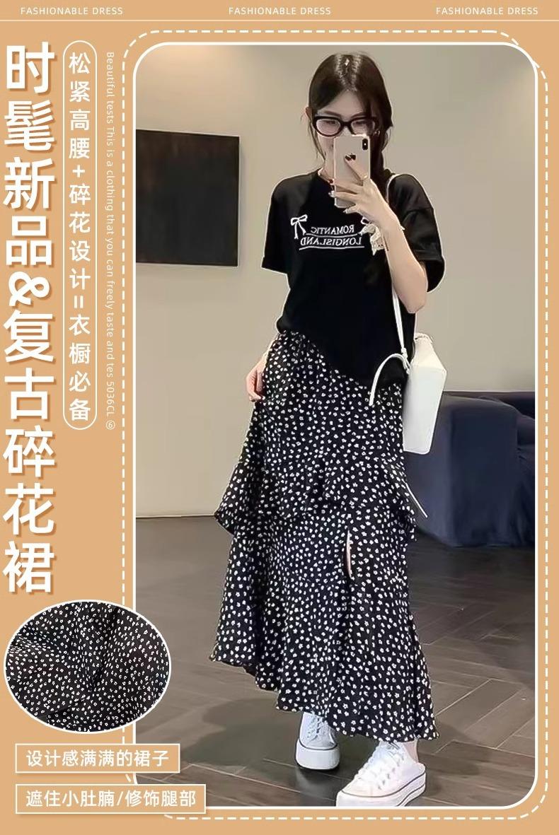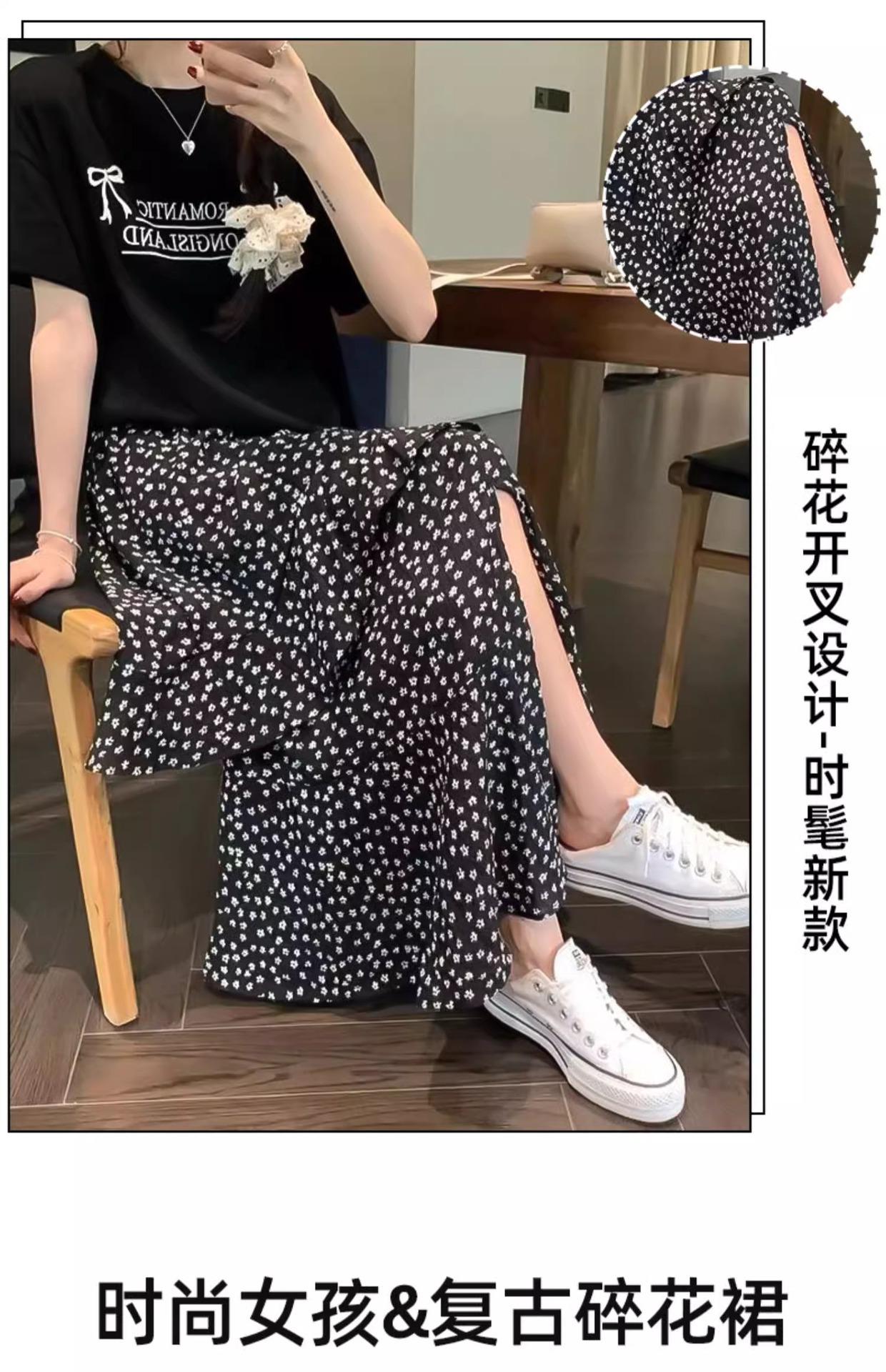 Falda Floral Vintage Estilo Coreano para Mujer 2025 Verano Nuevo Estilo Abertura Lateral Cintura Alta A-line Pastel Falda Larga