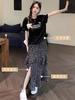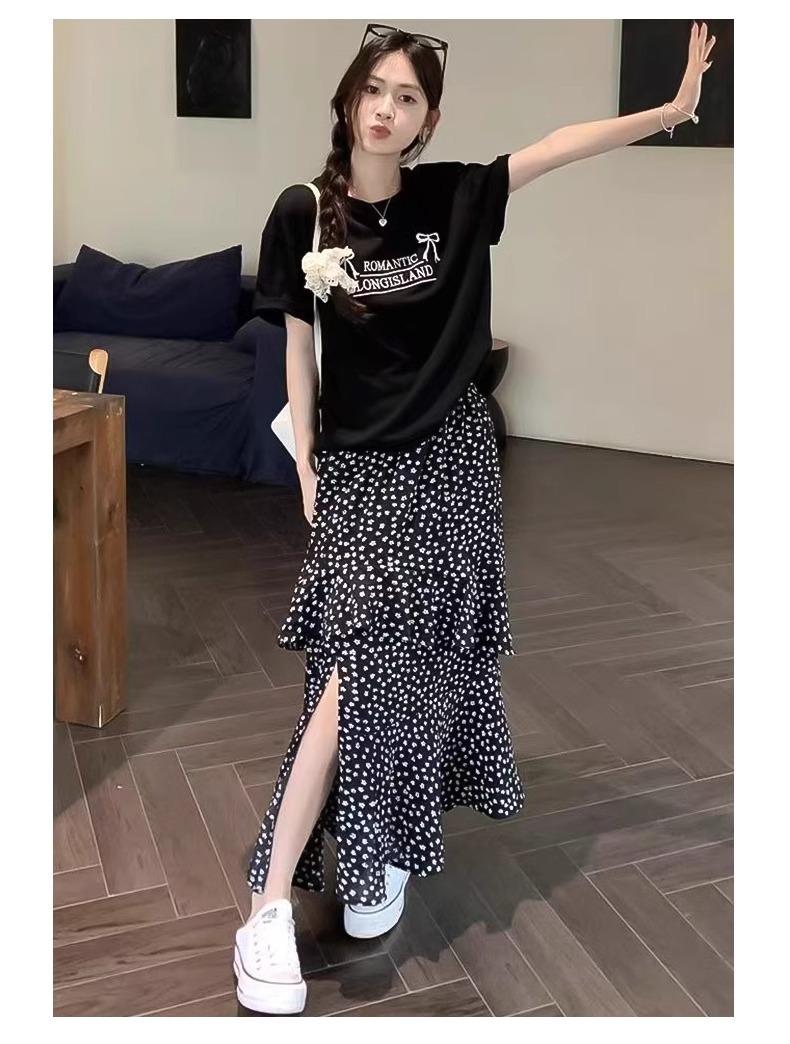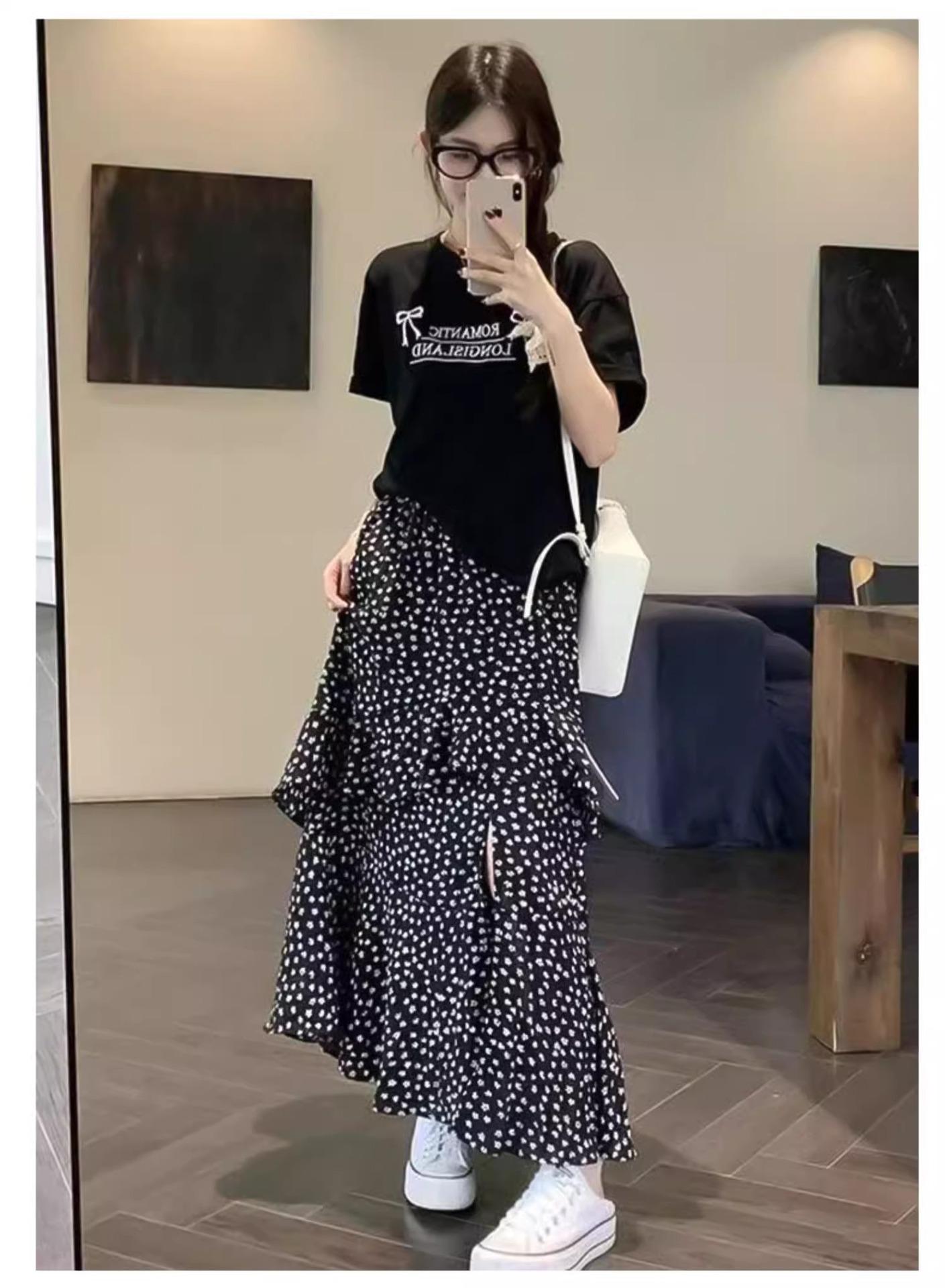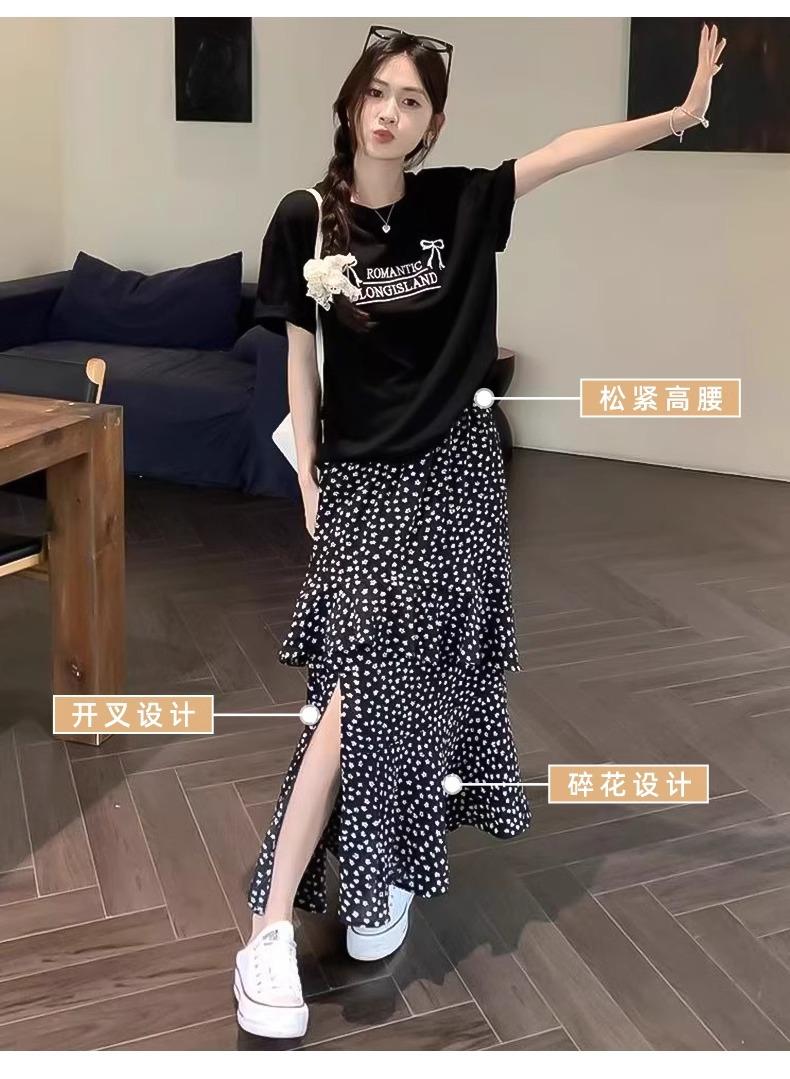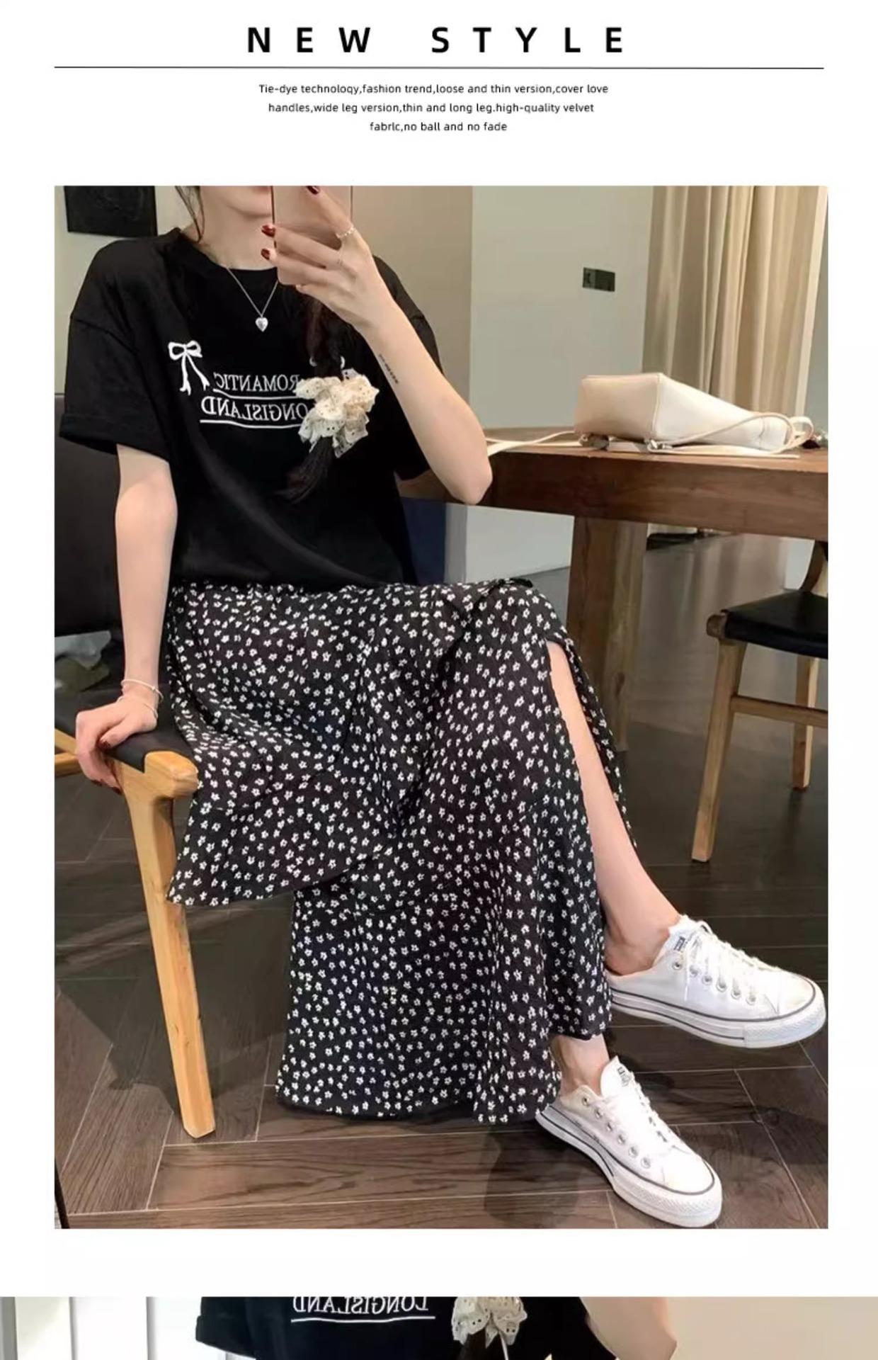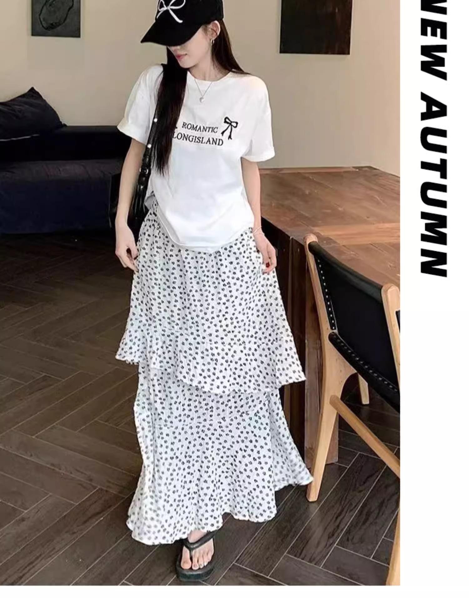 Falda Floral Vintage Estilo Coreano para Mujer 2025 Verano Nuevo Estilo Abertura Lateral Cintura Alta A-line Pastel Falda Larga
