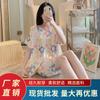 Traje Corto de Manga Corta de Seda de Hielo con Patrón de Hueso de Serpiente Estilo Europeo y Americano Verano Color Sólido Suelto Talla Grande Ropa de Hogar para Mujer Conjunto de Dos Piezas