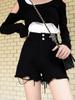 Shorts de Mezclilla Negros de Cintura Alta con Hebilla para Mujer Verano 2023 Nuevo Estilo Coreano Sueltos Adelgazantes Combinan con Todo Pierna Ancha Hot Pants