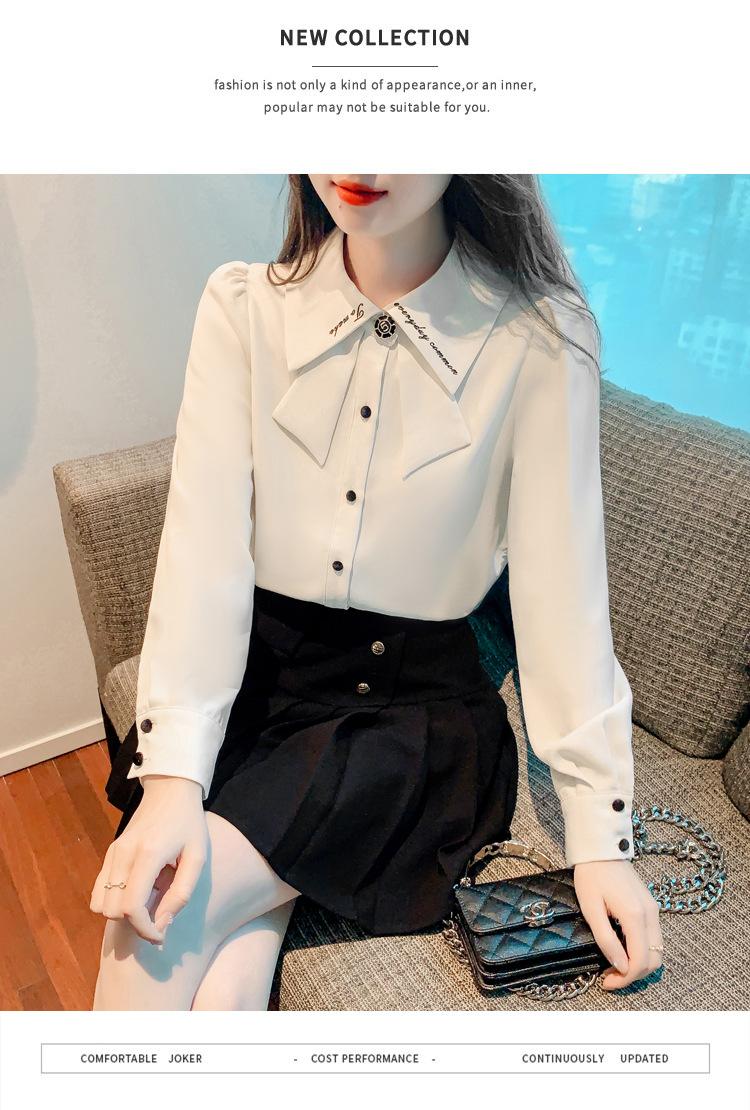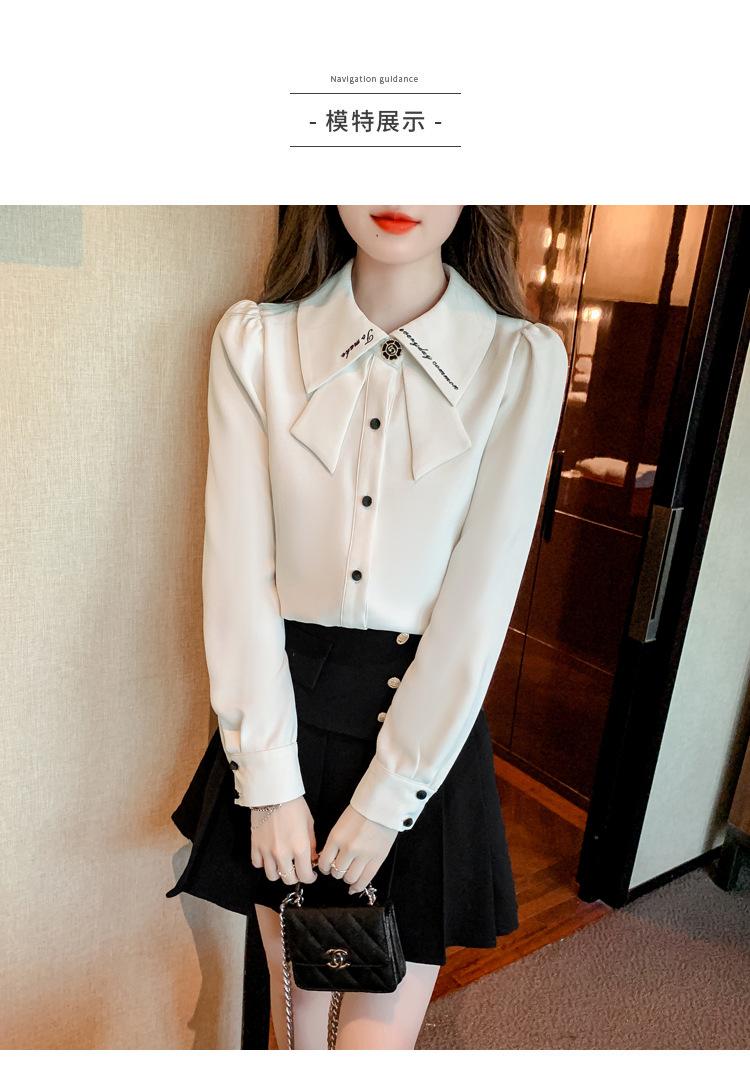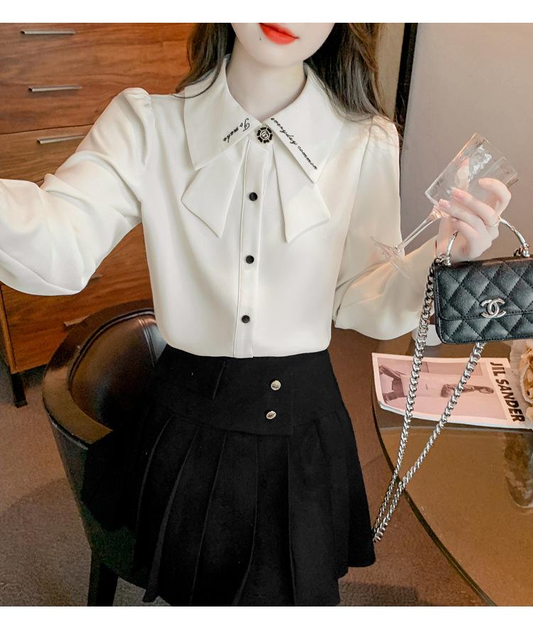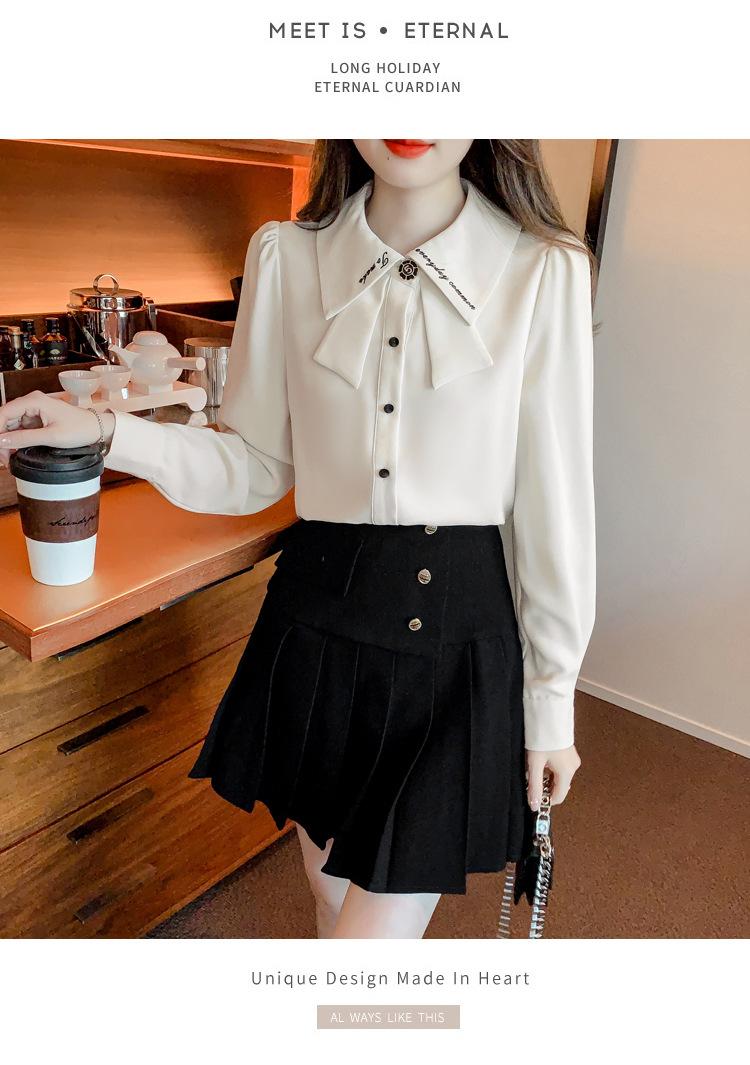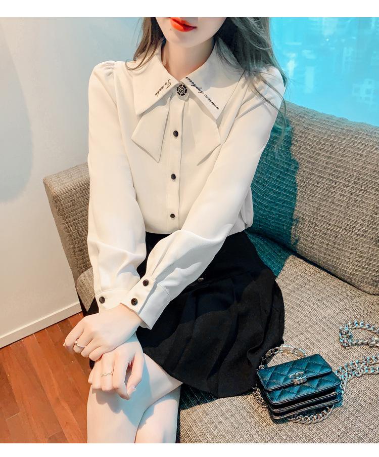 Nueva Camisa de Chifón de Manga Larga Chic Bordada Francesa en Forma de H Camisa Nicho de Alta Gama
