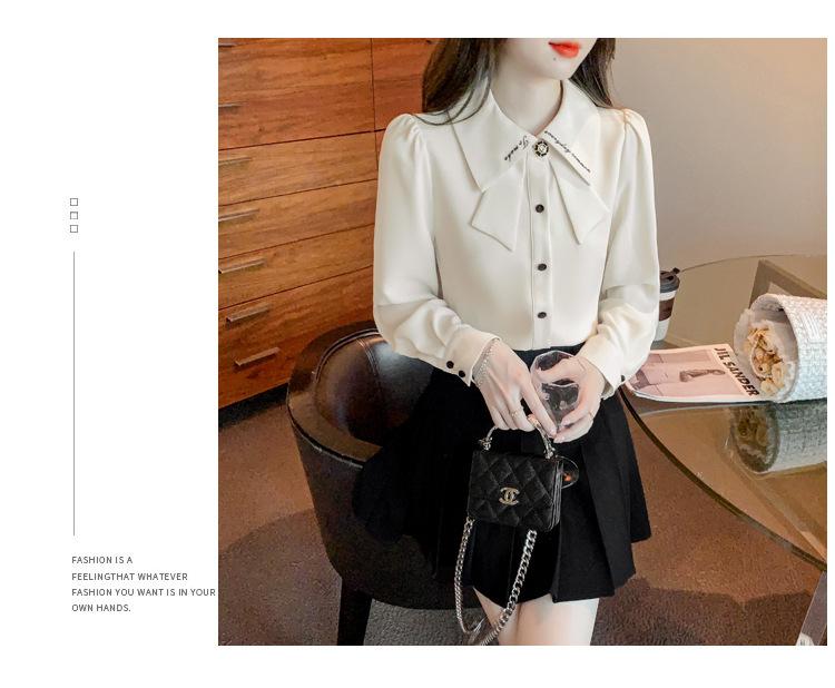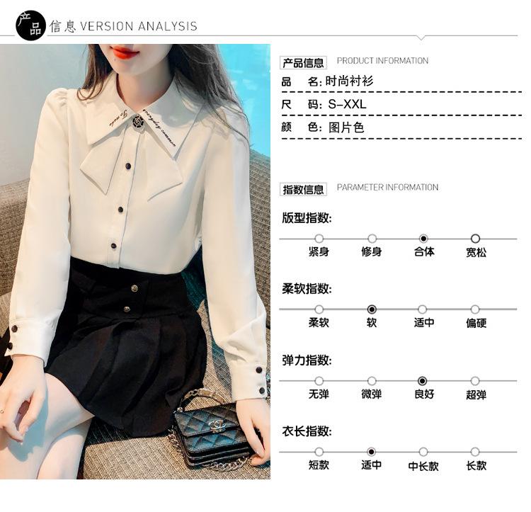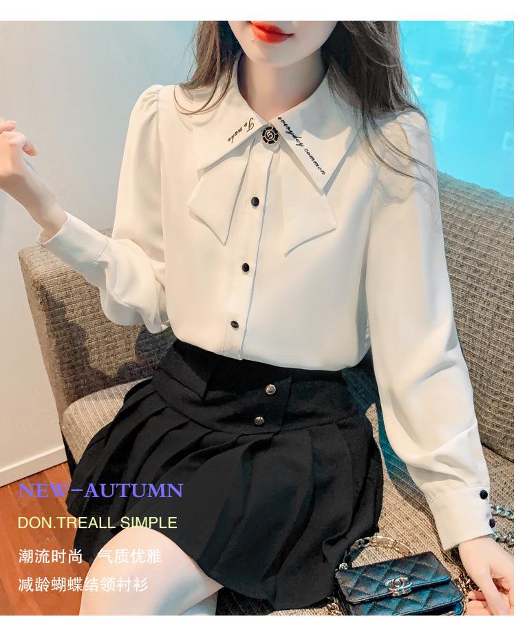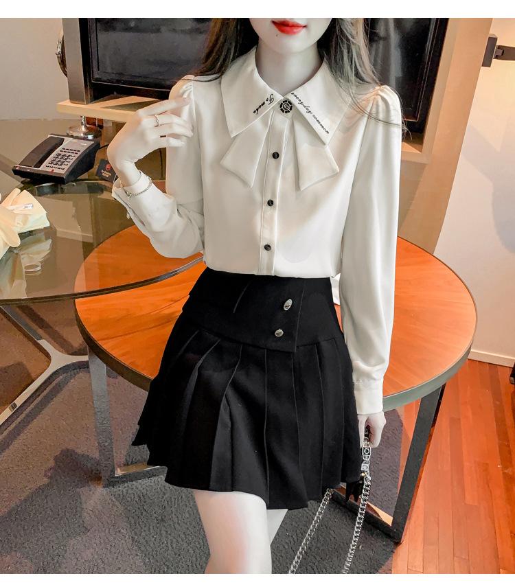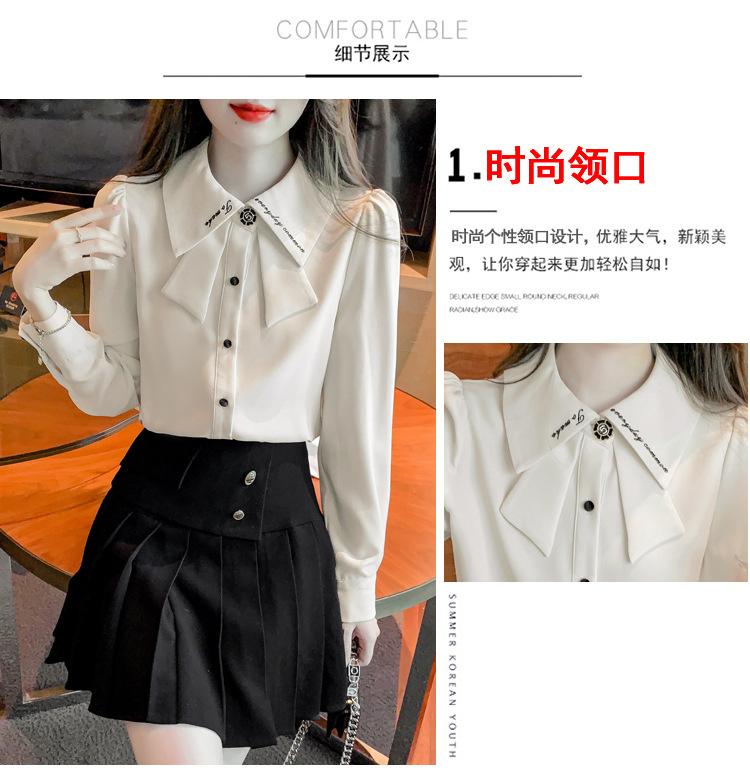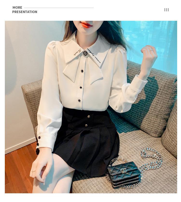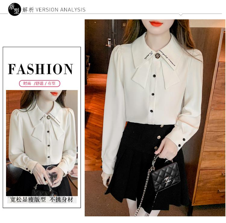 Nueva Camisa de Chifón de Manga Larga Chic Bordada Francesa en Forma de H Camisa Nicho de Alta Gama