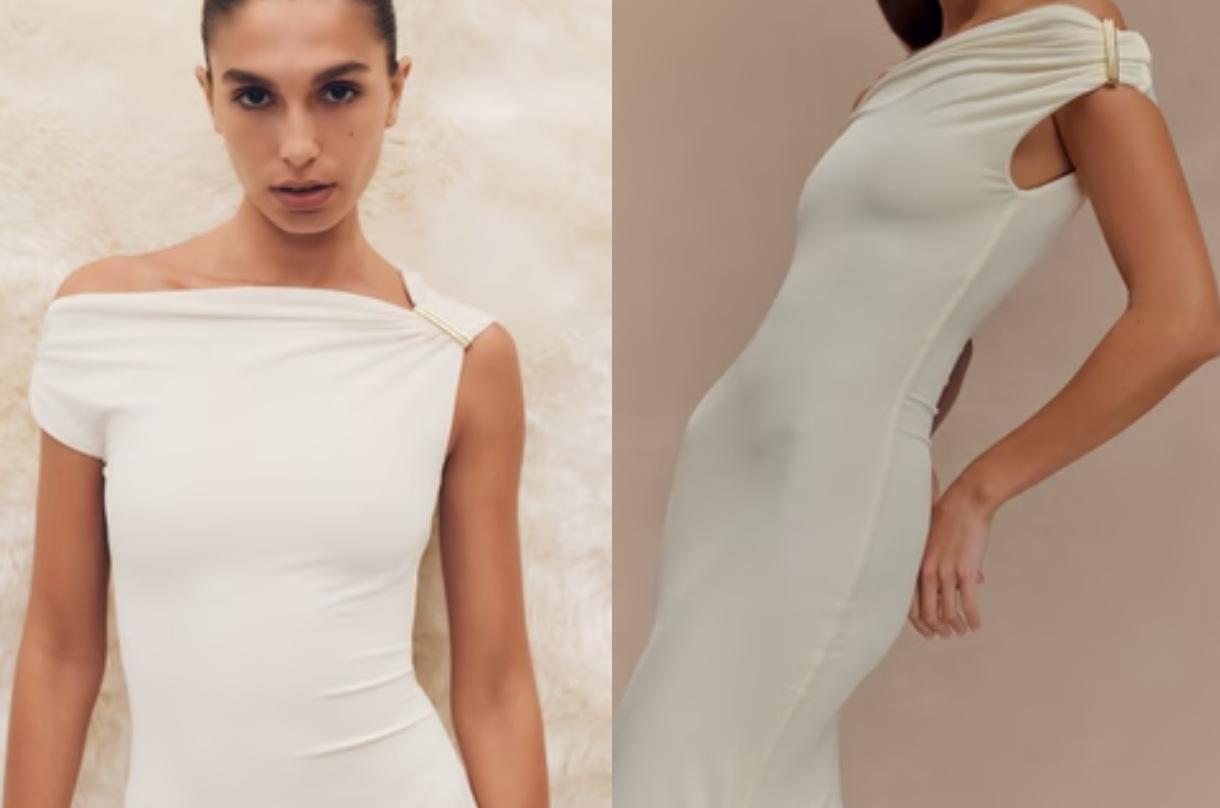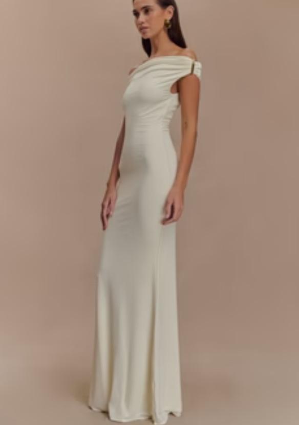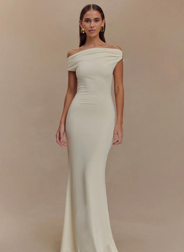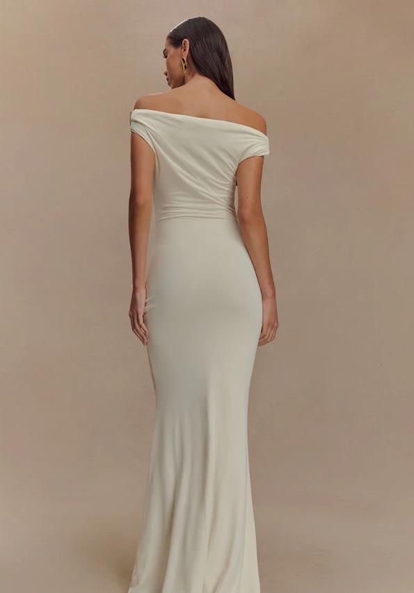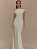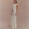 Vestido de Noche Elegante Blanco Slim Europeo y Americano Vestido con Hombros Descubiertos Vestido de Noche Delicado Adelgazante Venta al por Mayor