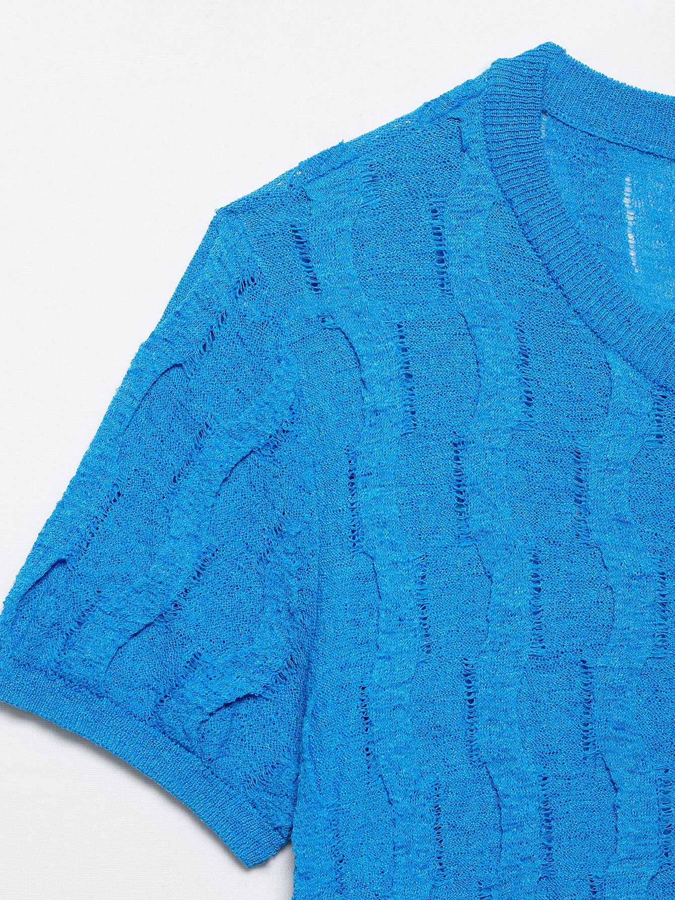 Exportación Transfronteriza de Aliexpress Ropa Europea y Americana 2025 Primavera Nuevo Casual Trenzado con Giro Manga Corta Cuello Redondo Tejido de Punto