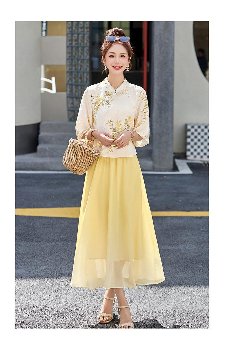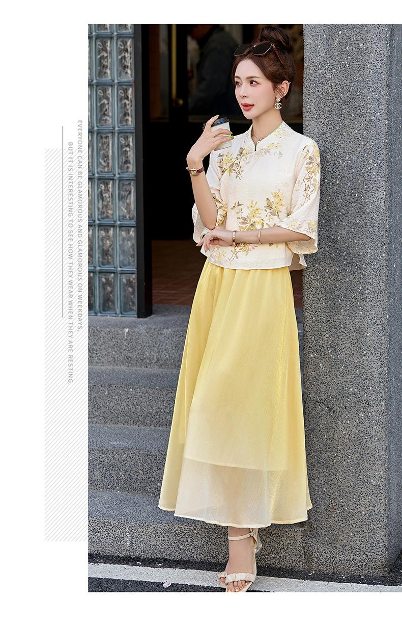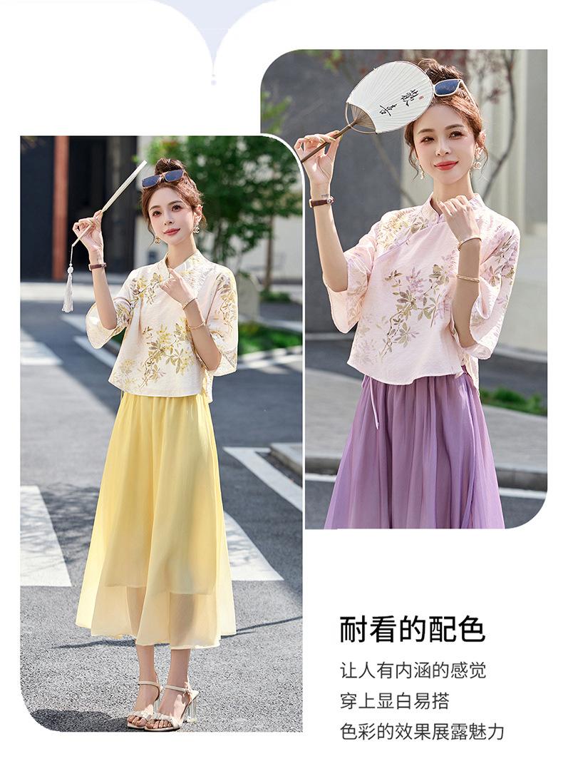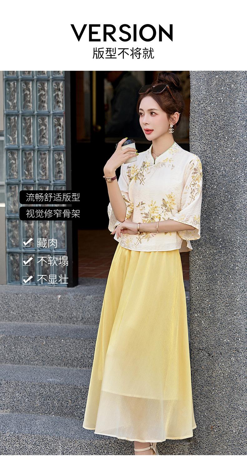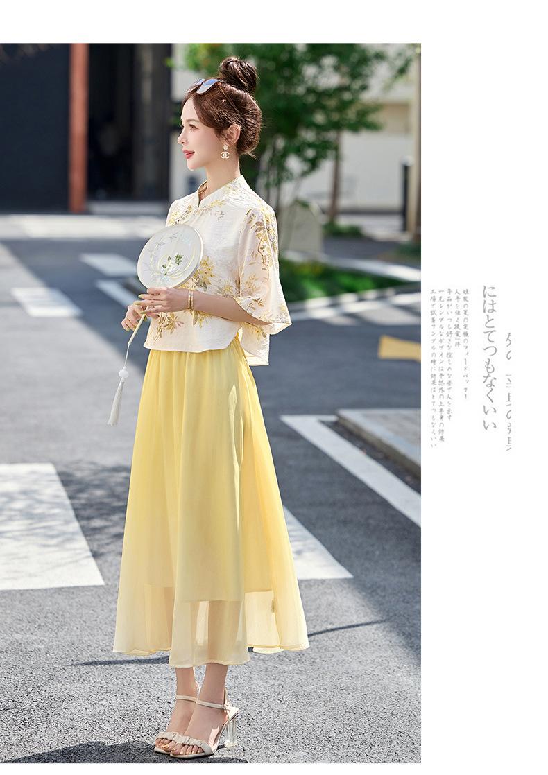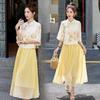 2025 Verano Nuevo Moda China Reductor de Edad Estilo Nacional Retro Bordado Cuello Mao Abotonado Top y Falda Conjunto de Dos Piezas Trendy