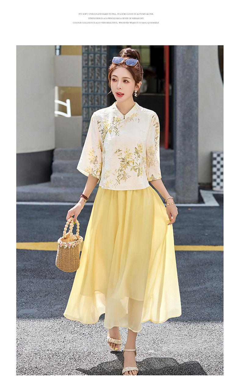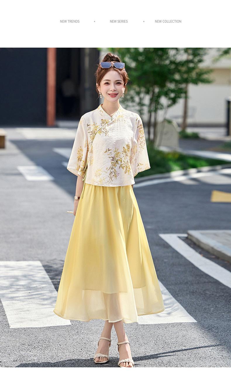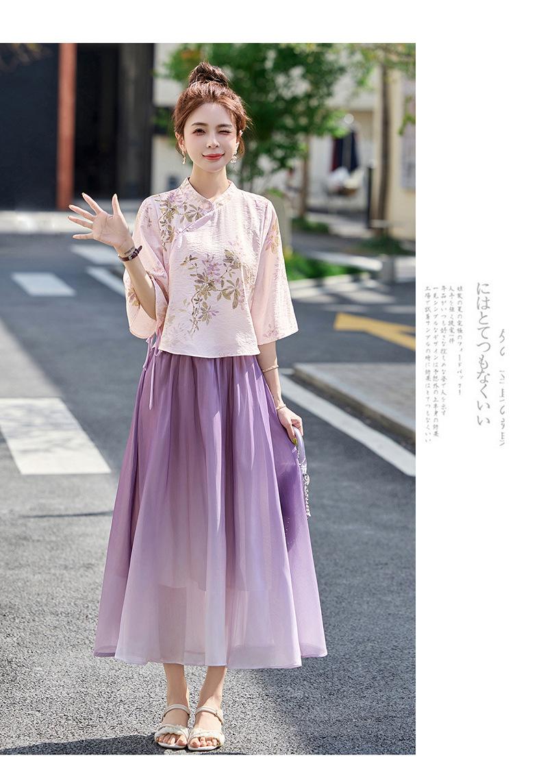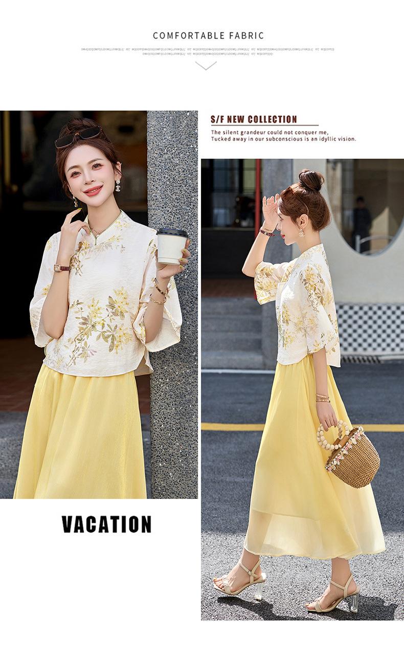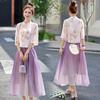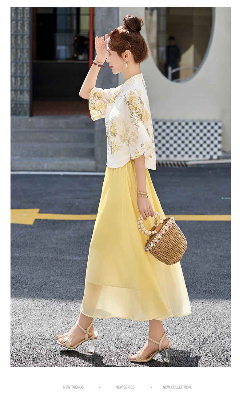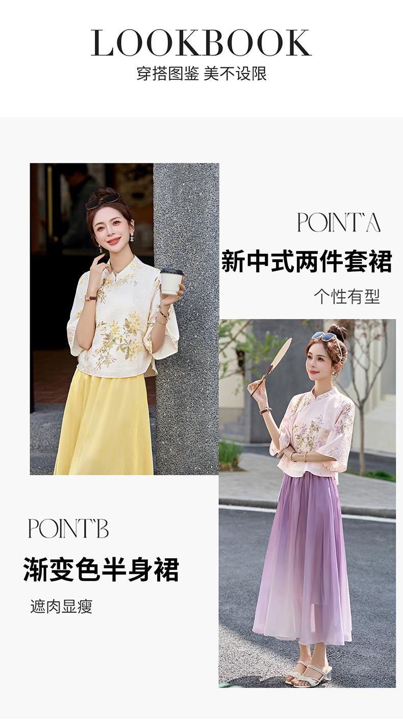 2025 Verano Nuevo Moda China Reductor de Edad Estilo Nacional Retro Bordado Cuello Mao Abotonado Top y Falda Conjunto de Dos Piezas Trendy