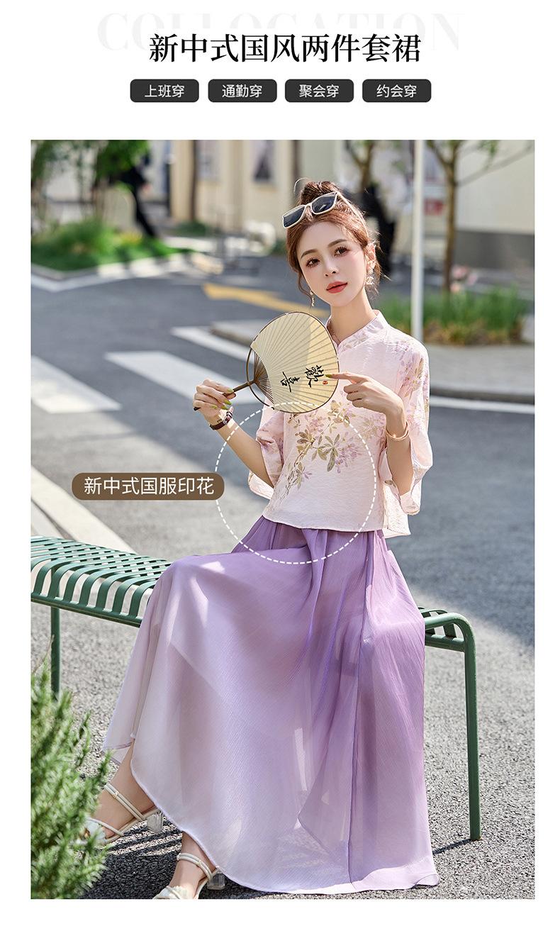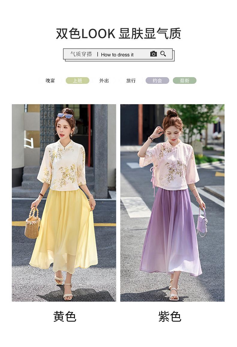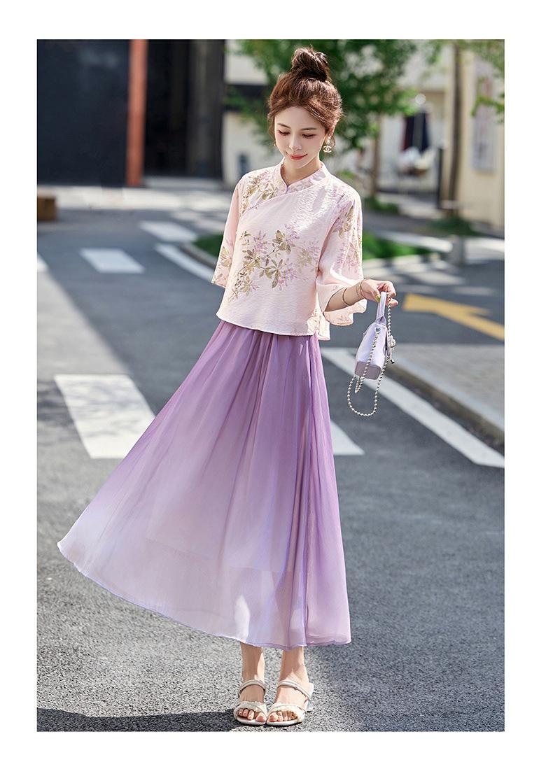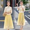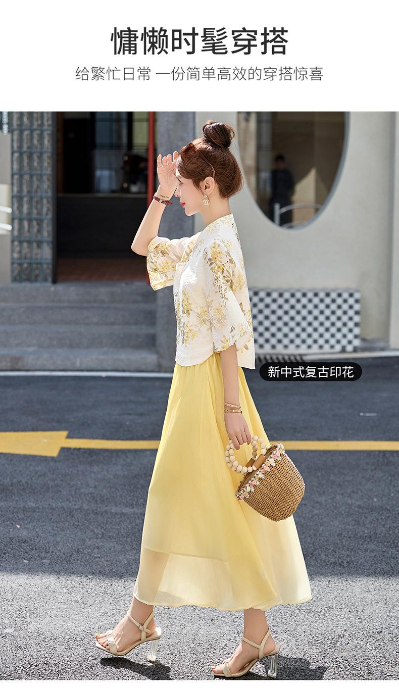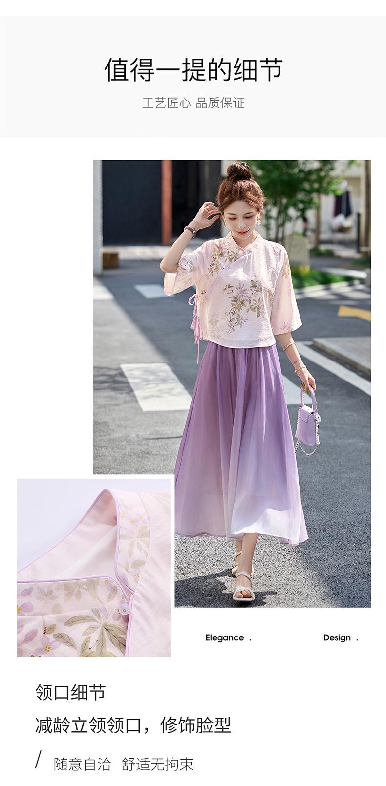 2025 Verano Nuevo Moda China Reductor de Edad Estilo Nacional Retro Bordado Cuello Mao Abotonado Top y Falda Conjunto de Dos Piezas Trendy