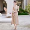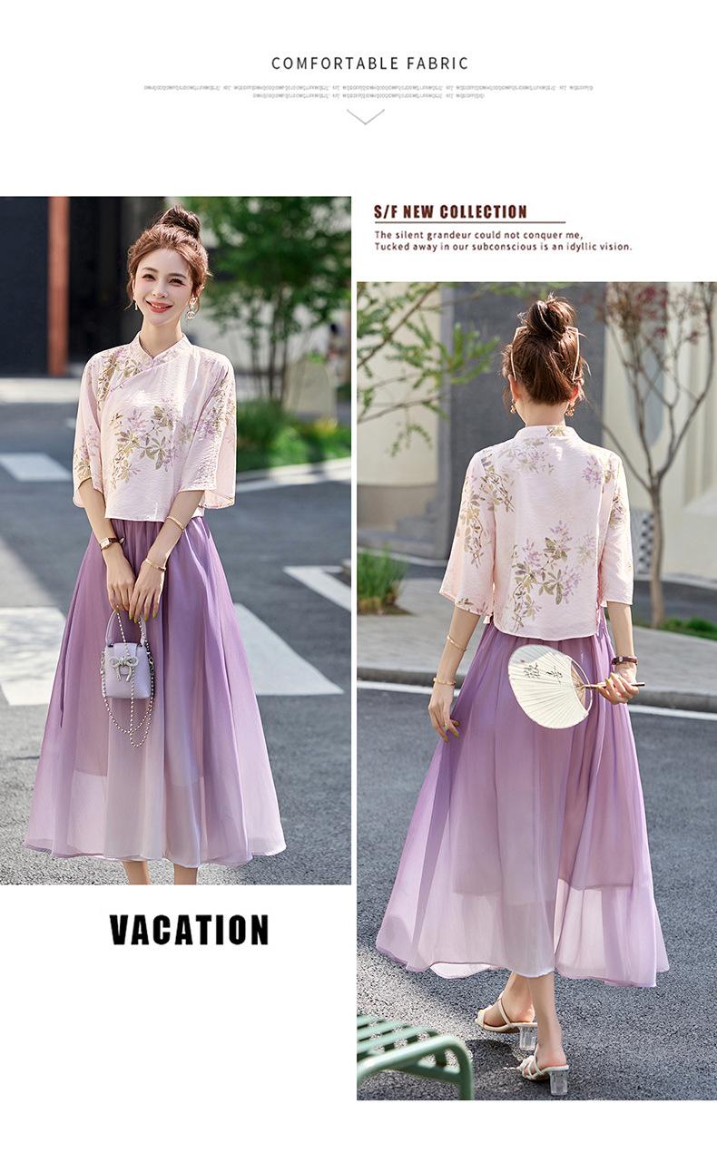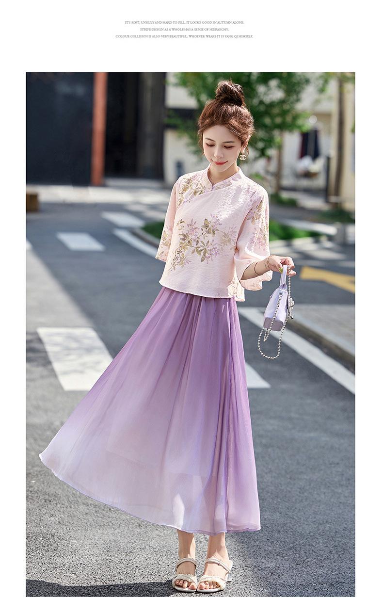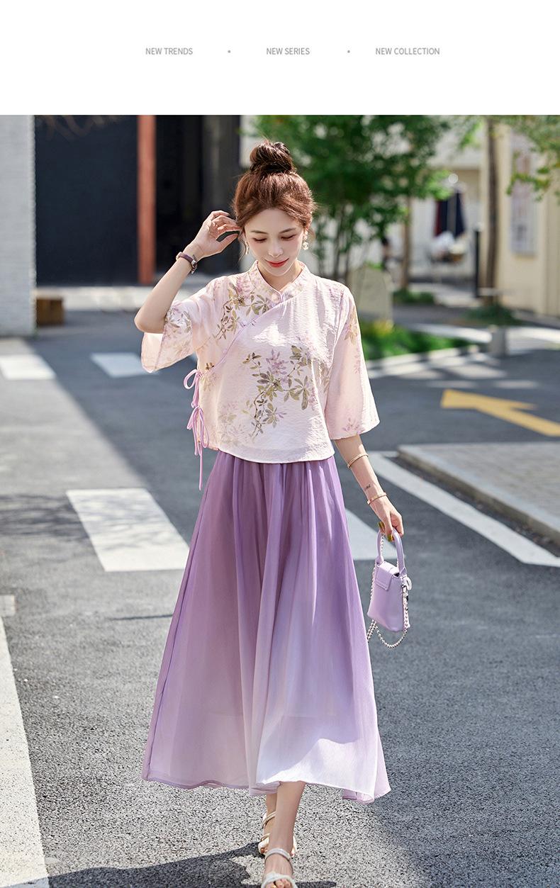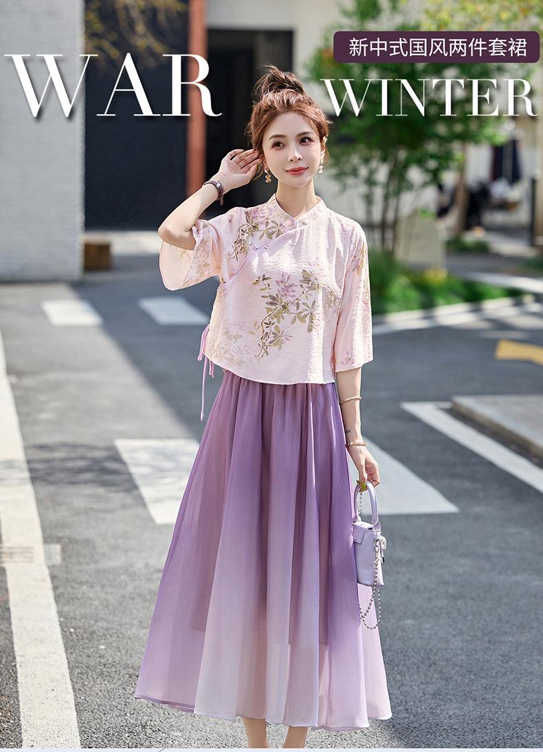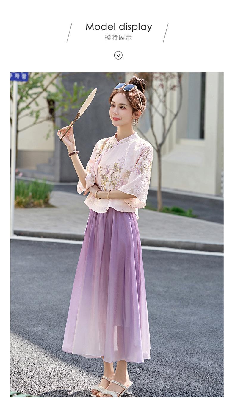 2025 Verano Nuevo Moda China Reductor de Edad Estilo Nacional Retro Bordado Cuello Mao Abotonado Top y Falda Conjunto de Dos Piezas Trendy