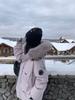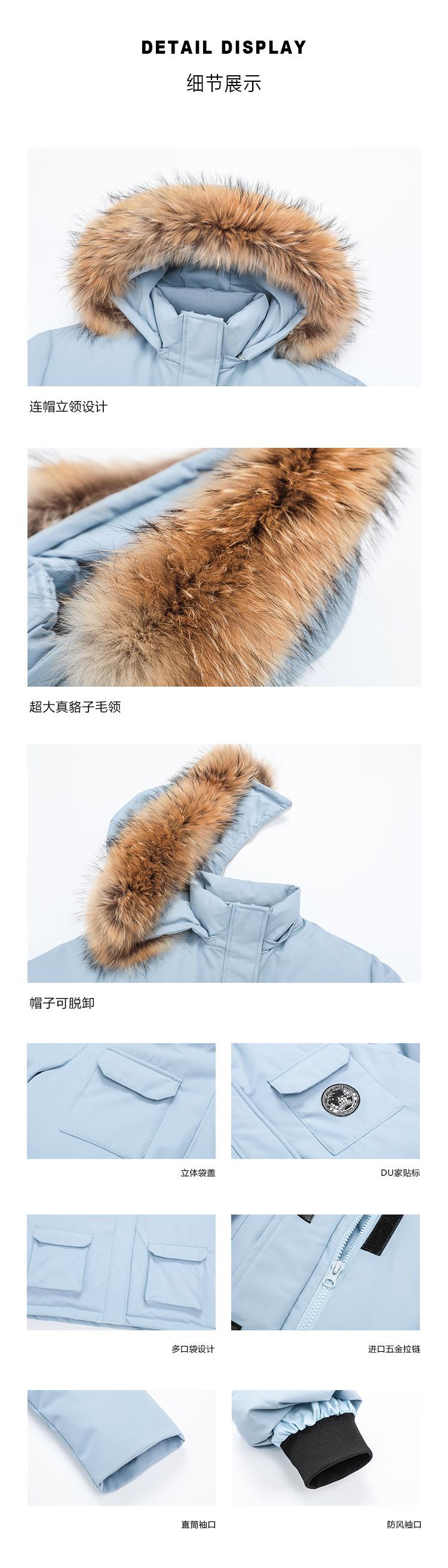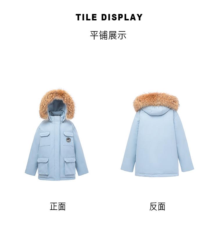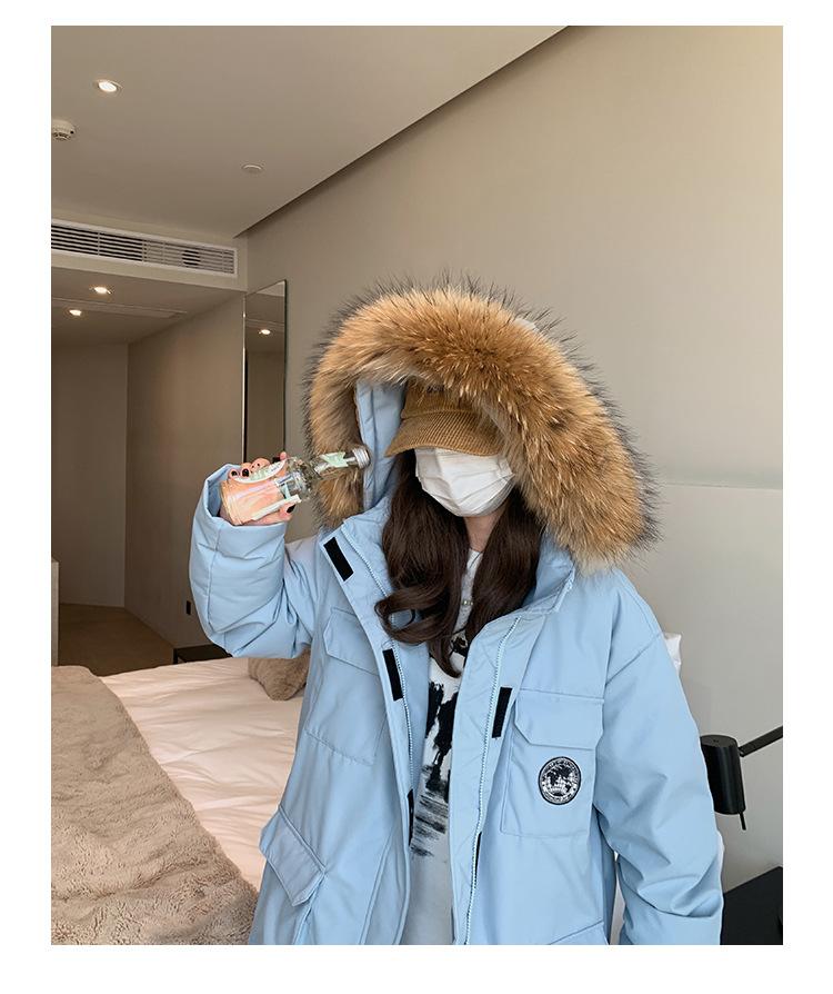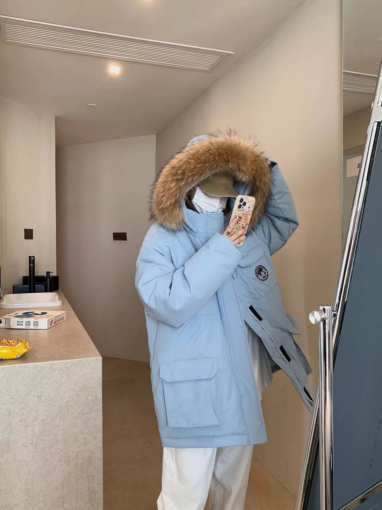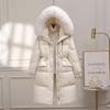 Chamarra de plumón azul de trabajo para mujer, Largo medio, Nuevo estilo Invierno 2025, Plumón de pato blanco, Parka con cuello de piel grande, Abrigo para pareja