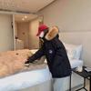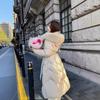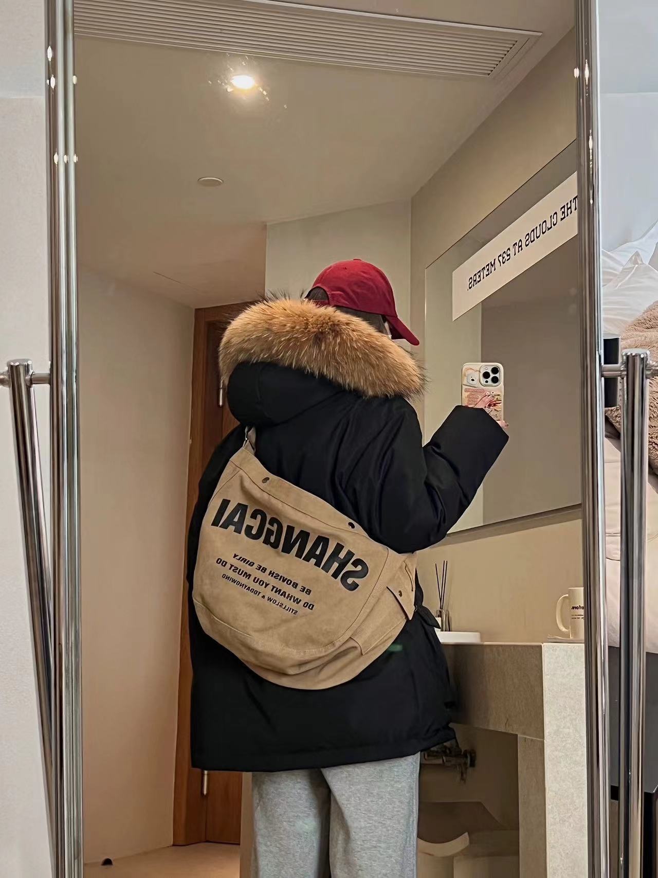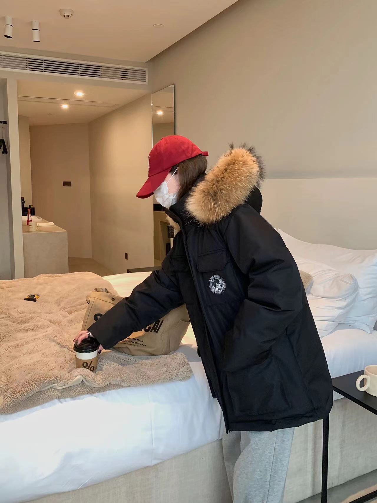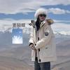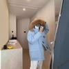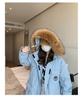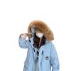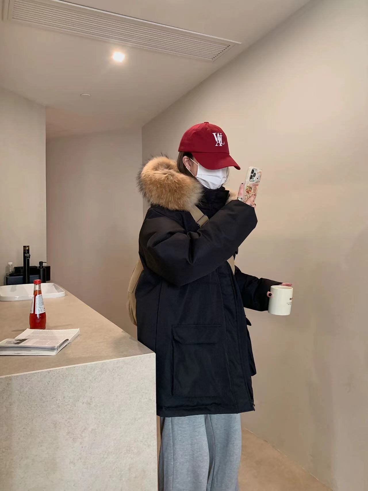 Chamarra de plumón azul de trabajo para mujer, Largo medio, Nuevo estilo Invierno 2025, Plumón de pato blanco, Parka con cuello de piel grande, Abrigo para pareja