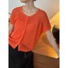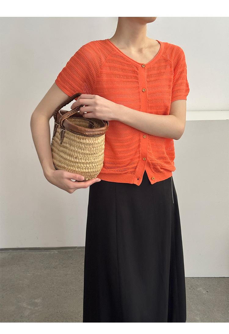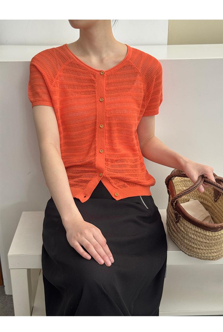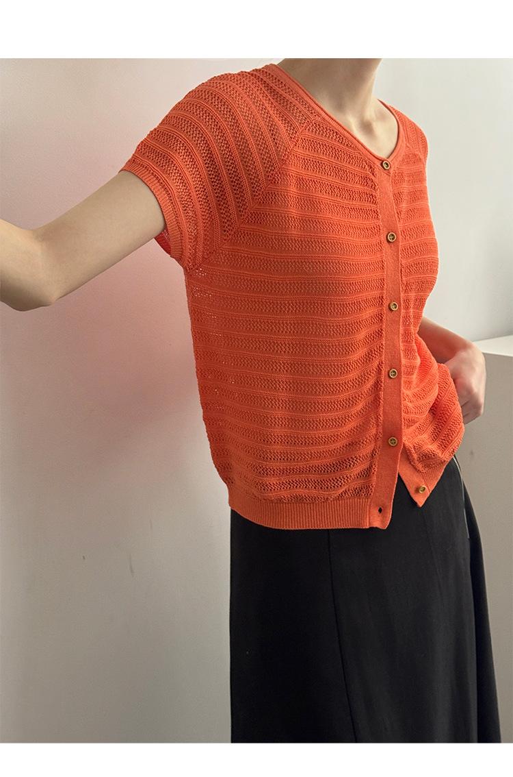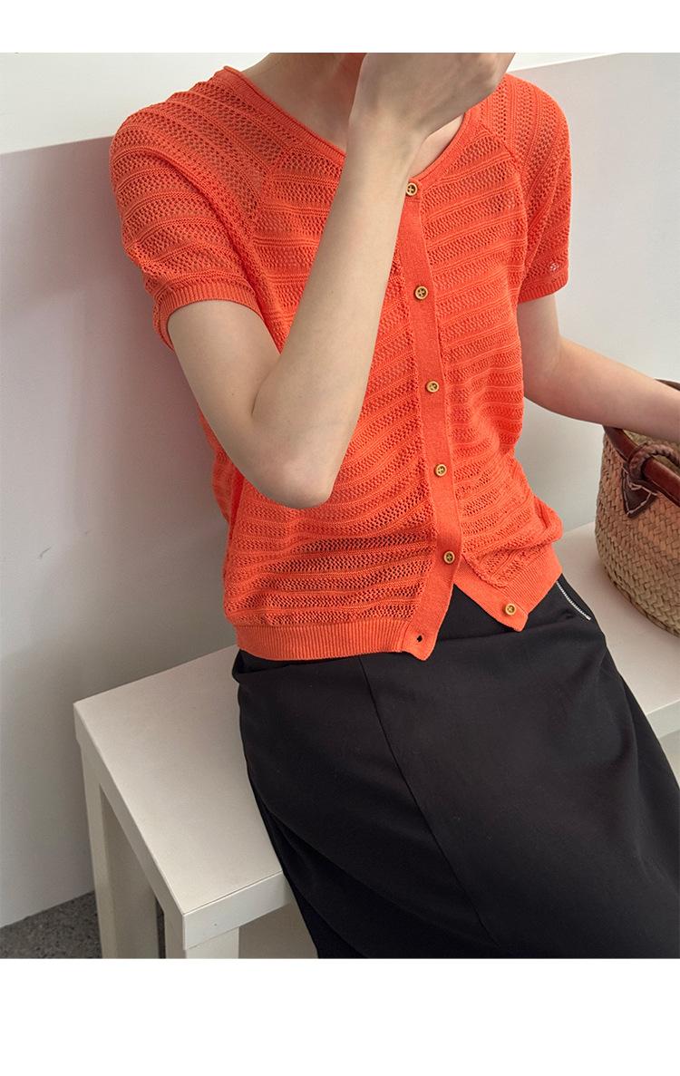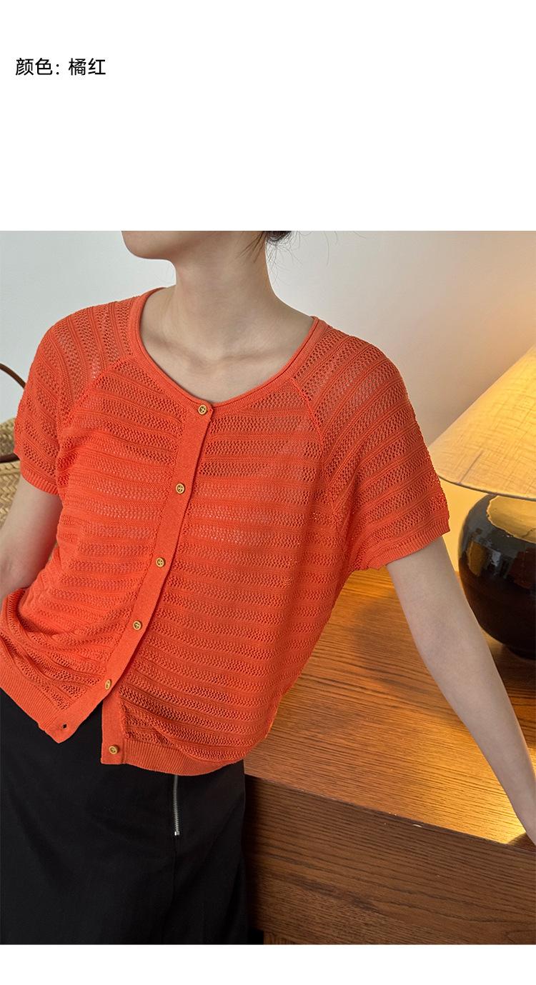 [Bienestar en Polvo para Mascotas] Suéter Clásico de Punto Calado con Cuello Redondo para Mujer, Nuevo Cárdigan Ligero de Un Solo Botón, Top 21672