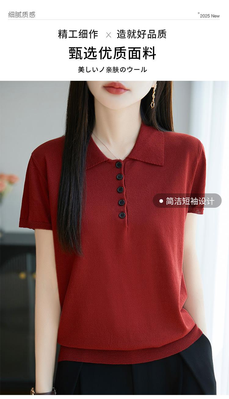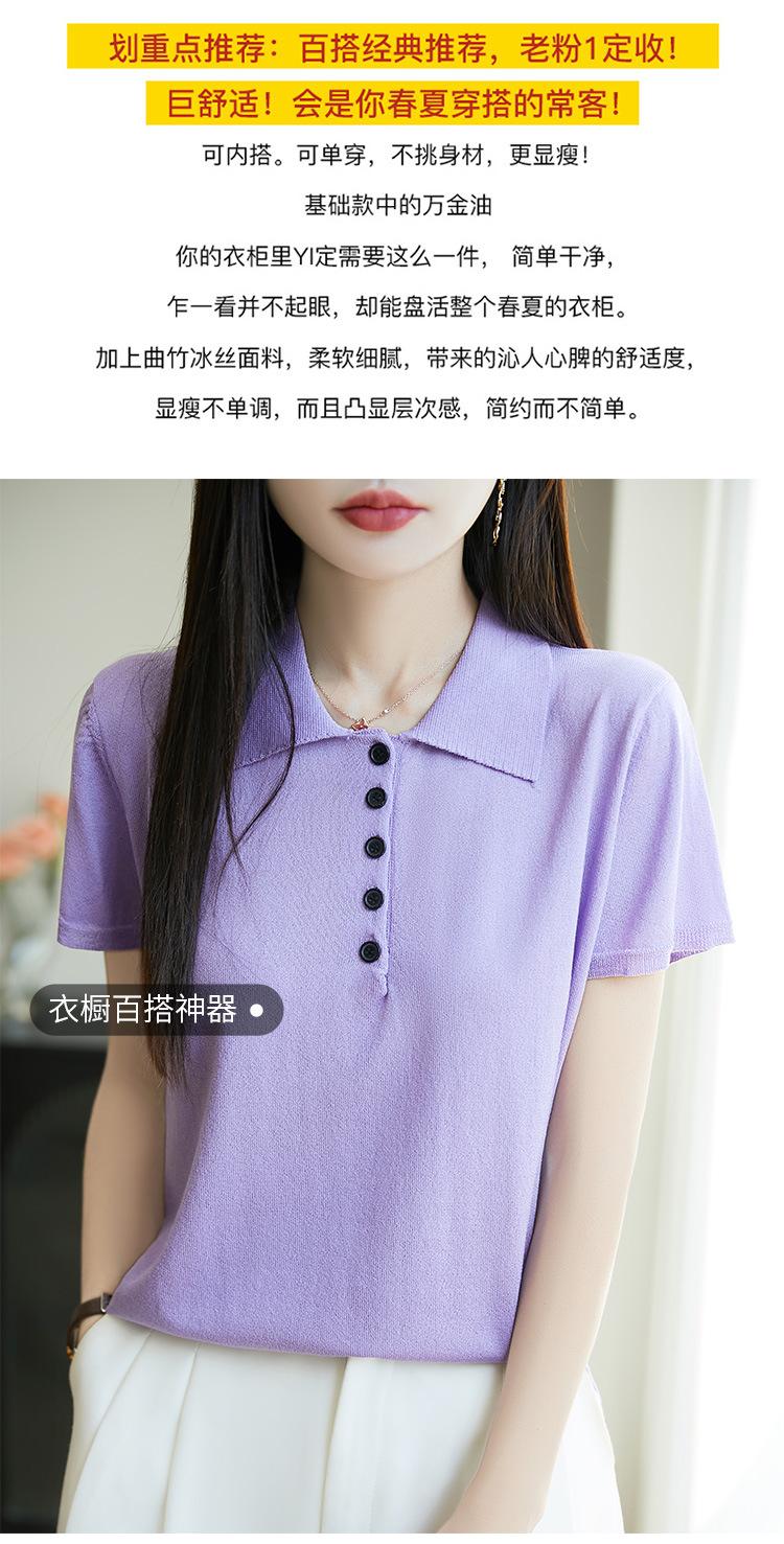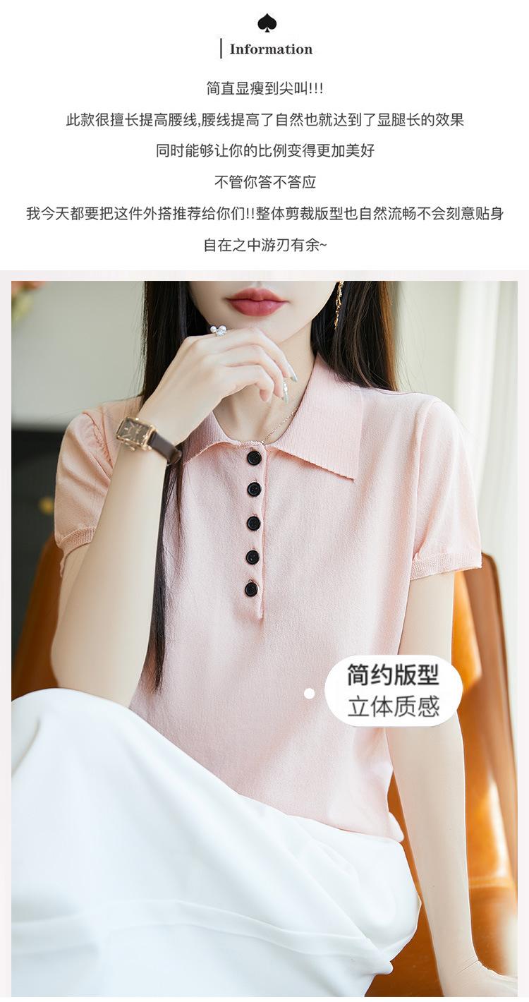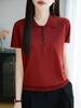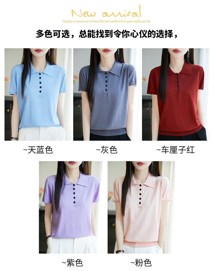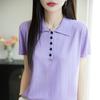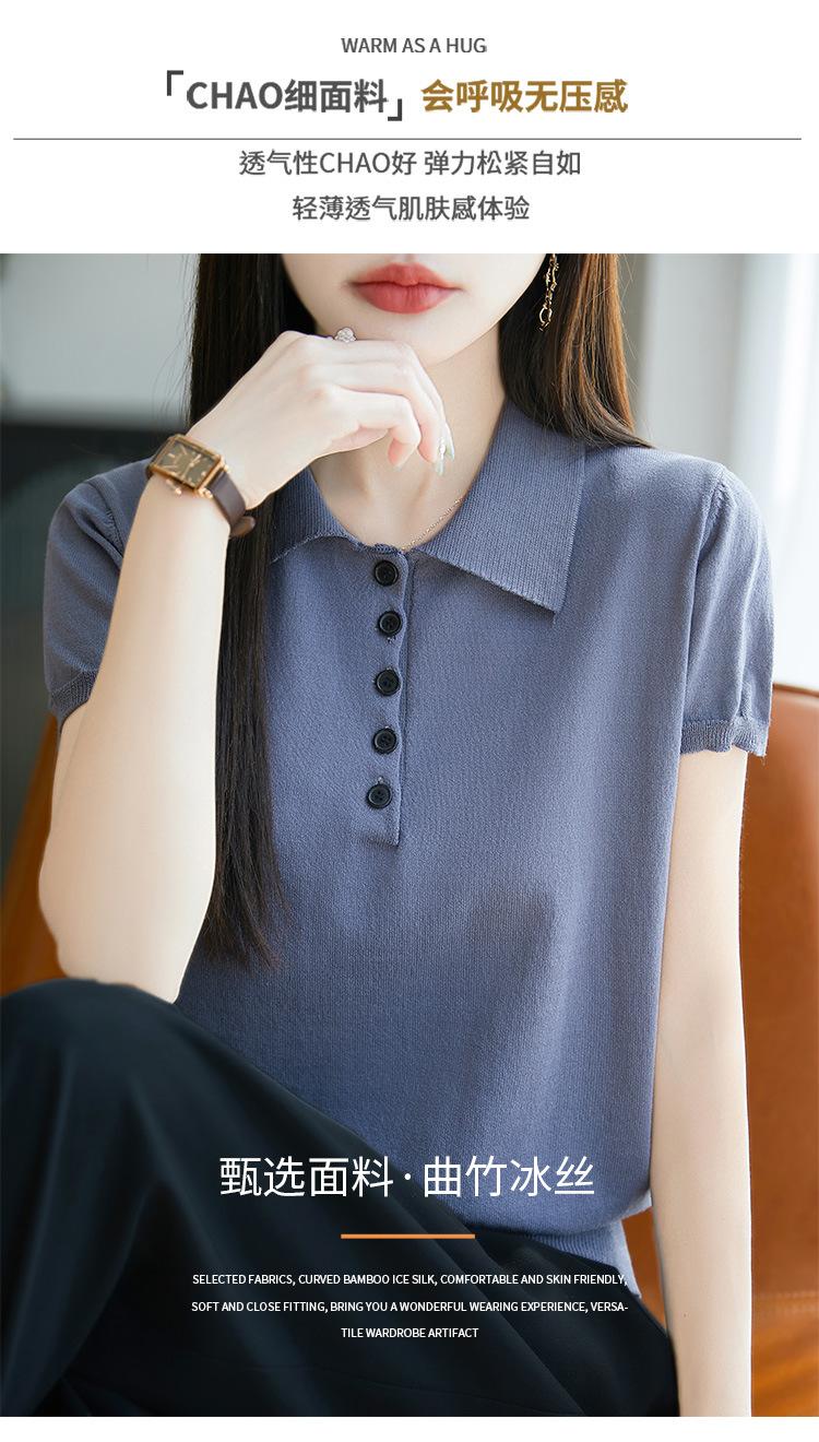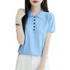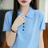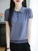 POLO solapa tejido manga corta para mujer 2025 verano nuevo Quzhu seda de hielo camisa base delgada top peinado camiseta