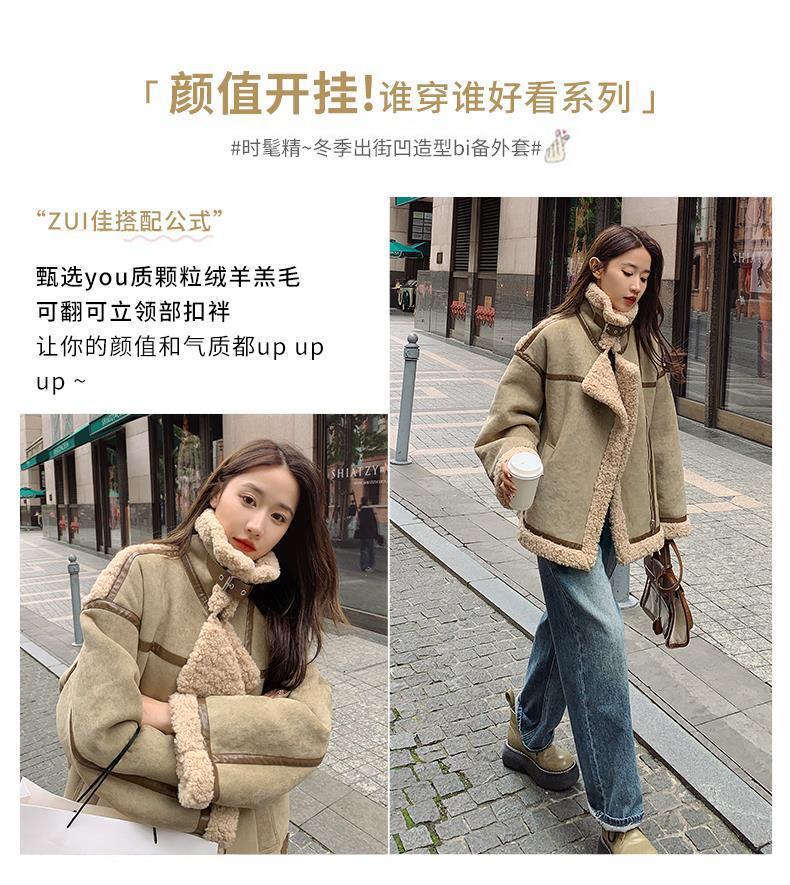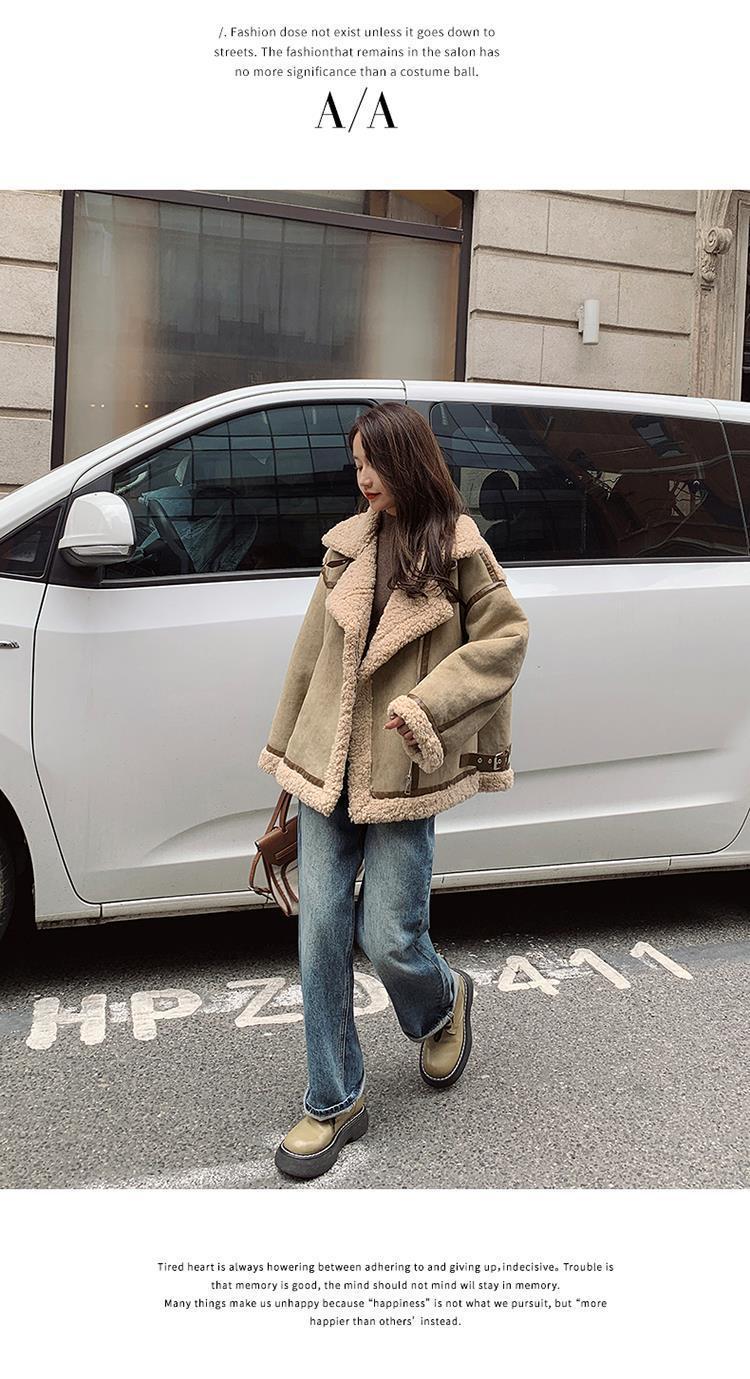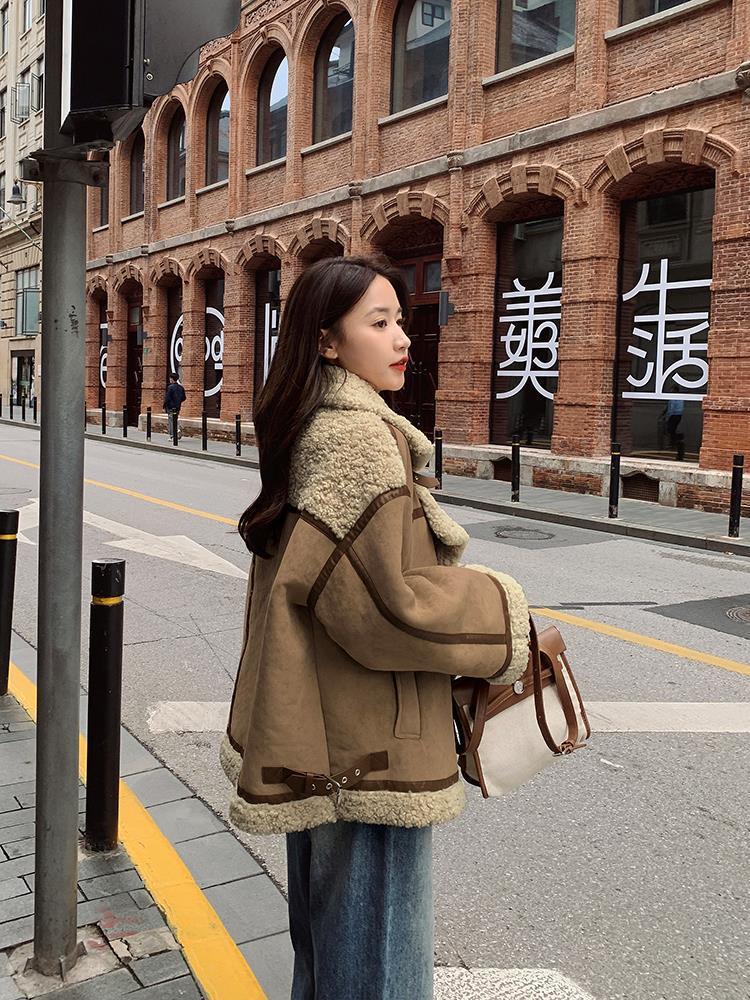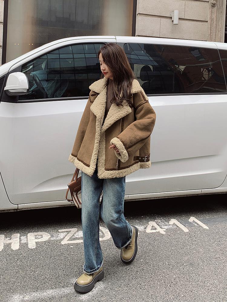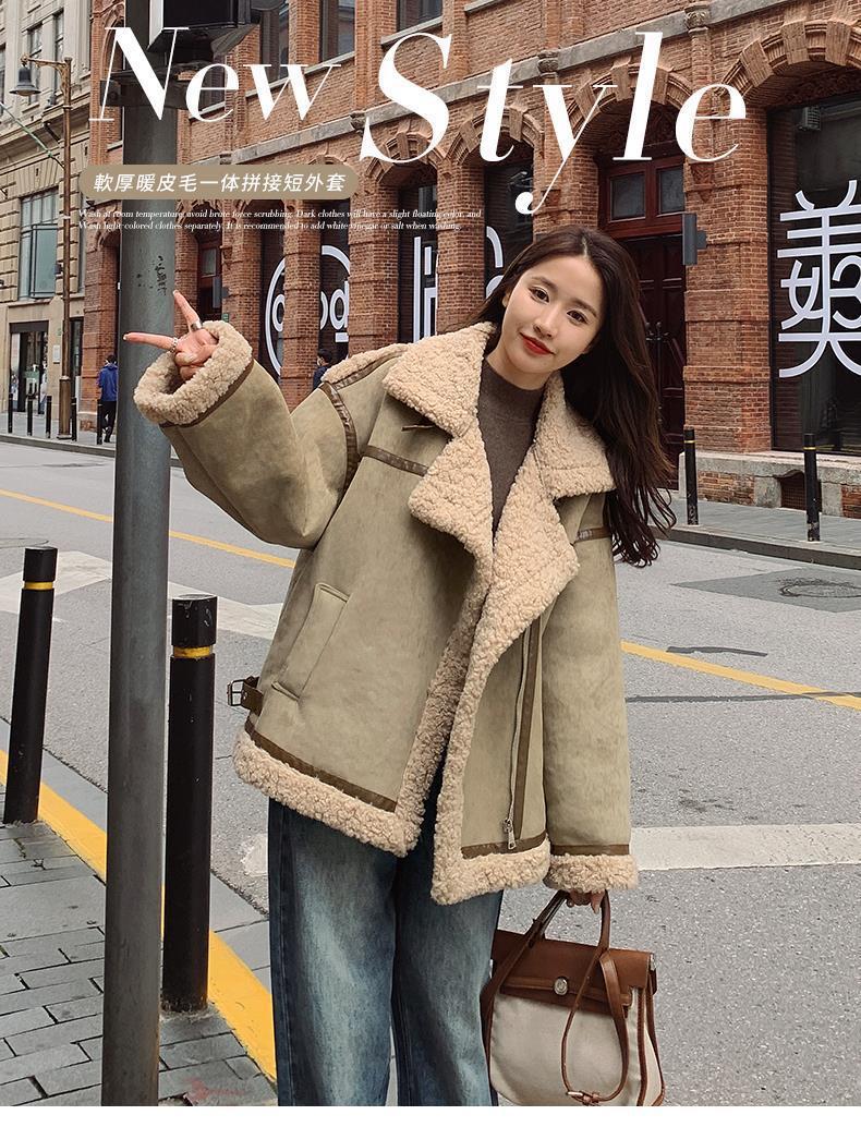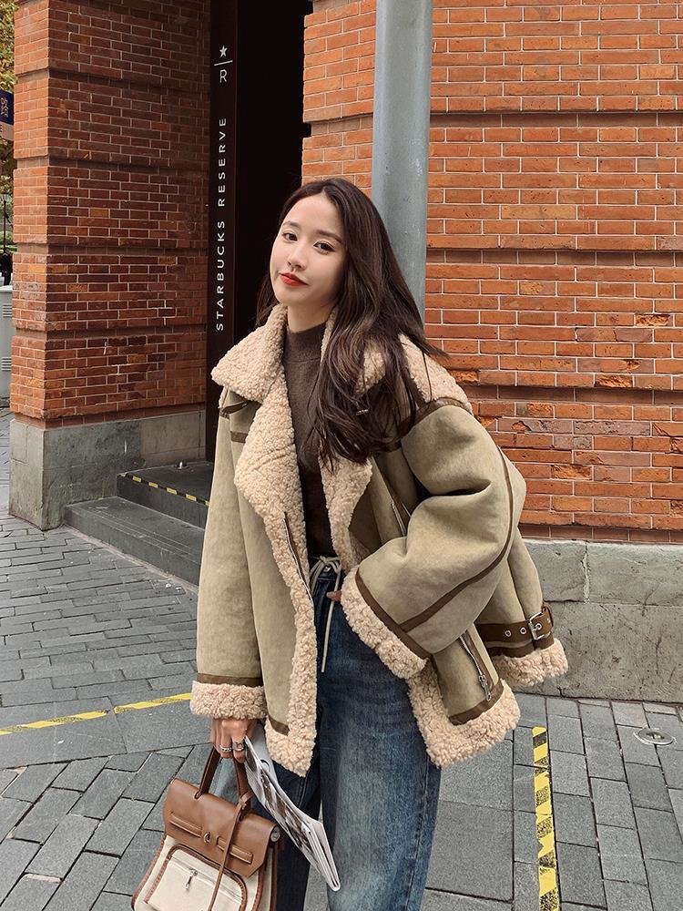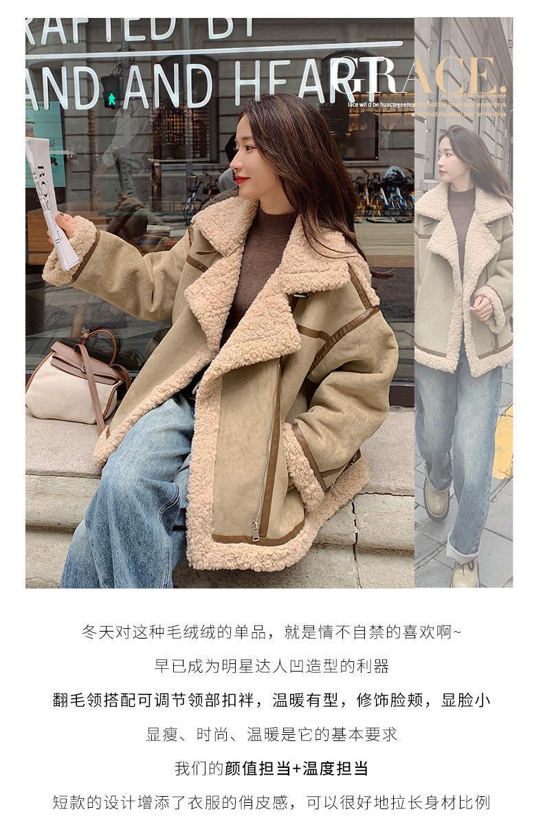 Chaqueta de Cachemira de Alta Gama para Mujer 2023 Invierno Nuevo Holgado Piel Todo en Uno Chaqueta de Motociclista Exterior de Algodón Corto Engrosado