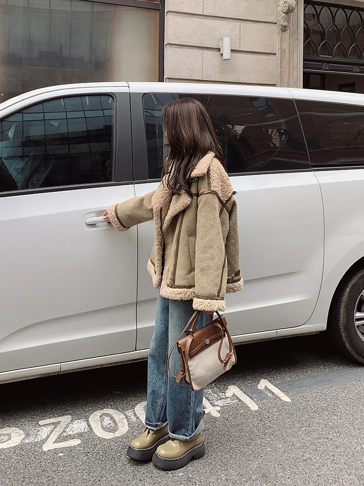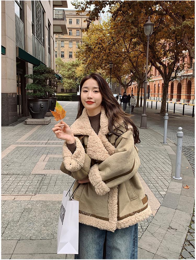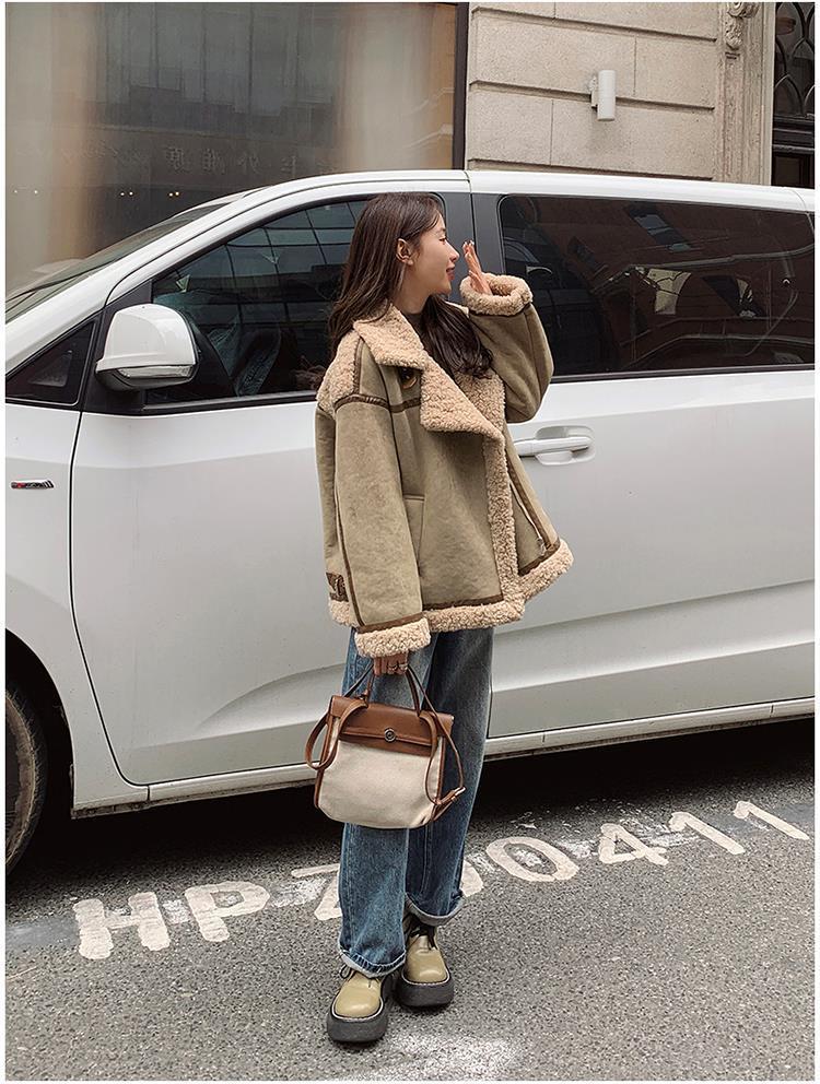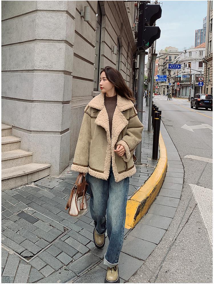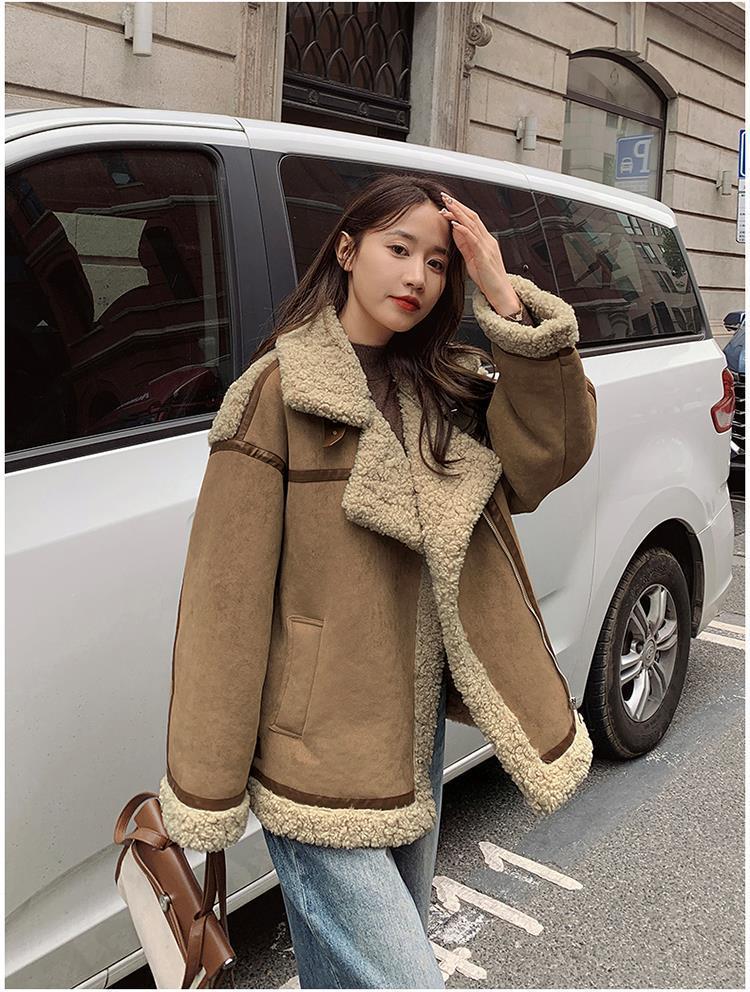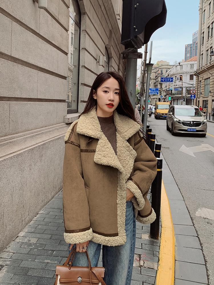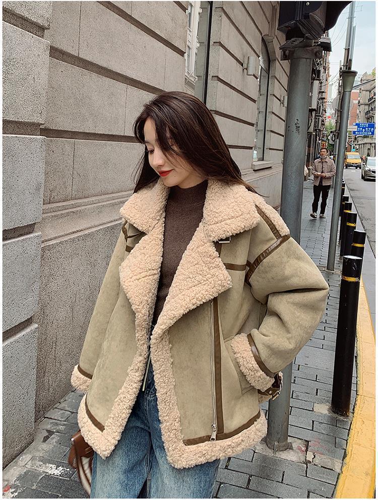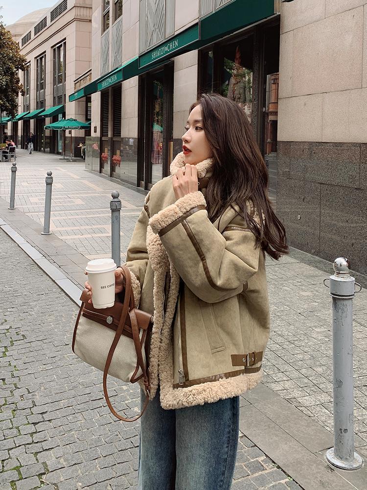 Chaqueta de Cachemira de Alta Gama para Mujer 2023 Invierno Nuevo Holgado Piel Todo en Uno Chaqueta de Motociclista Exterior de Algodón Corto Engrosado