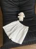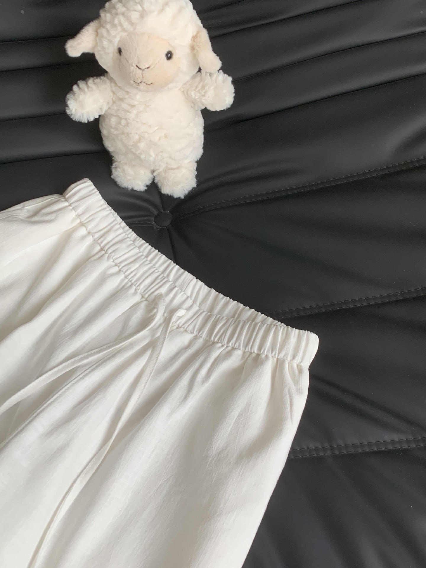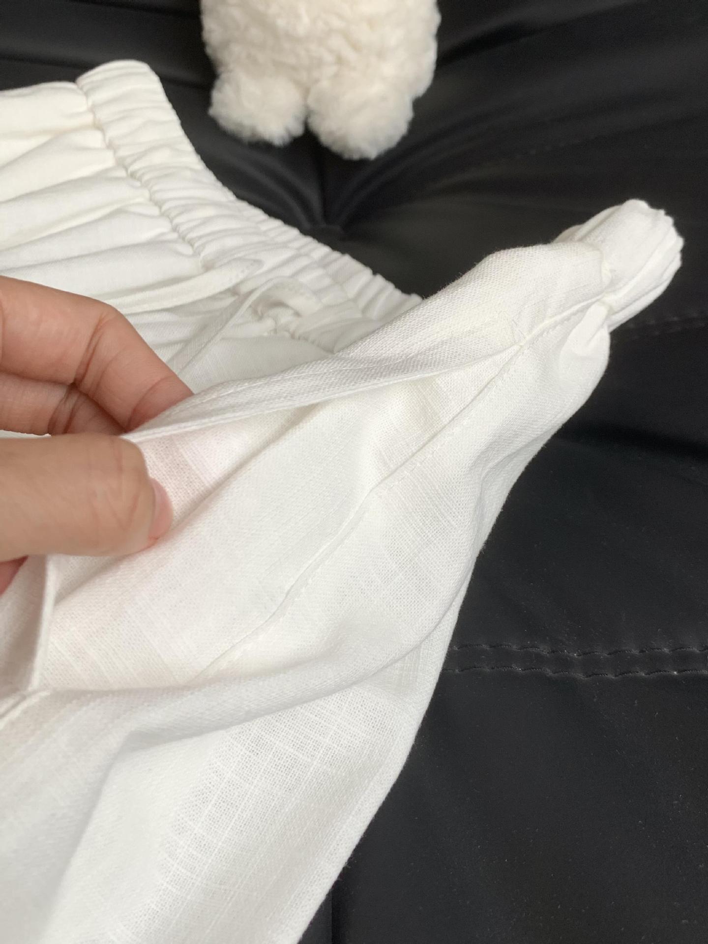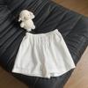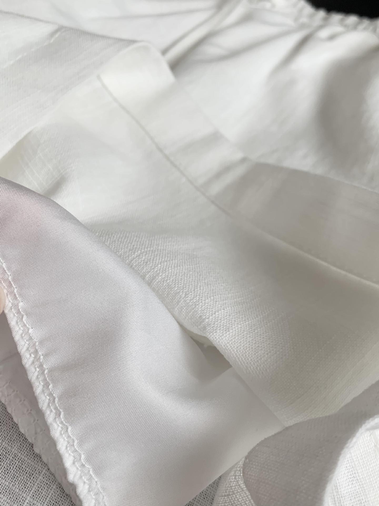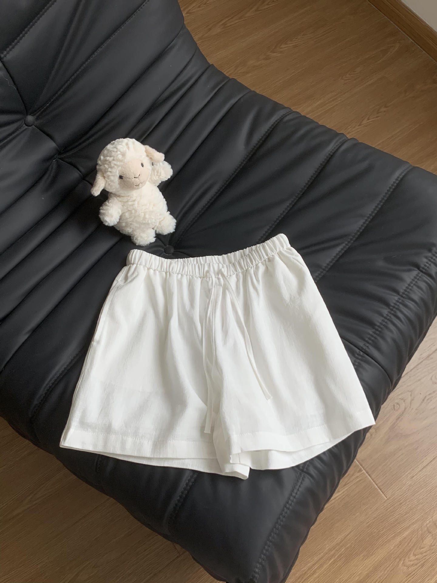 Shorts blancos sueltos y sencillos de lino fino con cintura elástica, versátiles y favorecedores.