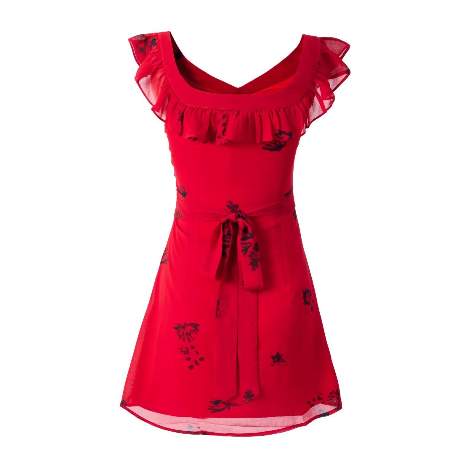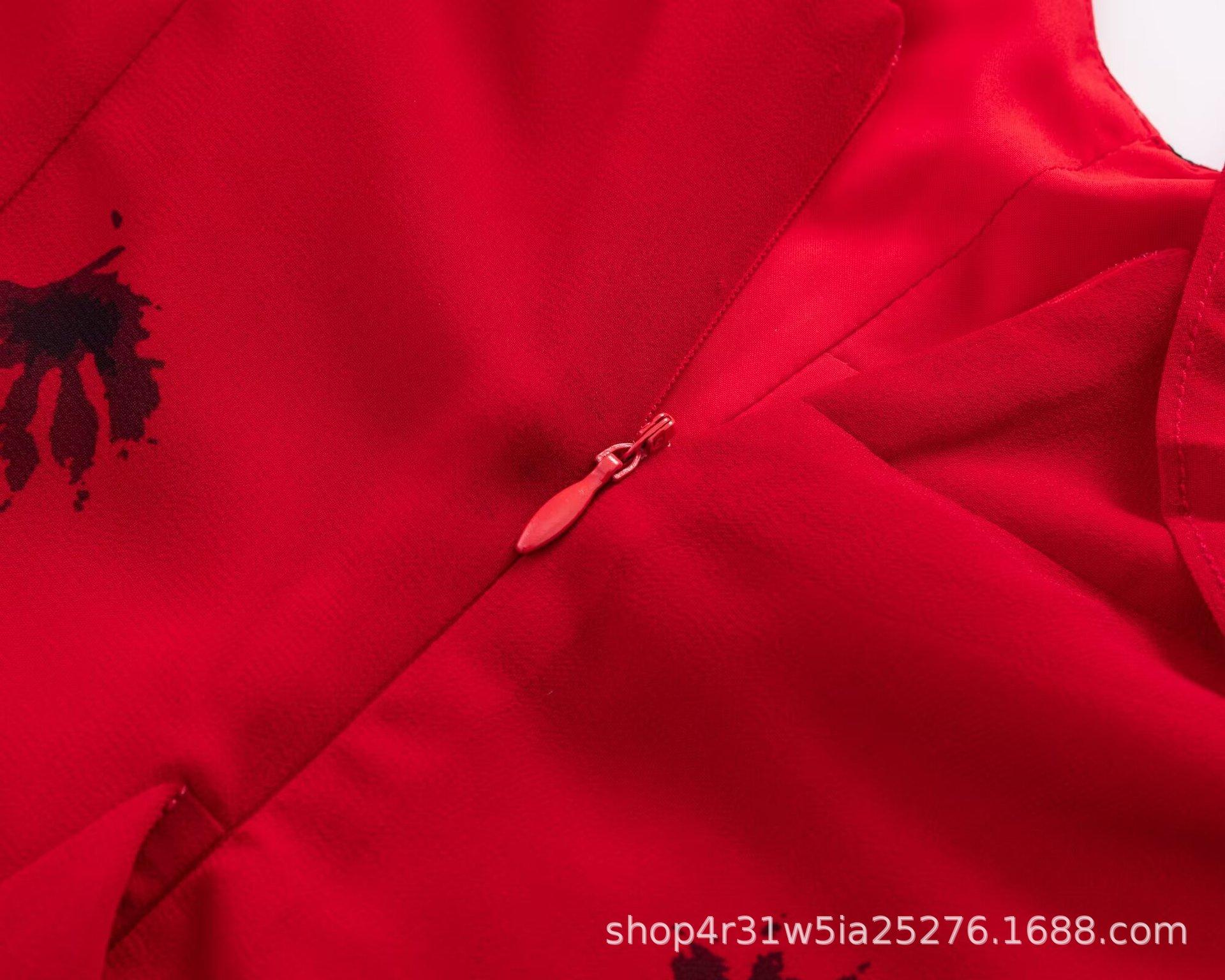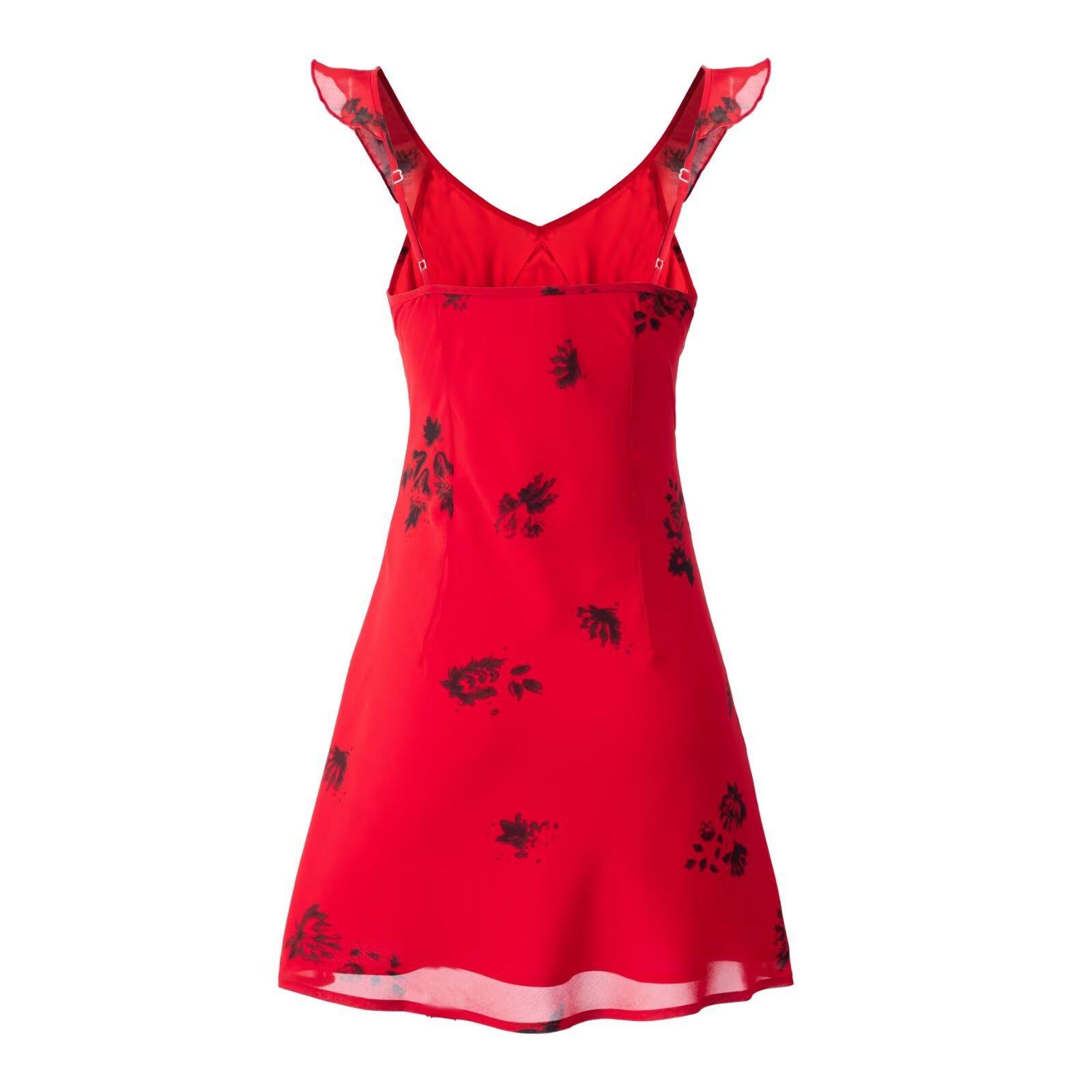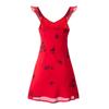2025 Principios de Primavera Nuevo Vestido Francés Dulce Sexy Cintura Adelgazante Look Corto con Volantes Estampado