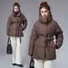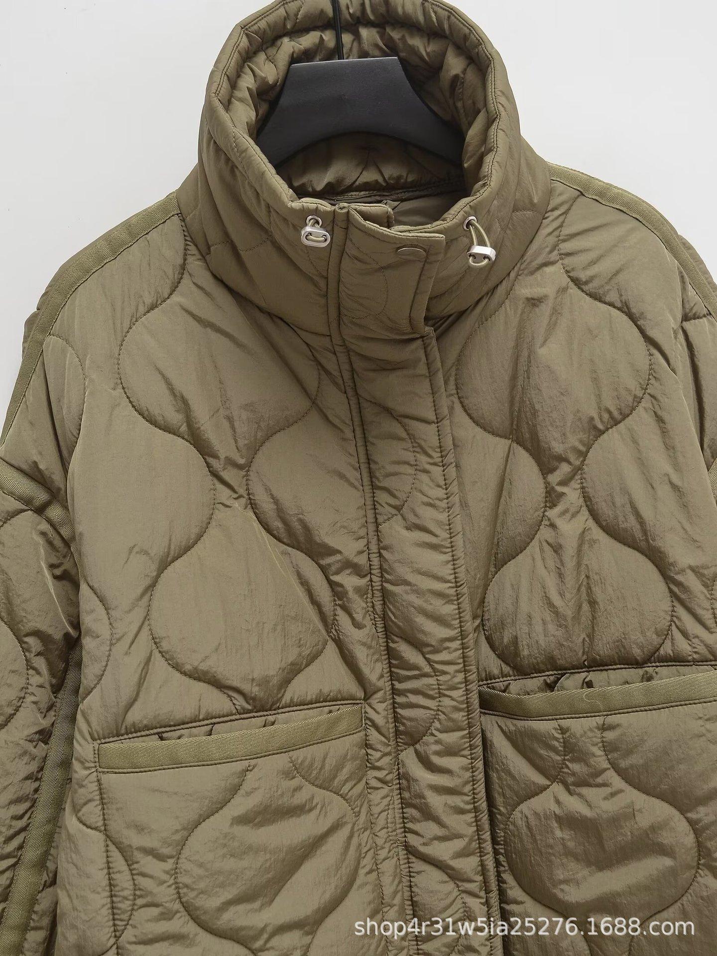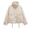 Venta al por mayor transfronteriza europea y americana 2024 Invierno Nuevo Suelto Cuello alto Decoración de bolsillo Chaqueta corta de algodón ligera