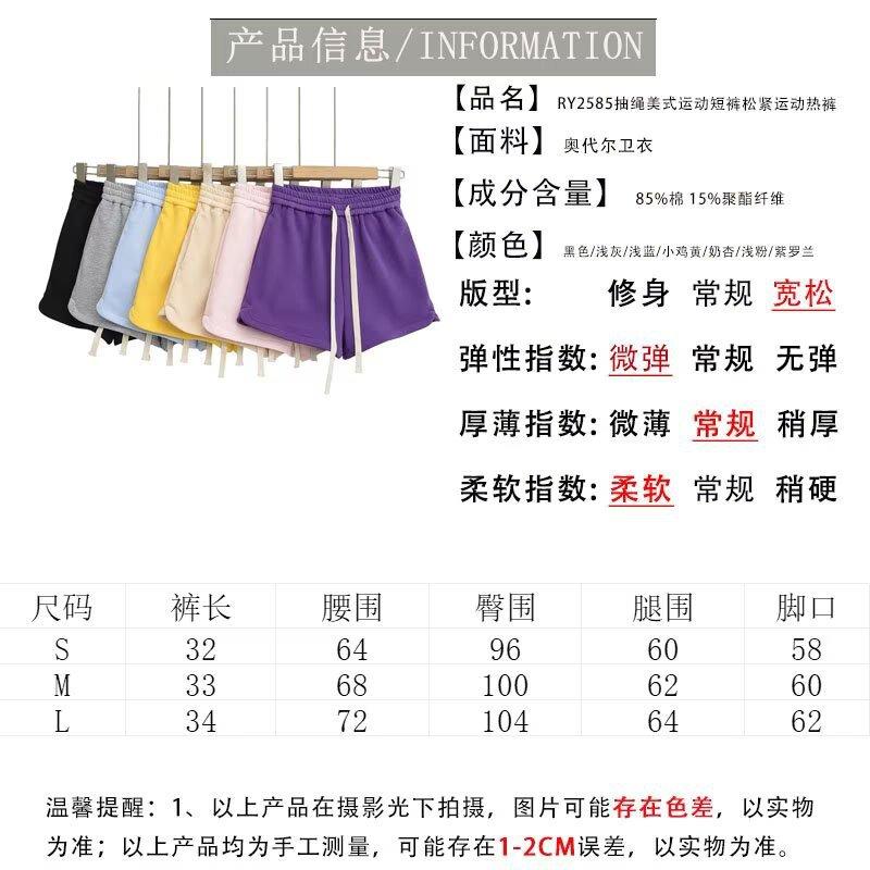 2585-Estilo Europeo y Americano Sexy Sexy Pantalones Cortos Deportivos de Cintura Elástica para Mujer 2025 Nuevo Cordón Ajustable Slim Casual Hot Pants
