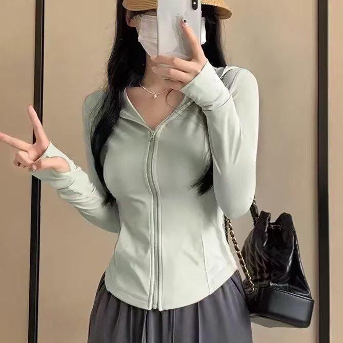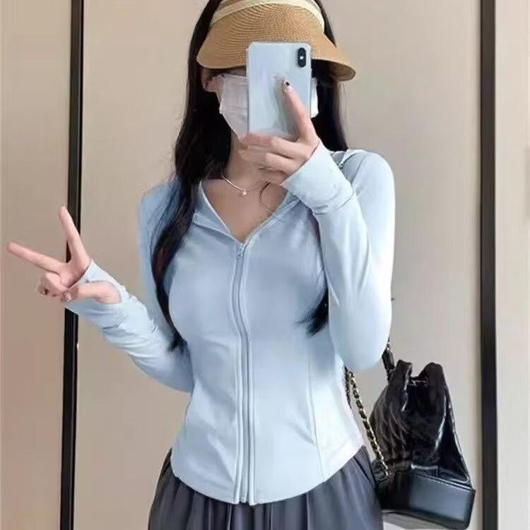 Abrigo de Seda de Hielo de Corte Slim para Mujer para Primavera Ligero Transpirable Ajustado Top Deportivo Corto Abrigo de Yoga