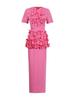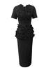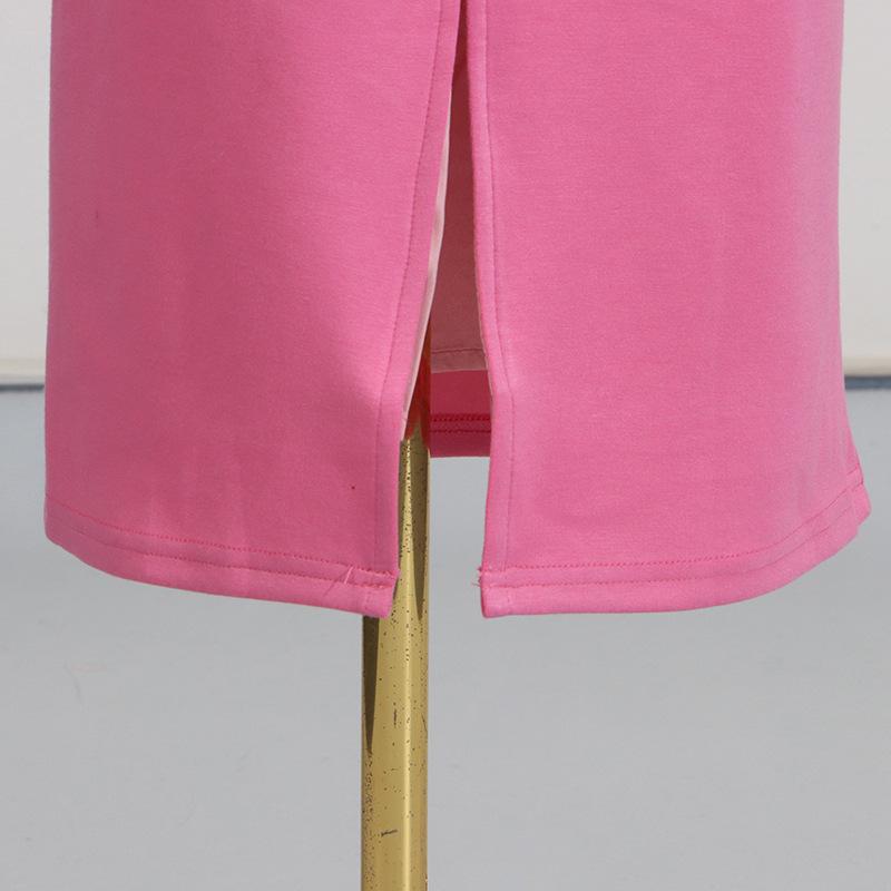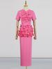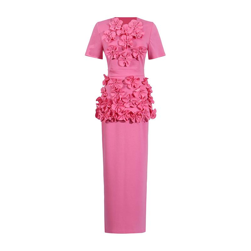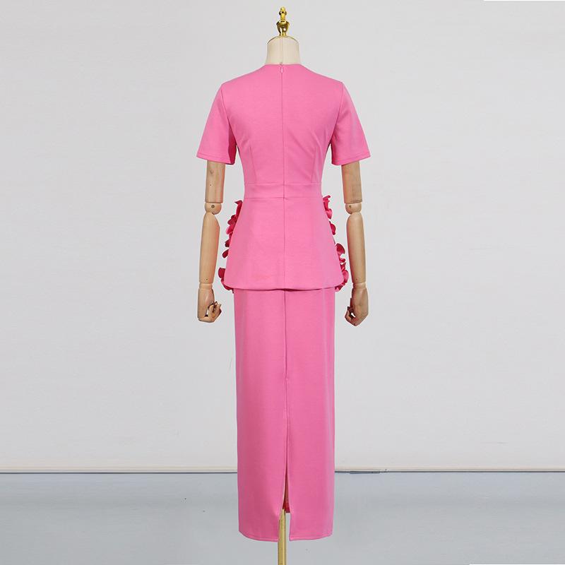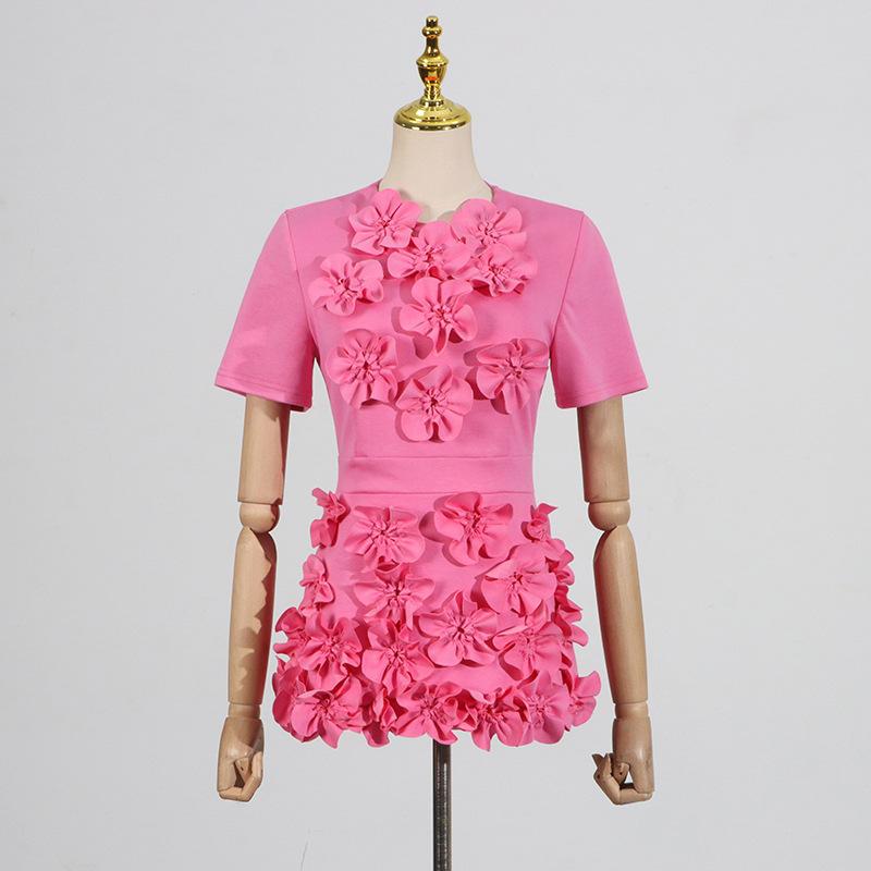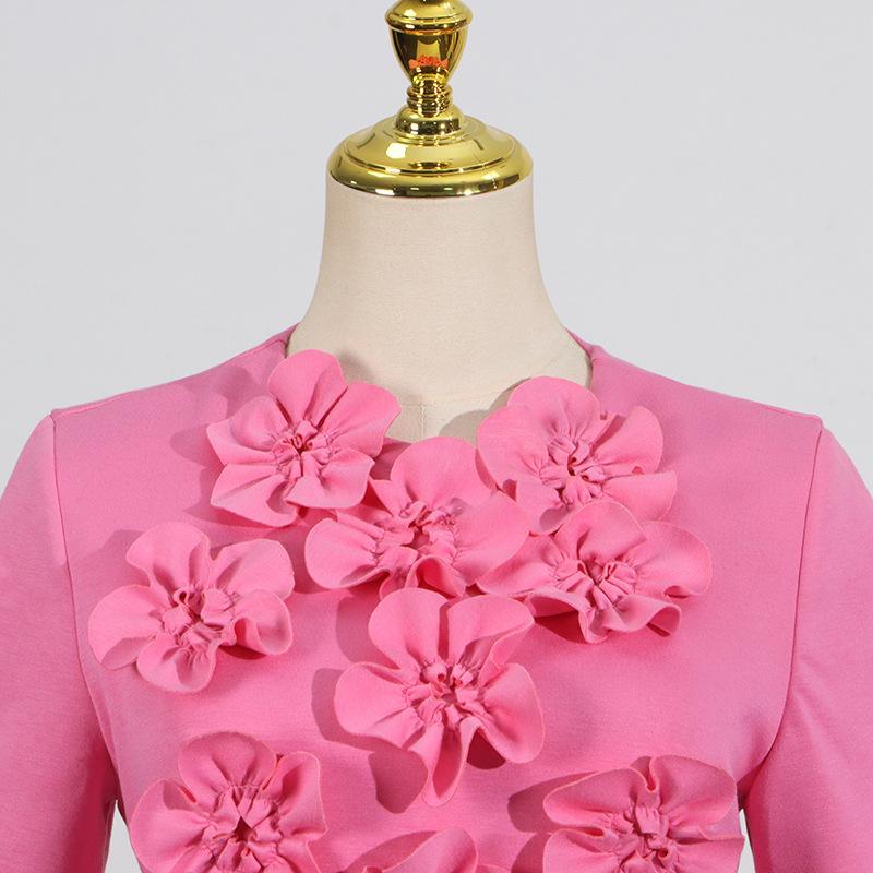 Conjunto de dos piezas patchwork floral tridimensional de alta resistencia europeo y americano 2025 Nuevo top tipo jersey de cuello redondo + conjunto de falda para mujer