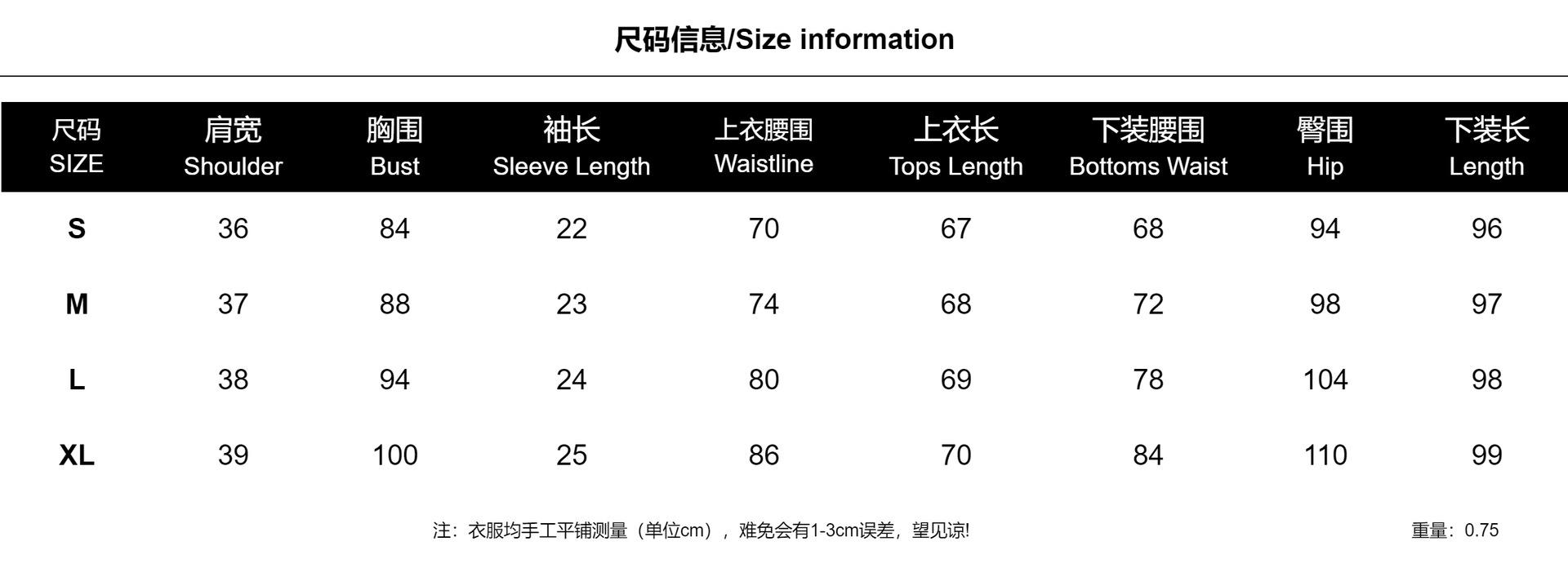 S, M, L, XL