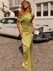 Compra Vestido de Verano para Mujer Europeo y Americano 2025 Nuevo Color Puro Sexy Asimétrico Escote Hombro Descubierto Vestido Largo Plisado al por mayor en Joom.pro