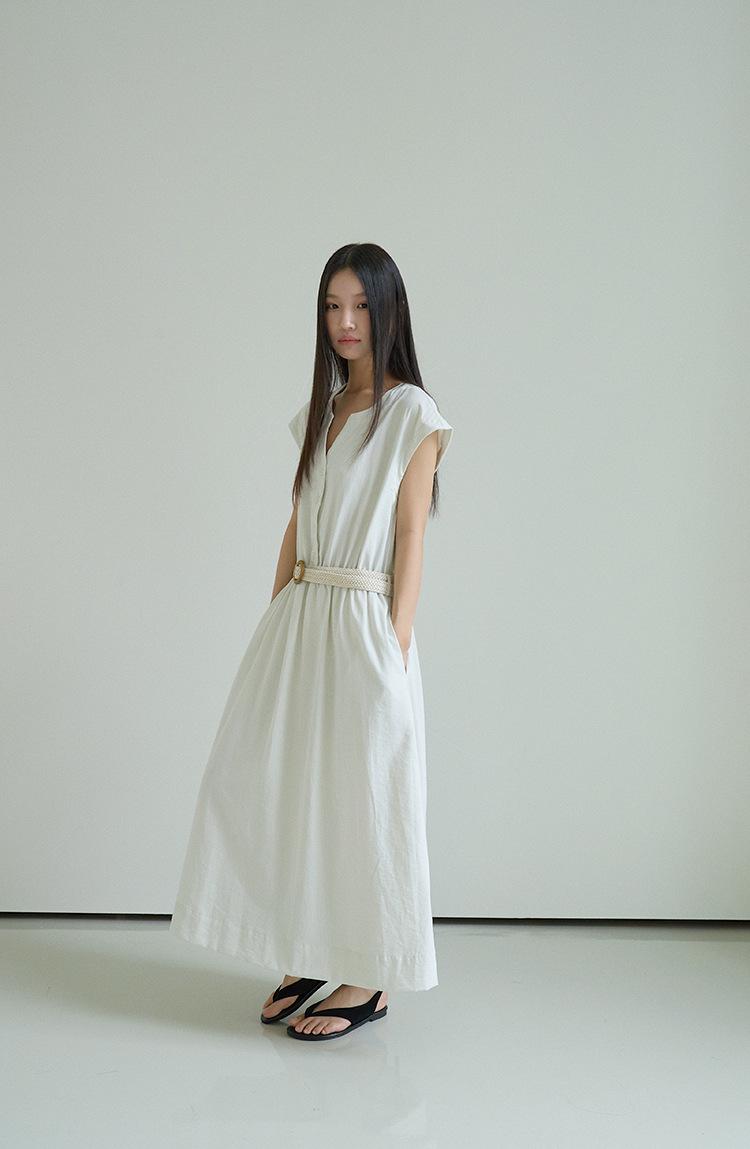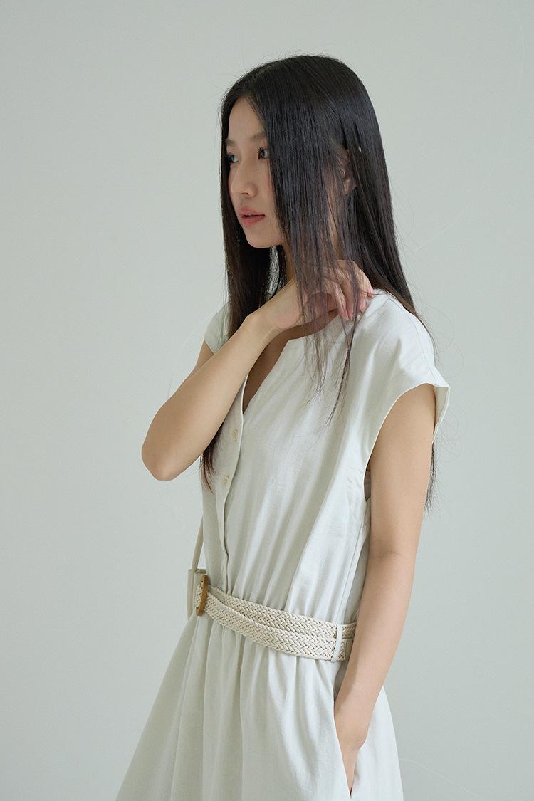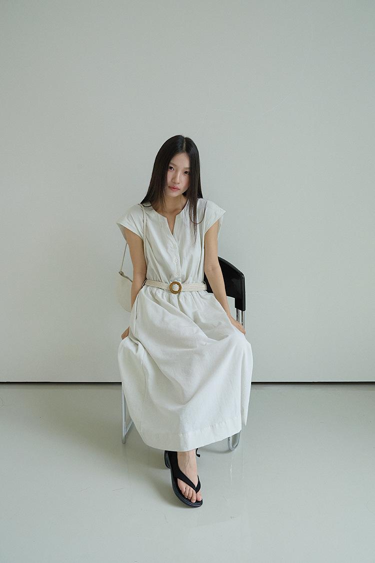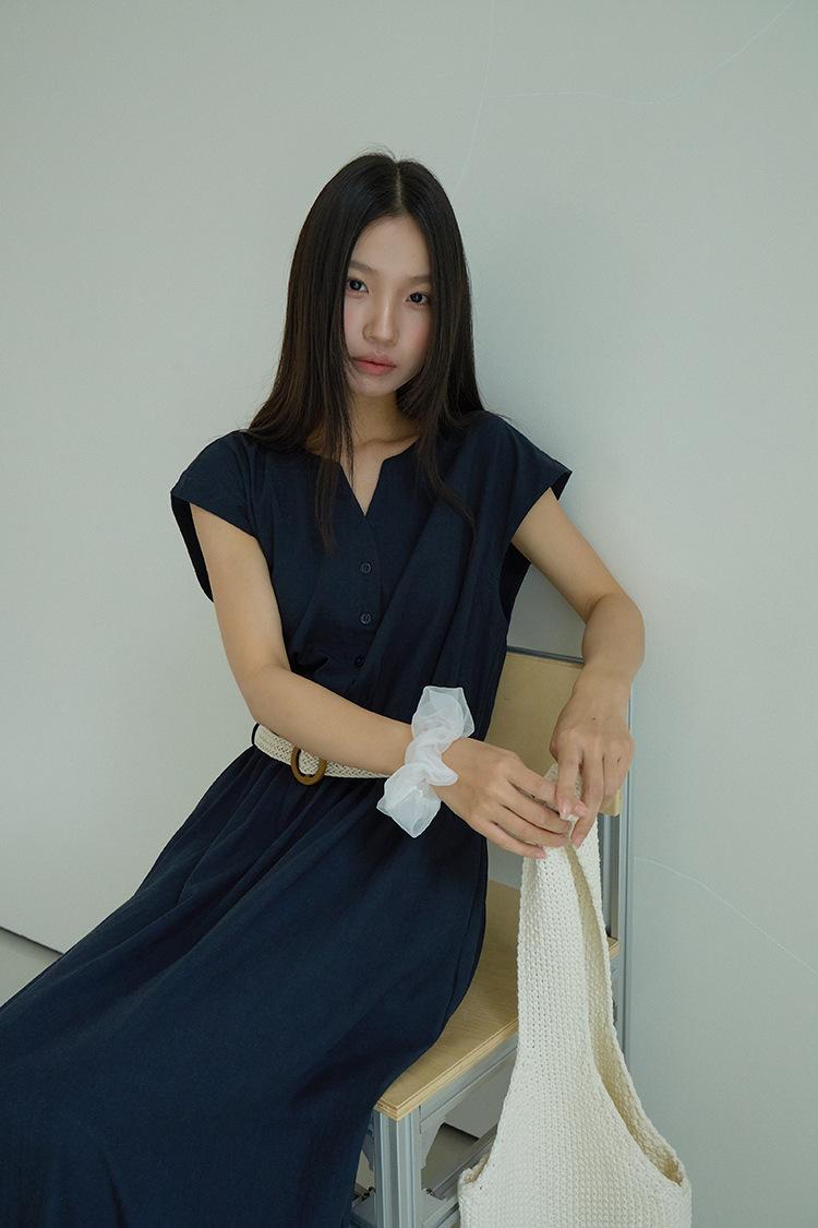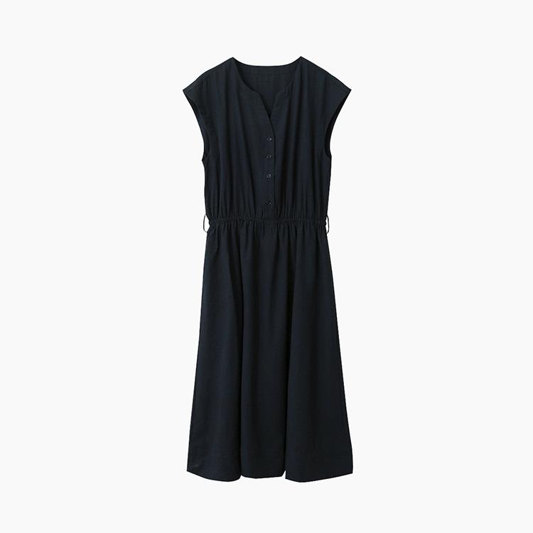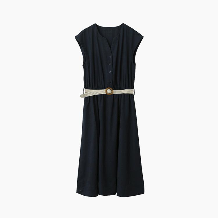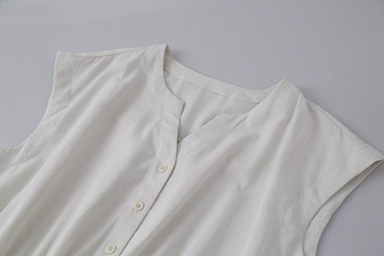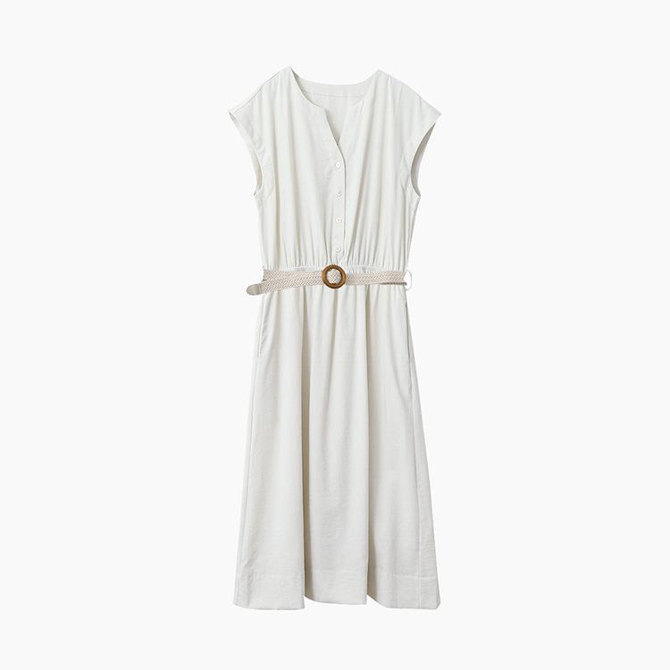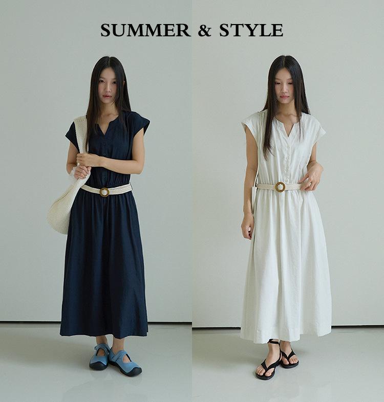 [Oufan] Vestido Moderno de Moda Sencillo con Cuello en V sin Mangas 2025 Verano Nuevo Vestido Slim 2972