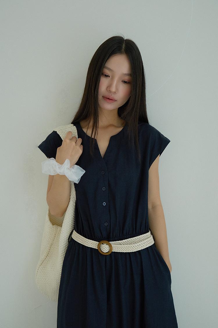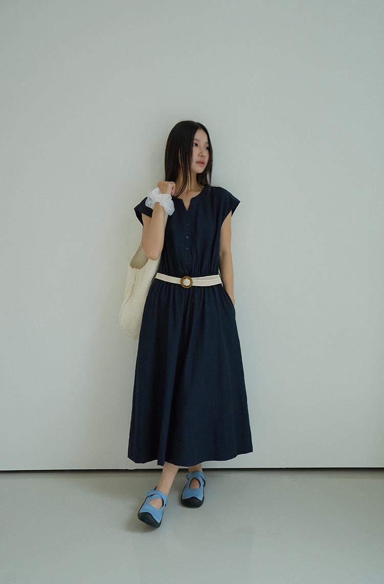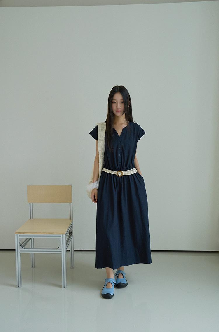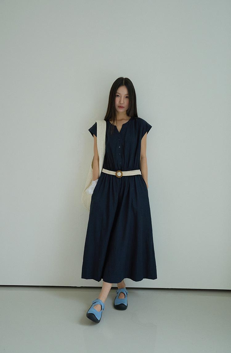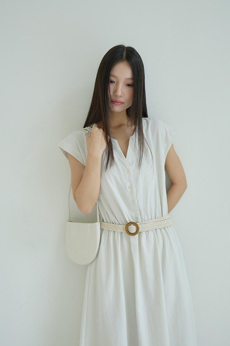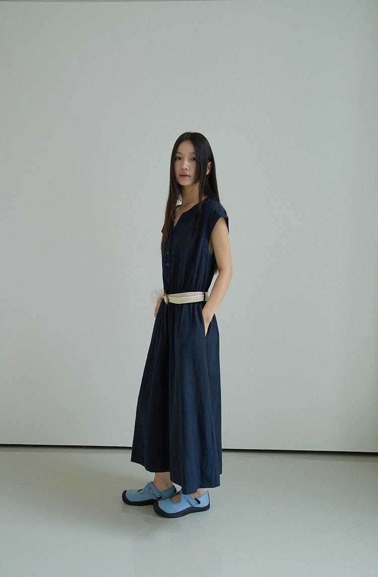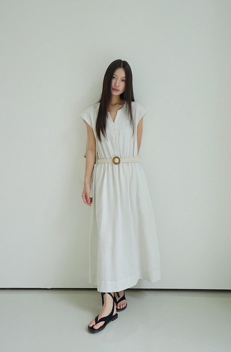[Oufan] Vestido Moderno de Moda Sencillo con Cuello en V sin Mangas 2025 Verano Nuevo Vestido Slim 2972