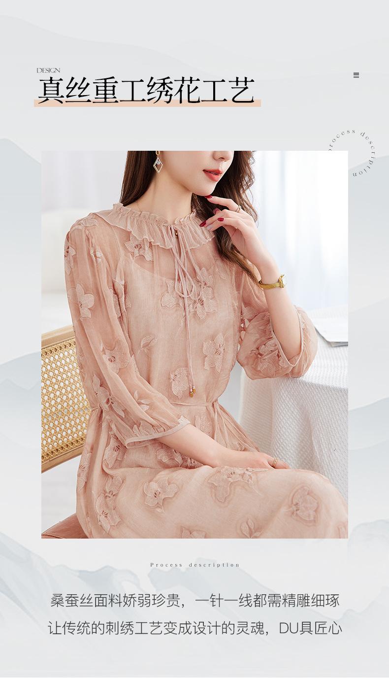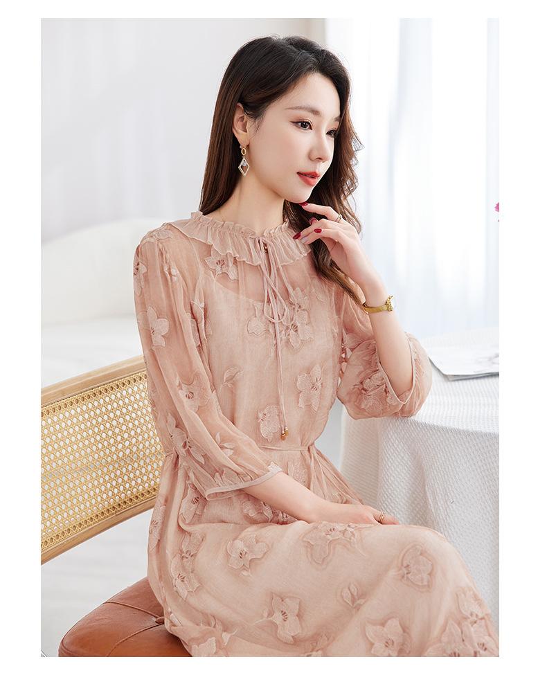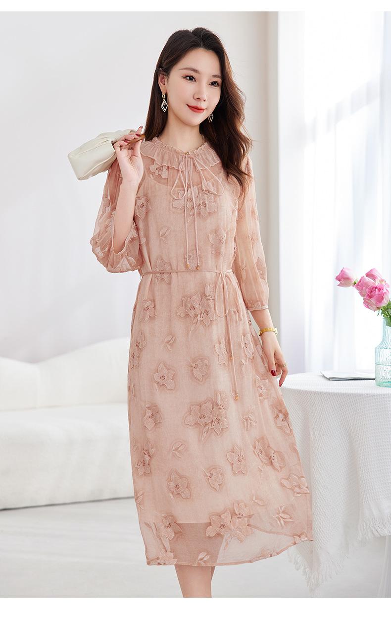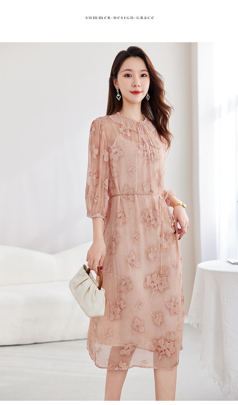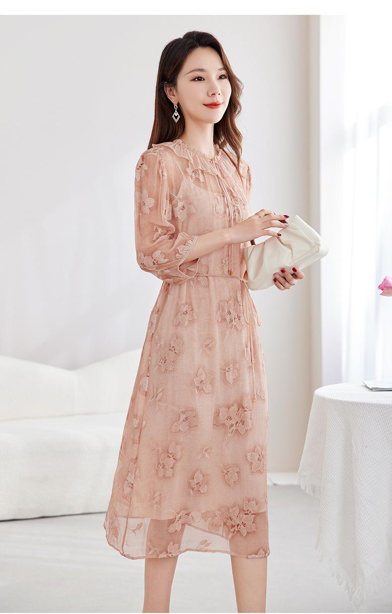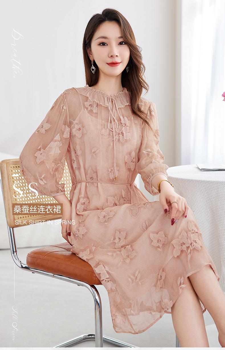 [Bordado de seda] Vestido 100% seda morera para mujer, elegante y ajustado de verano, largo medio, 9718