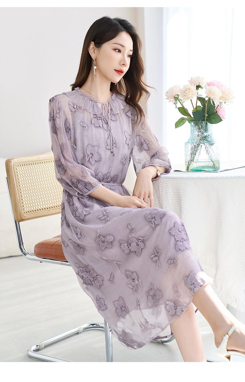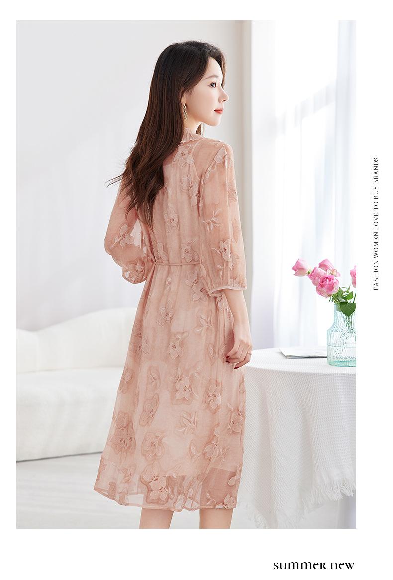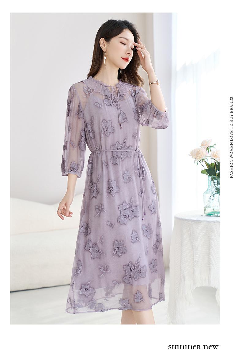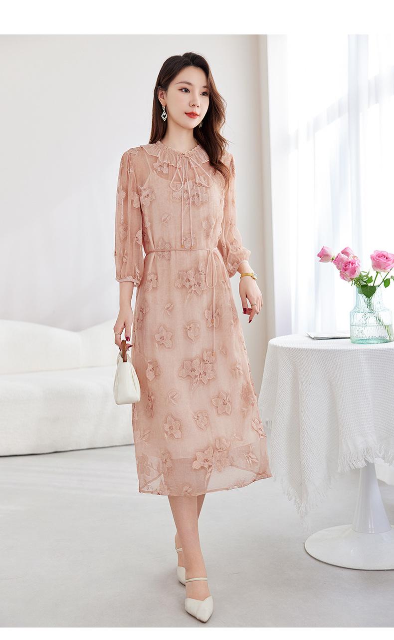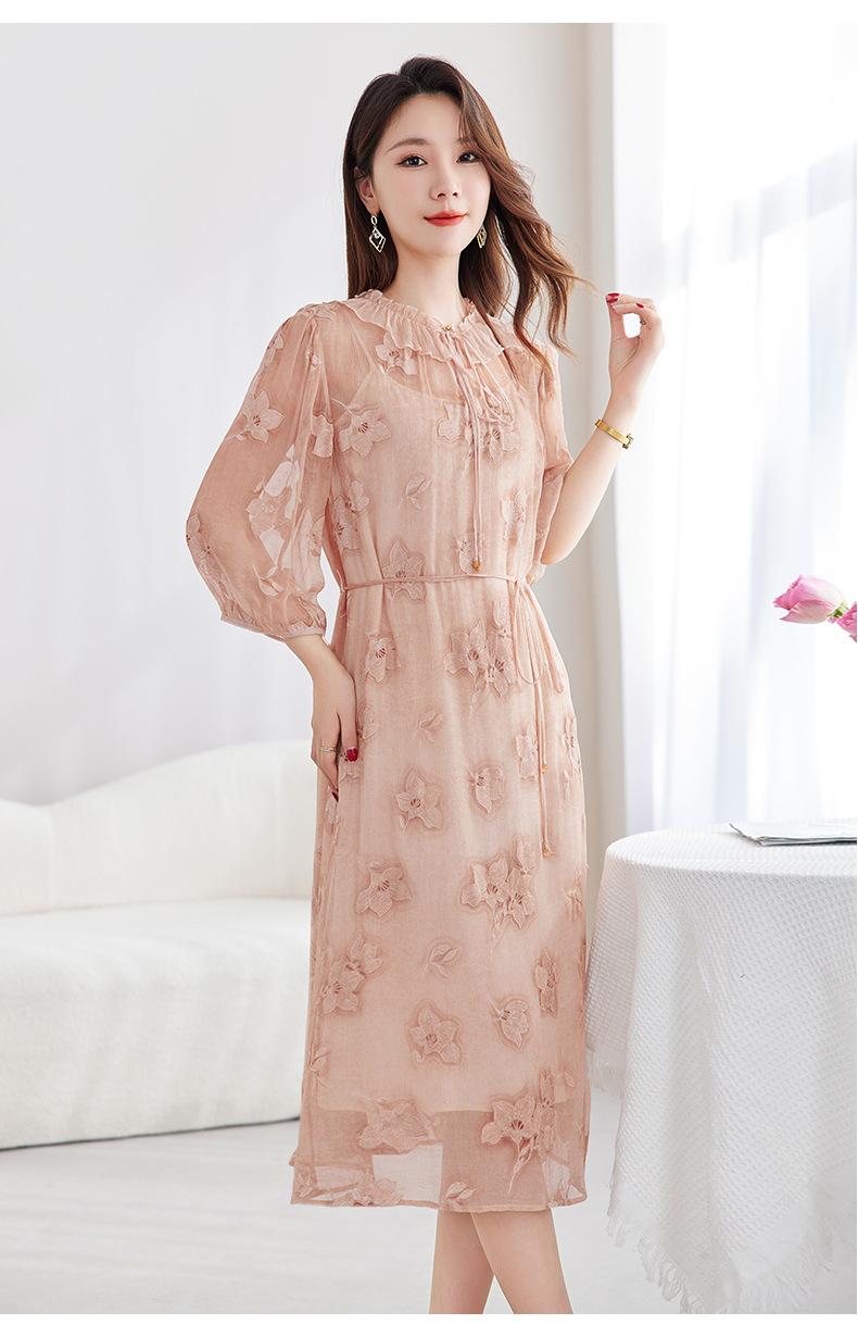 [Bordado de seda] Vestido 100% seda morera para mujer, elegante y ajustado de verano, largo medio, 9718